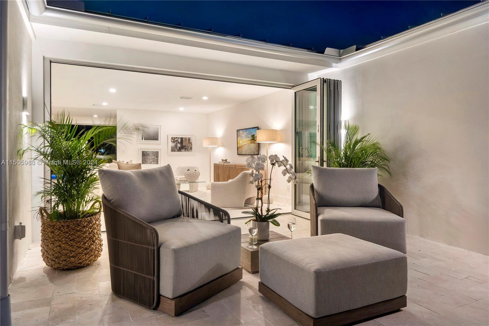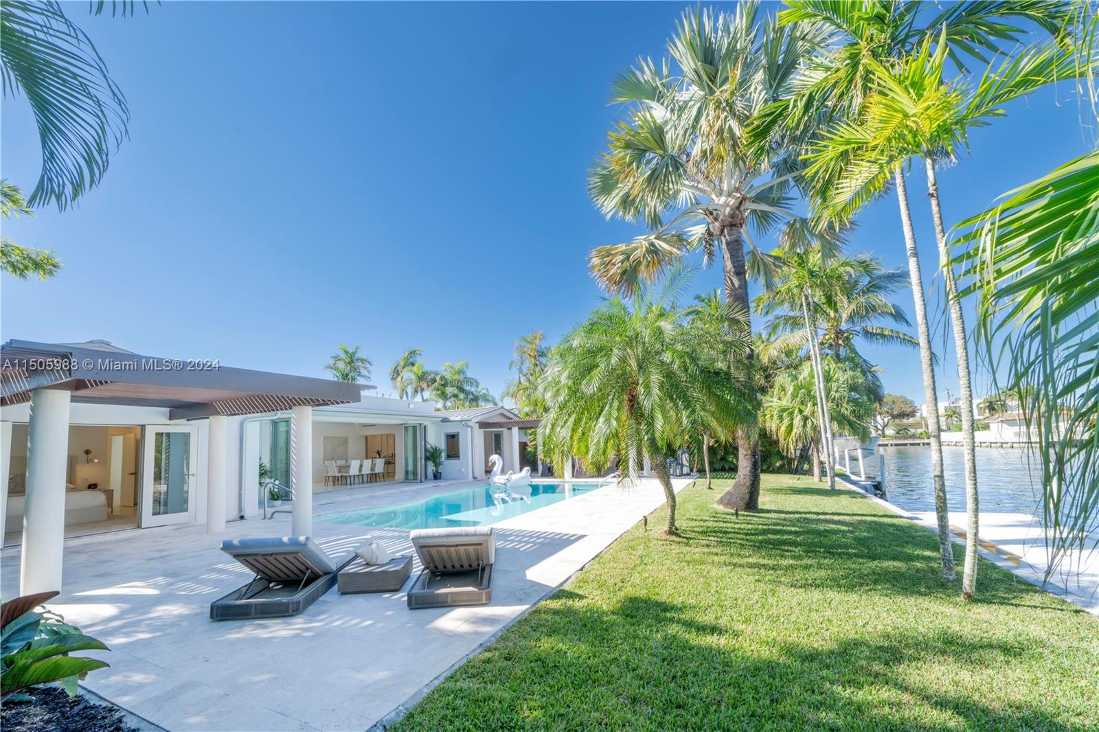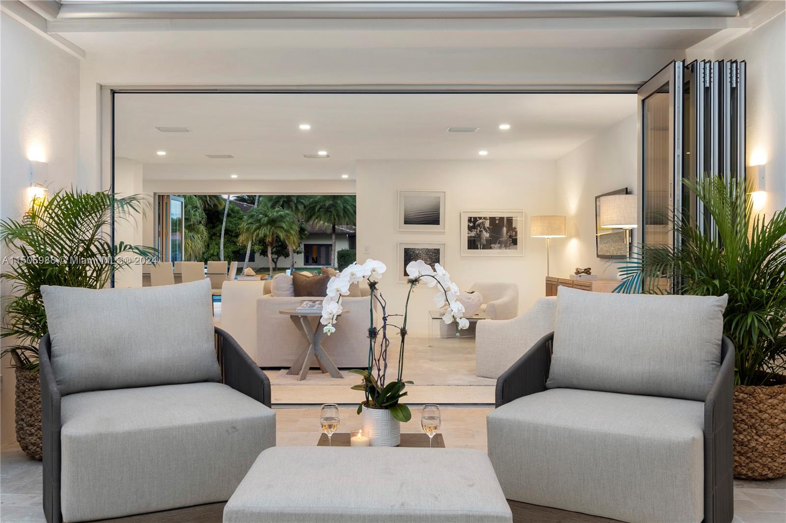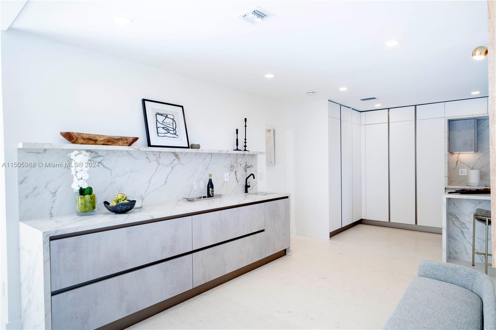 SELLER MOTIVATED! Modern, completely renovated waterfront oasis in gated Keystone Islands. This boater's paradise offers 75' of deep water frontage, ocean access & no fixed bridges to Bay. The elegant interiors feature chic upgrades & finishes, new marble floors throughout & open living spaces. Enjoy seamless indoor/outdoor living w/triple pane impact doors that completely recess. The open eat-in custom gas kitchen by ItalKraft has a huge island, coffee bar, sintered stone countertops & top-of-the-line appliances. The backyard boasts a heated saltwater pool, Trellis, & summer kitchen, perfect for Al Fresco dining. Tastefully remodeled for today's living, this gated Smart Home is complete w/impact windows, generator, tankless water heater & numerous newly installed tech features throughout.