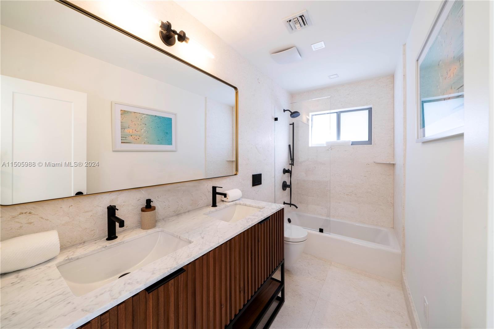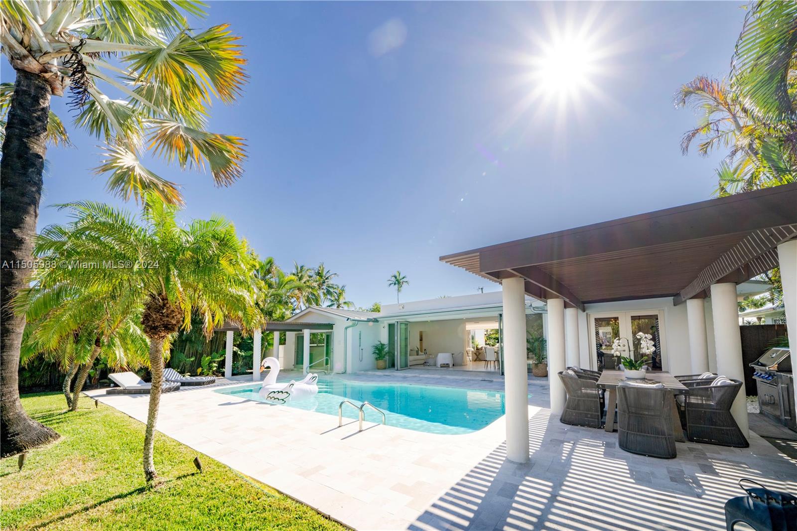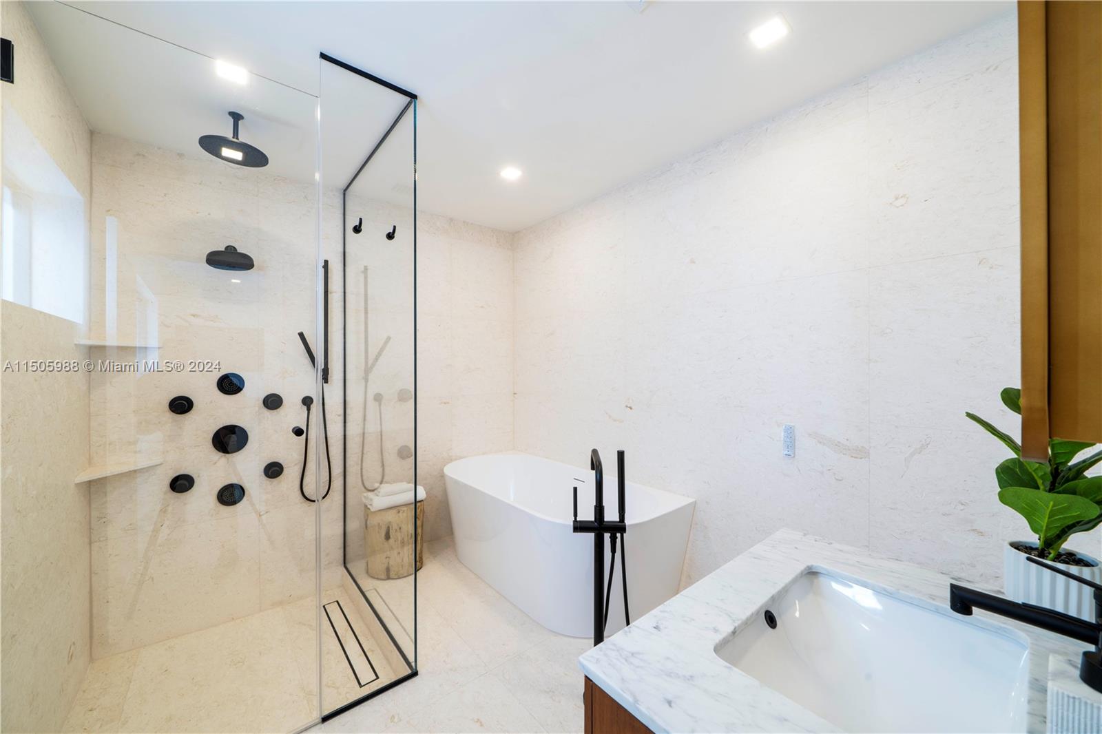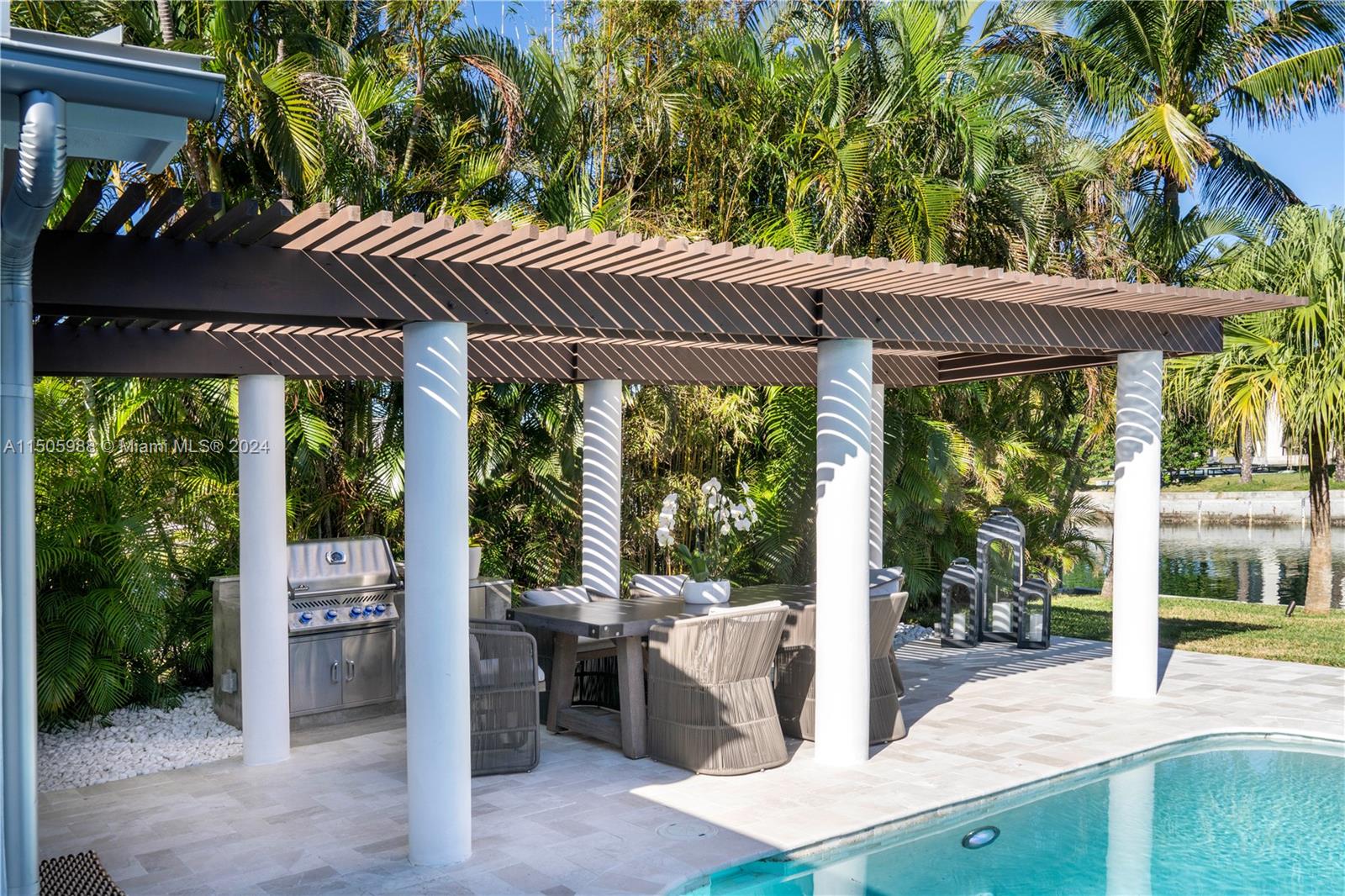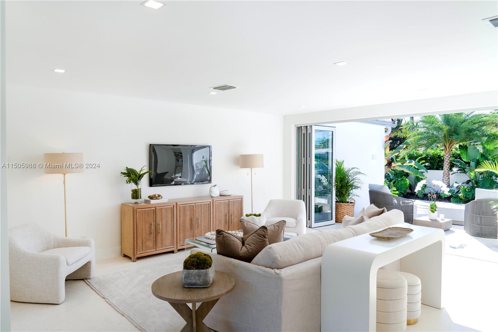 SELLER MOTIVATED! Modern, completely renovated waterfront oasis in gated Keystone Islands. This boater's paradise offers 75' of deep water frontage, ocean access & no fixed bridges to Bay. The elegant interiors feature chic upgrades & finishes, new marble floors throughout & open living spaces. Enjoy seamless indoor/outdoor living w/triple pane impact doors that completely recess. The open eat-in custom gas kitchen by ItalKraft has a huge island, coffee bar, sintered stone countertops & top-of-the-line appliances. The backyard boasts a heated saltwater pool, Trellis, & summer kitchen, perfect for Al Fresco dining. Tastefully remodeled for today's living, this gated Smart Home is complete w/impact windows, generator, tankless water heater & numerous newly installed tech features throughout.