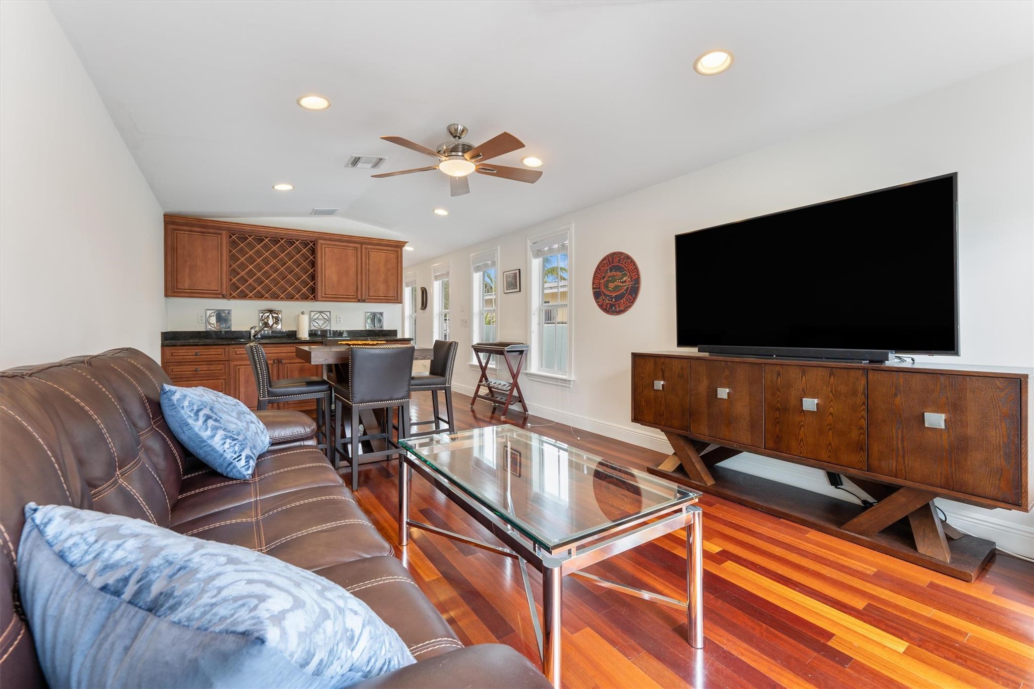 In downtown Fort Lauderdale's sought-after Tarpon River neighborhood, this luxurious Key West-inspired tri-level home boasts marble-floored foyer, wrought iron rails, and a grand wood covered staircase. The kitchen is a culinary haven with custom cabinets and high-end appliances. The open living area seamlessly connects to the pool and courtyard, bathed in natural light. Featuring 3 bedrooms, 3.5 baths, a loft, and an entertainment room, the interior is meticulously designed. The master bedroom offers an oversized walk-in closet and a spa-like bath. Additional highlights include a rooftop terrace with panoramic views, adding to the allure of this exceptional residence.
