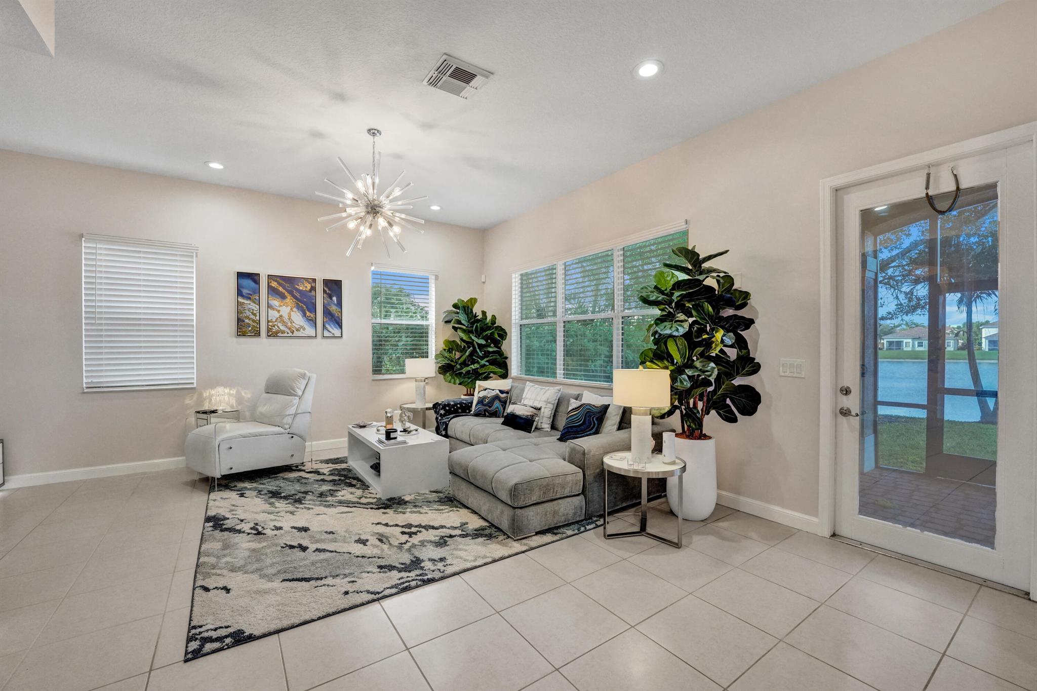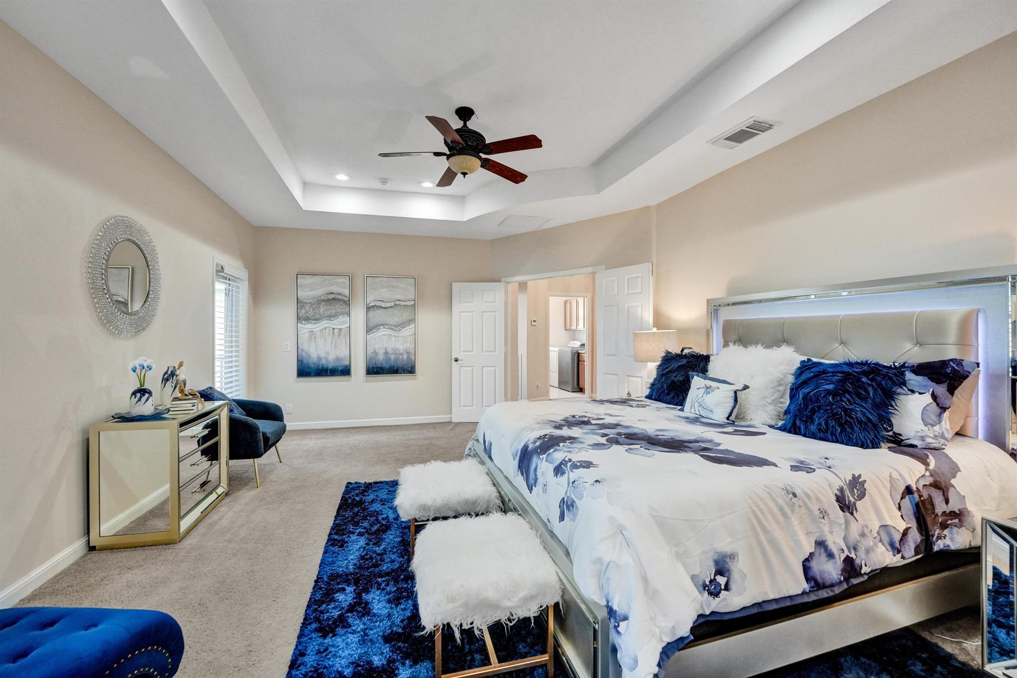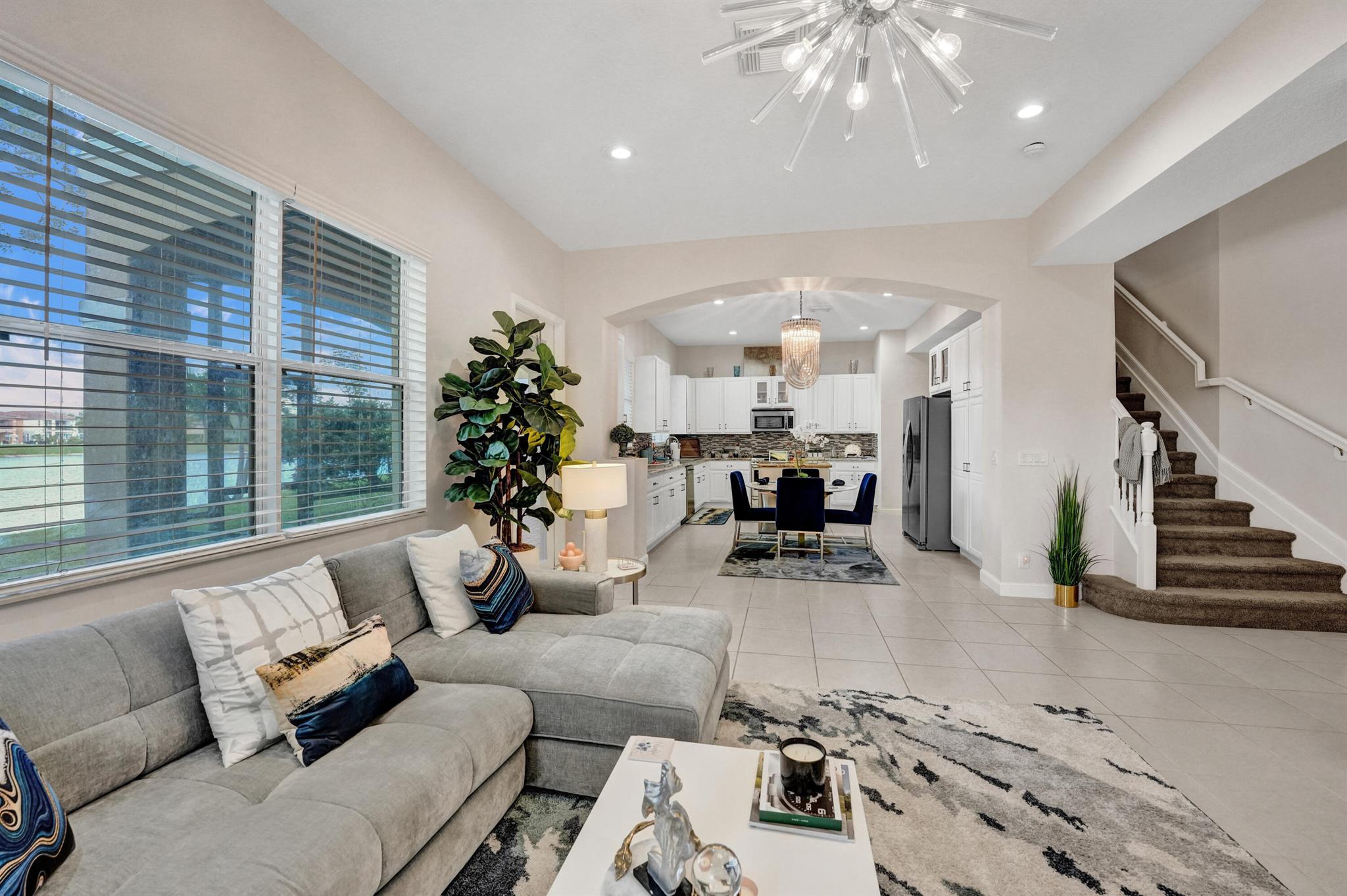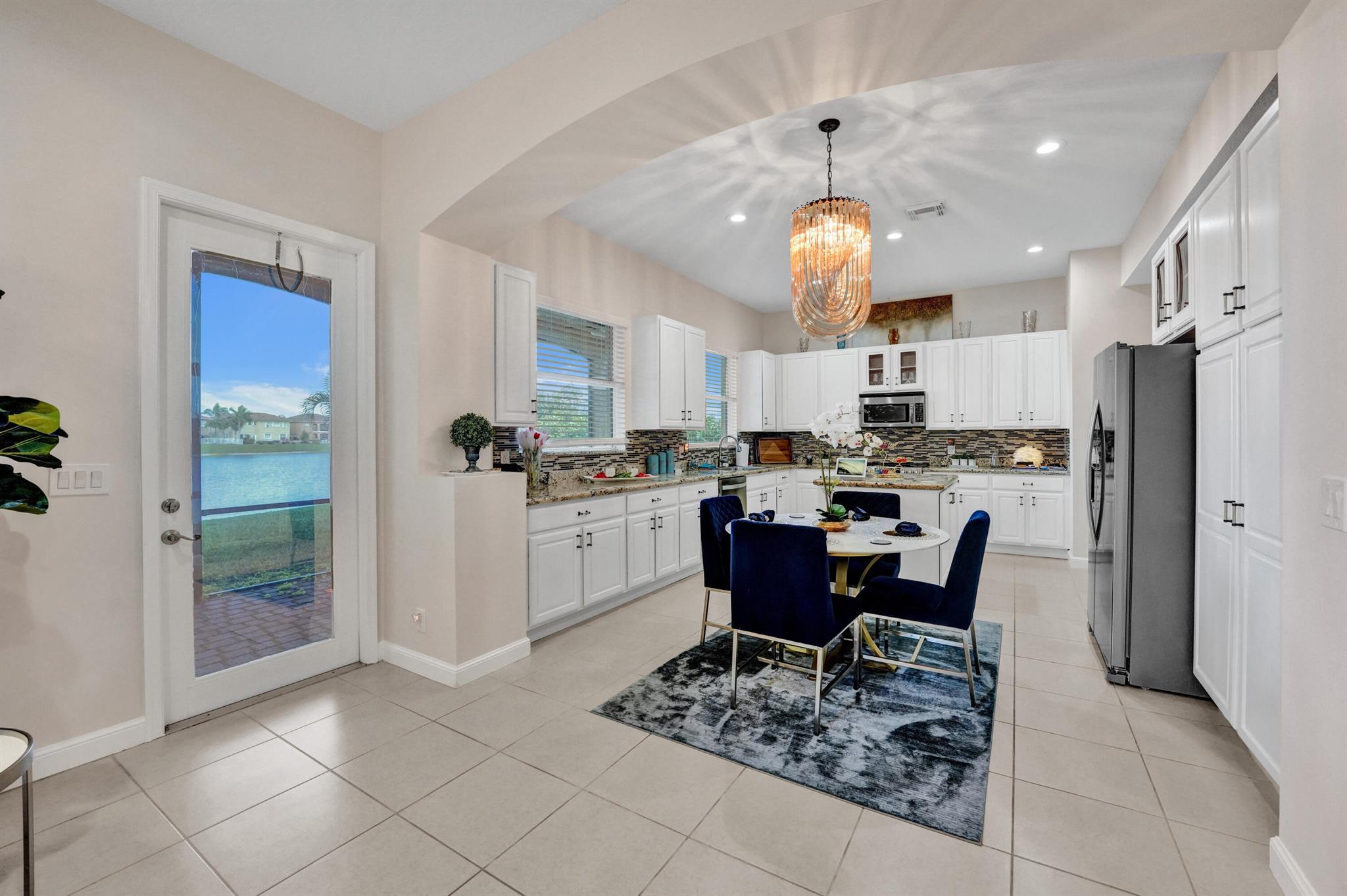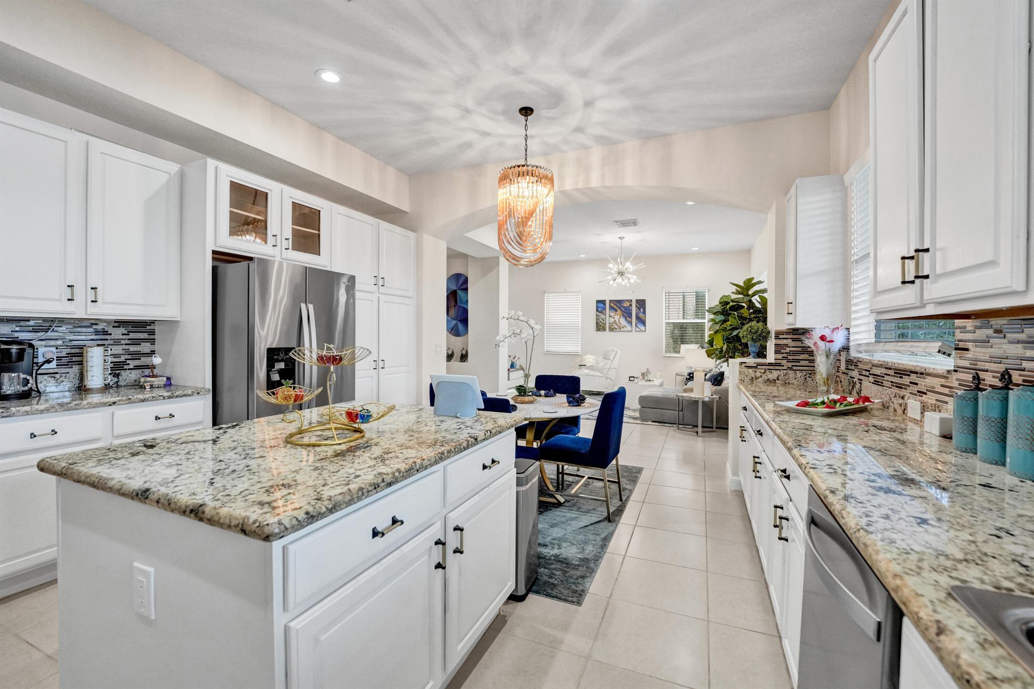 Elegant and modern 5 bed/4 bath home with 3 car garage on the water! With lavish Spacious floor plan that includes a roomy loft for extra entertainment space. This home has 3 beautiful, oversized balconies. Come inside and be greeted by soaring ceilings! This home features renovated Kitchen with brand new Stainless Steel appliances, the main level offers a cozy bedroom with private entrance. Outside you will enjoy a great screened in patio which is perfect for entertaining. The Primary bedroom has 3 large wall in closets with an added bonus room which has been turned into a closet/ makeup room. The community is well maintained and offers its residents many resort style amenities such as a clubhouse, and pool.