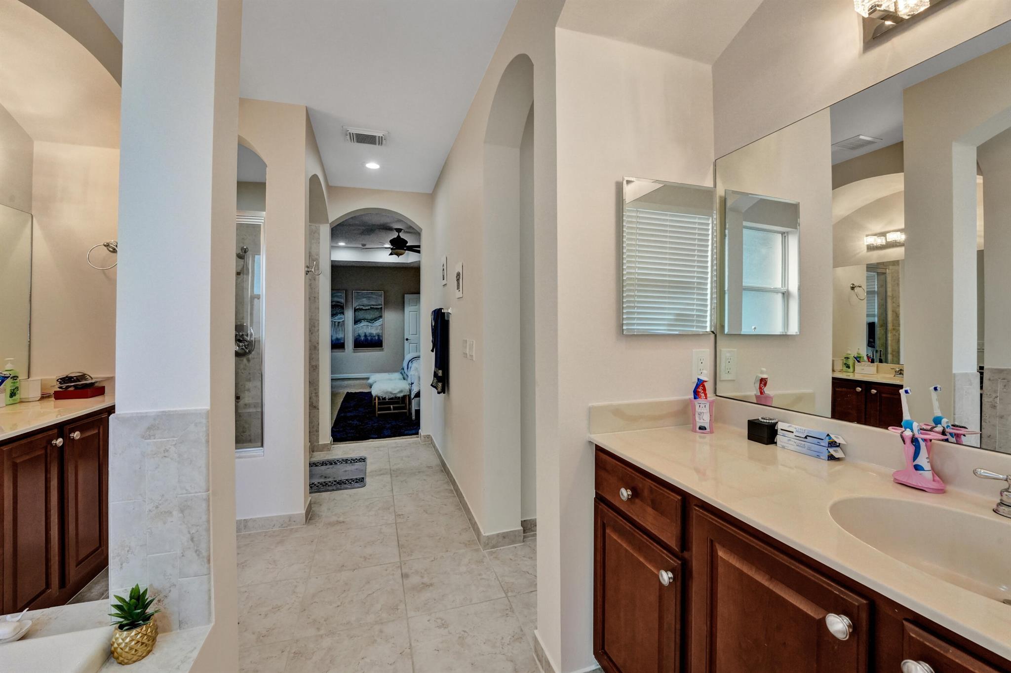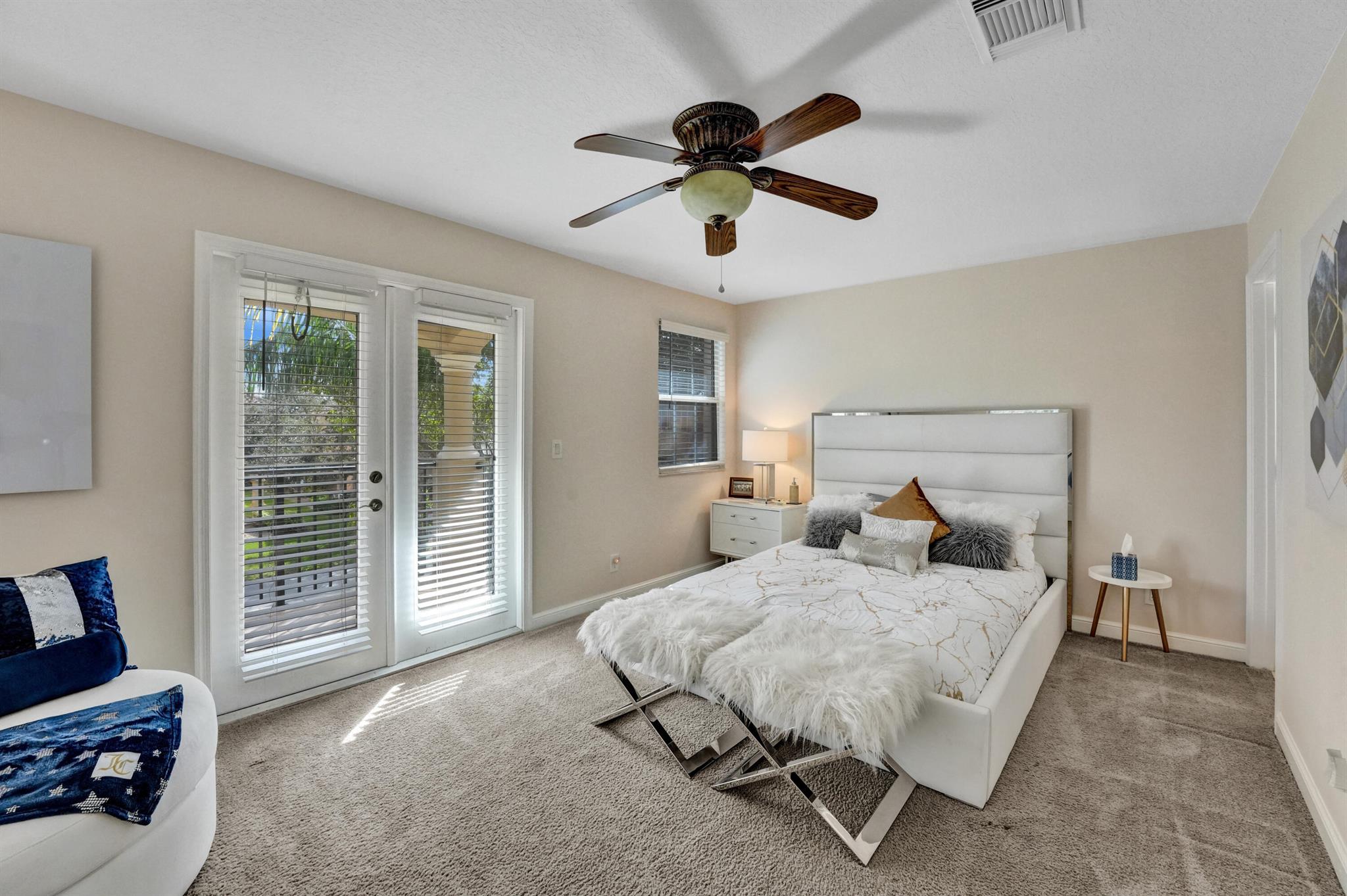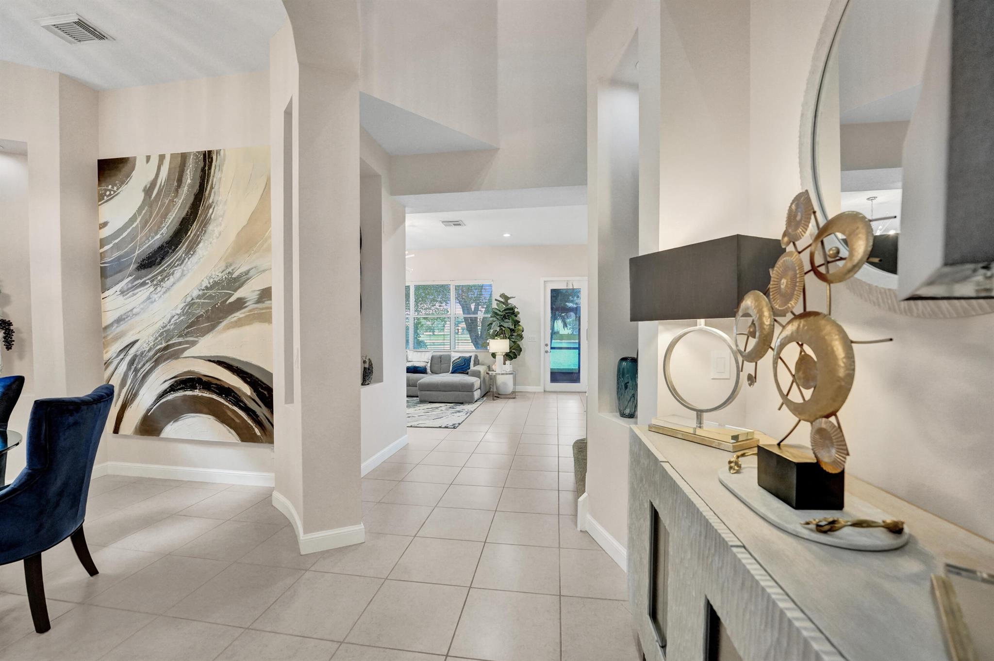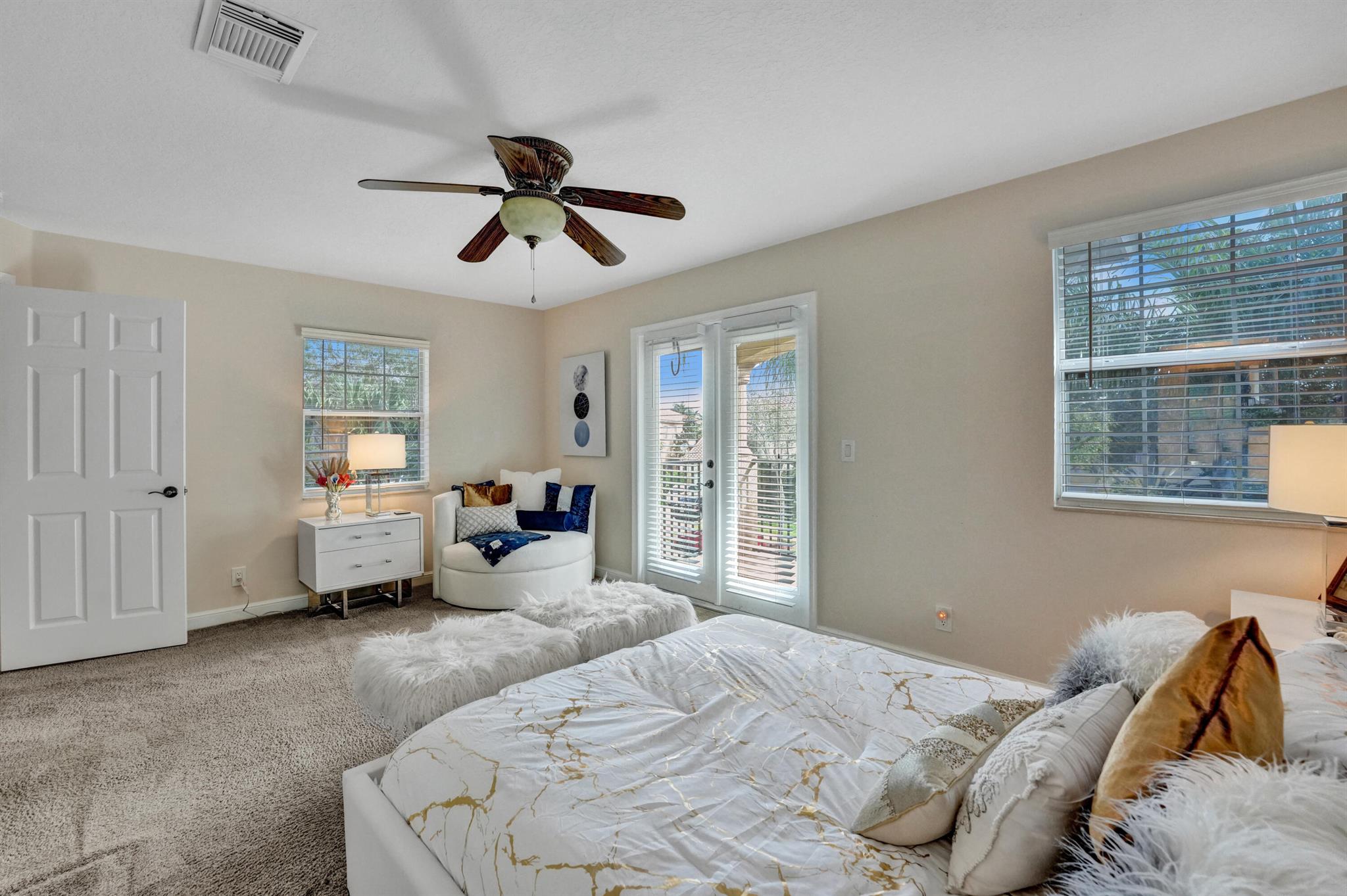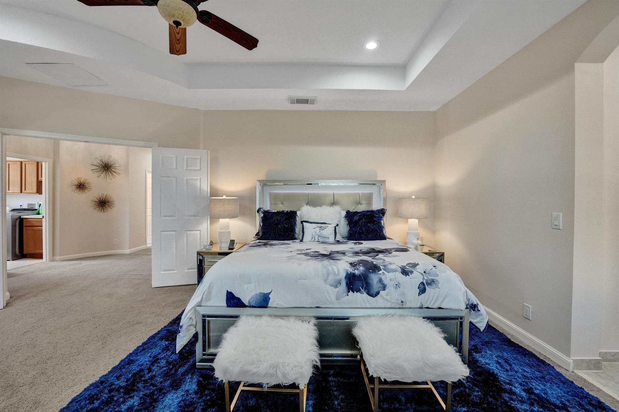 Elegant and modern 5 bed/4 bath home with 3 car garage on the water! With lavish Spacious floor plan that includes a roomy loft for extra entertainment space. This home has 3 beautiful, oversized balconies. Come inside and be greeted by soaring ceilings! This home features renovated Kitchen with brand new Stainless Steel appliances, the main level offers a cozy bedroom with private entrance. Outside you will enjoy a great screened in patio which is perfect for entertaining. The Primary bedroom has 3 large wall in closets with an added bonus room which has been turned into a closet/ makeup room. The community is well maintained and offers its residents many resort style amenities such as a clubhouse, and pool.