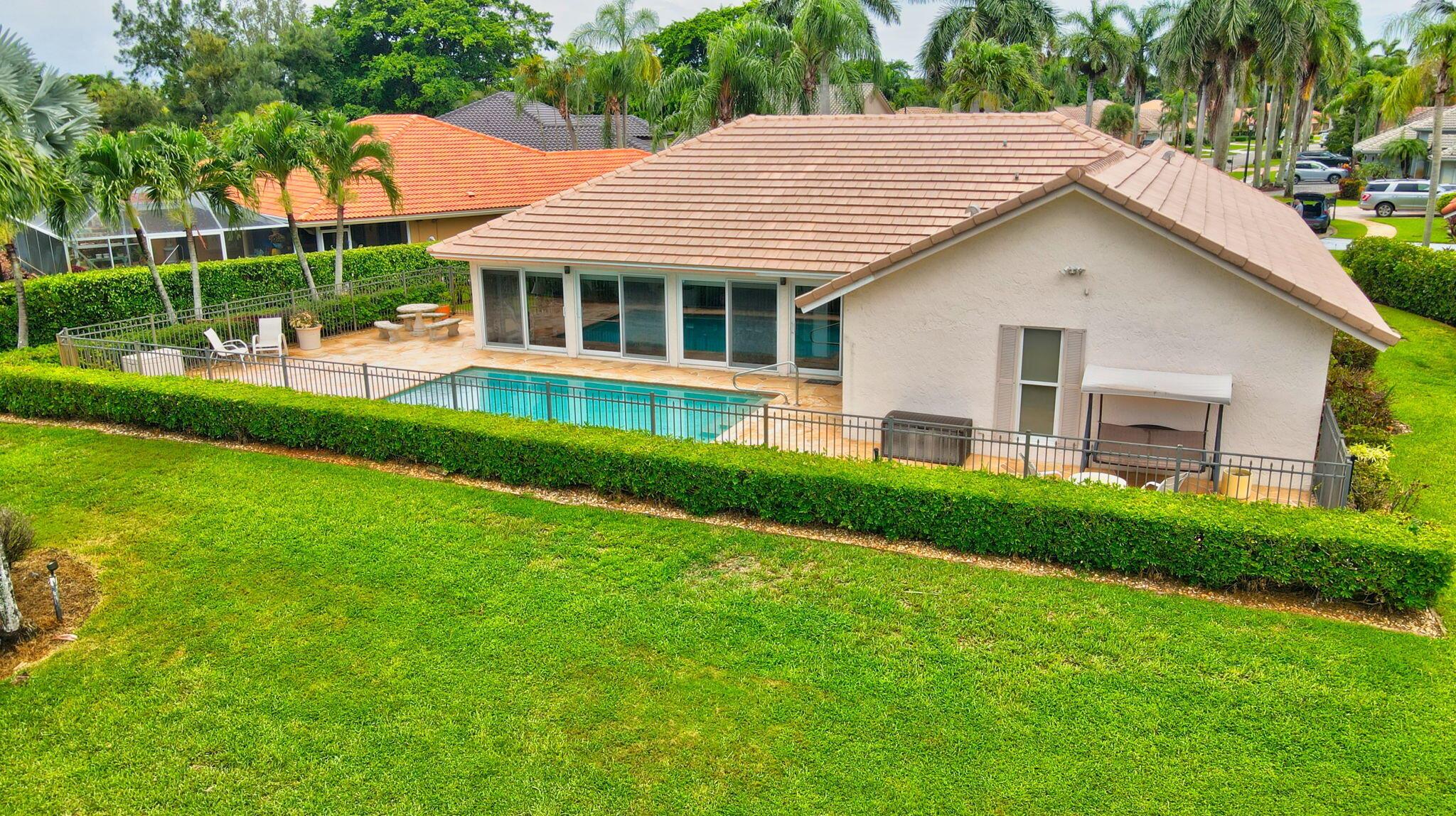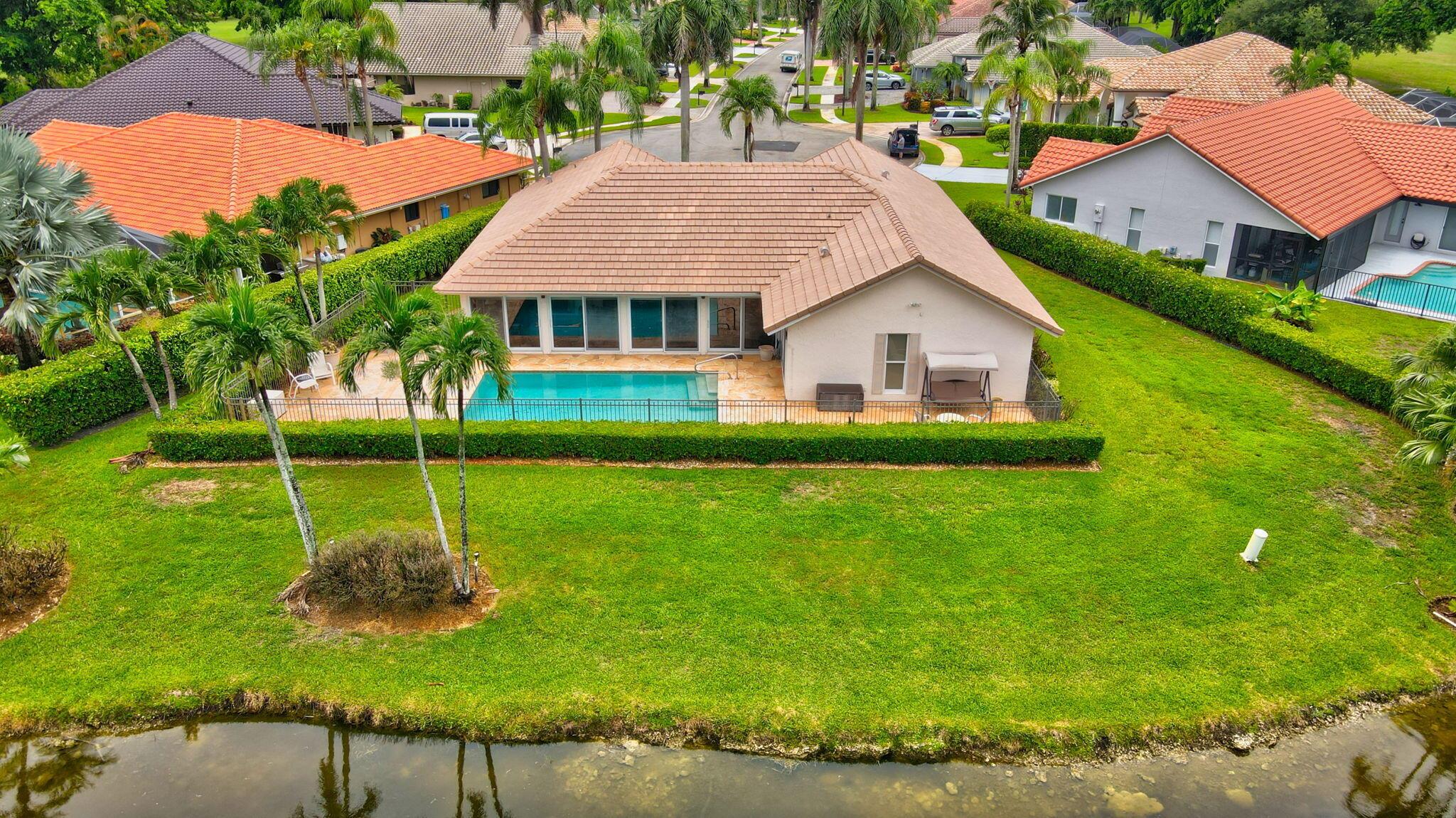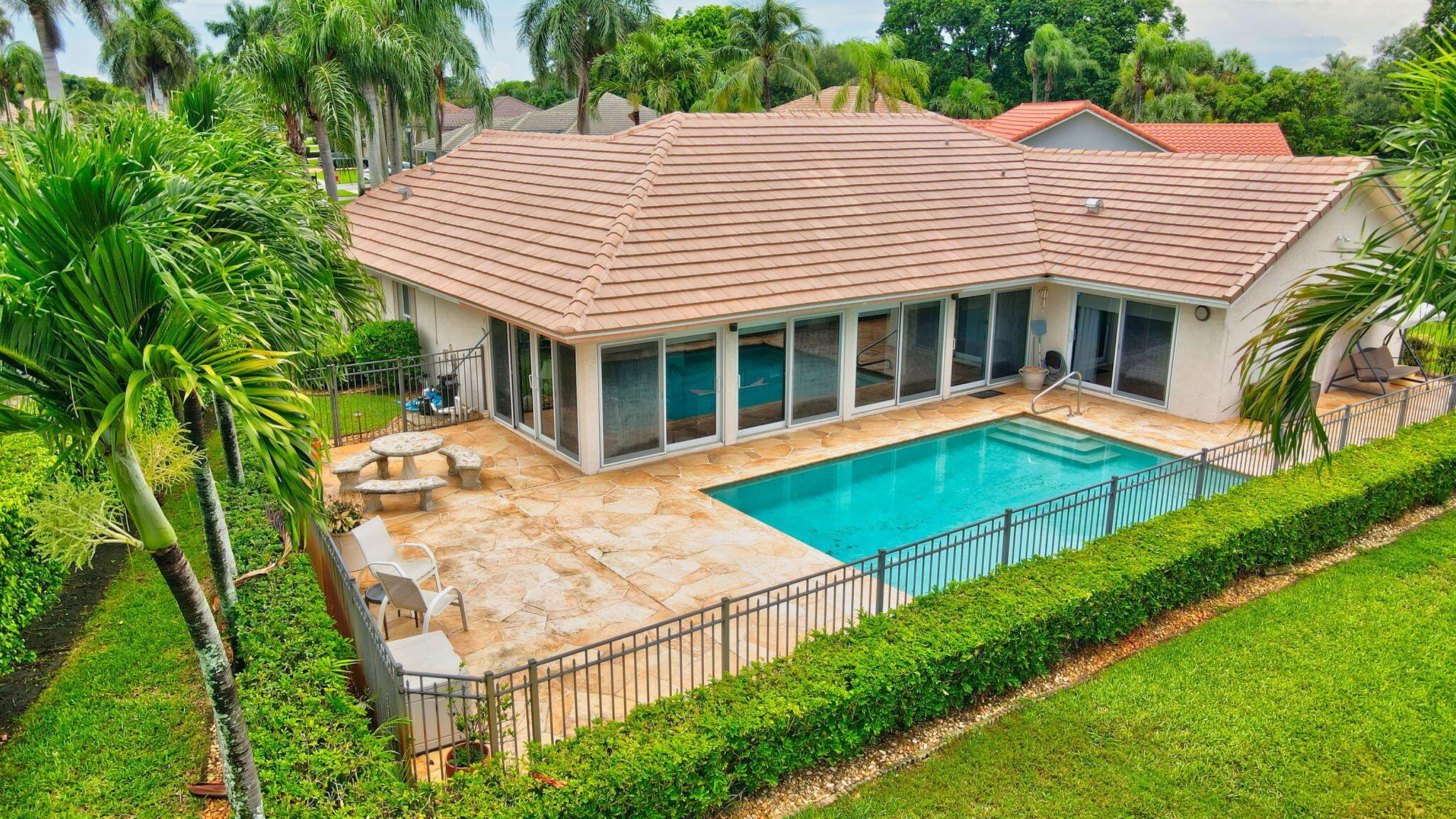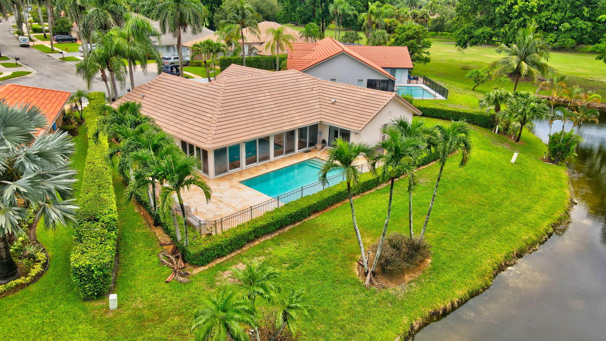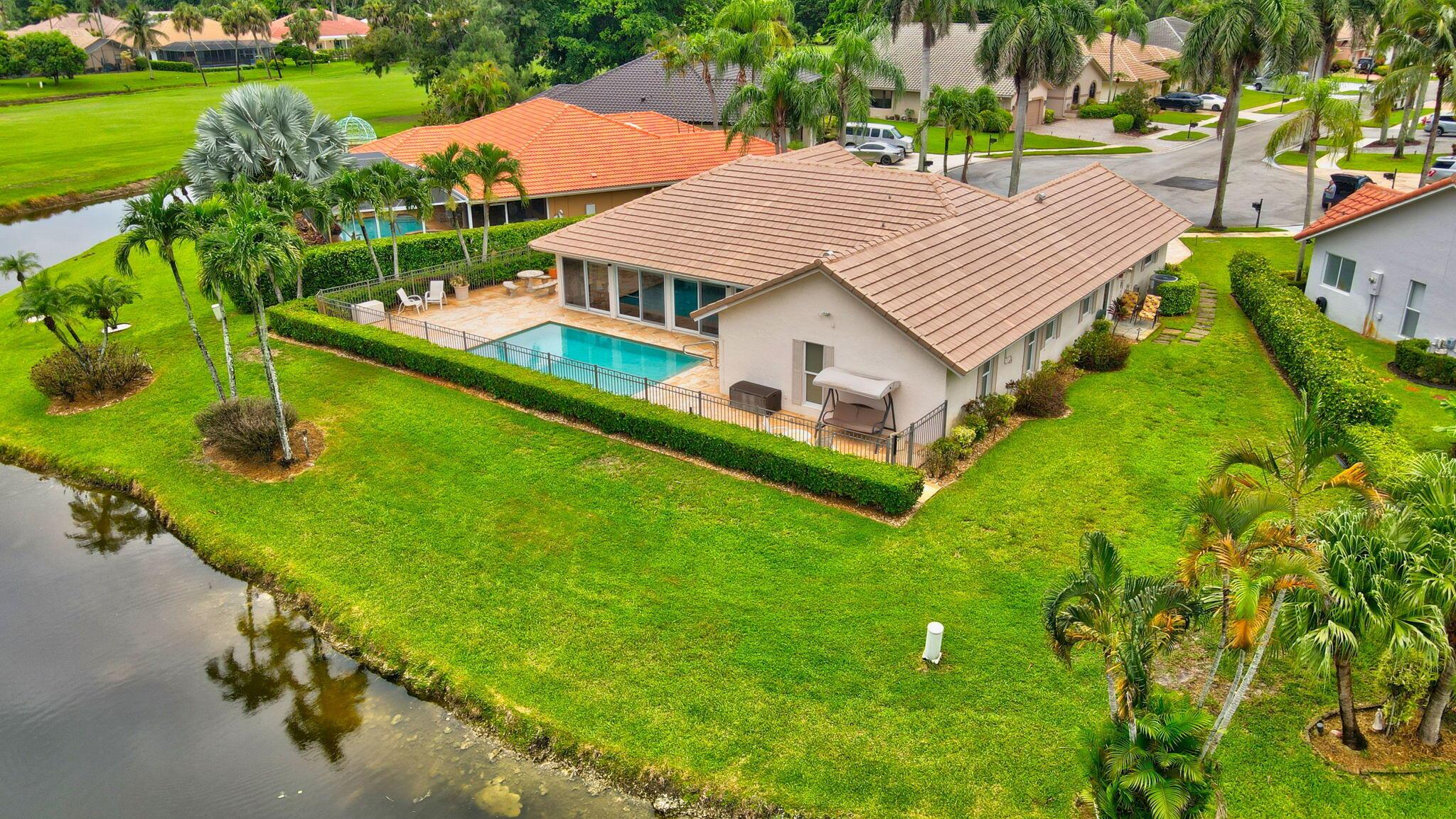 Situated on one of the most EXQUISITE WATERFRONT and GOLF lots of the GATED, Country Club Community Boca Greens. Soaring ceilings, Natural Light and Panoramic Lake views set the stage for this SPACIOUS 3 bedroom 2 bath pool home with a BRAND NEW ROOF!! NO MANDATORY MEMBERSHIP| IMPACT WINDOWS and DOORS!! Primary room features a large walk in closet, wood flooring, sliders leading out to sunroom, oversized ensuite with dual vanity, walk in shower and soaking tub. High Gloss Sleek Grey cabinets in Kitchen | Corian Counters| Bar Top Seating| SS appliances | pendant lighting| Slate Tile| Oversized Florida room featuring panoramic views of Pool, Lake and Golf course| Impact Sliders that lead to a gorgeous stamped concrete patio, sparkling pool with wrought iron fencing