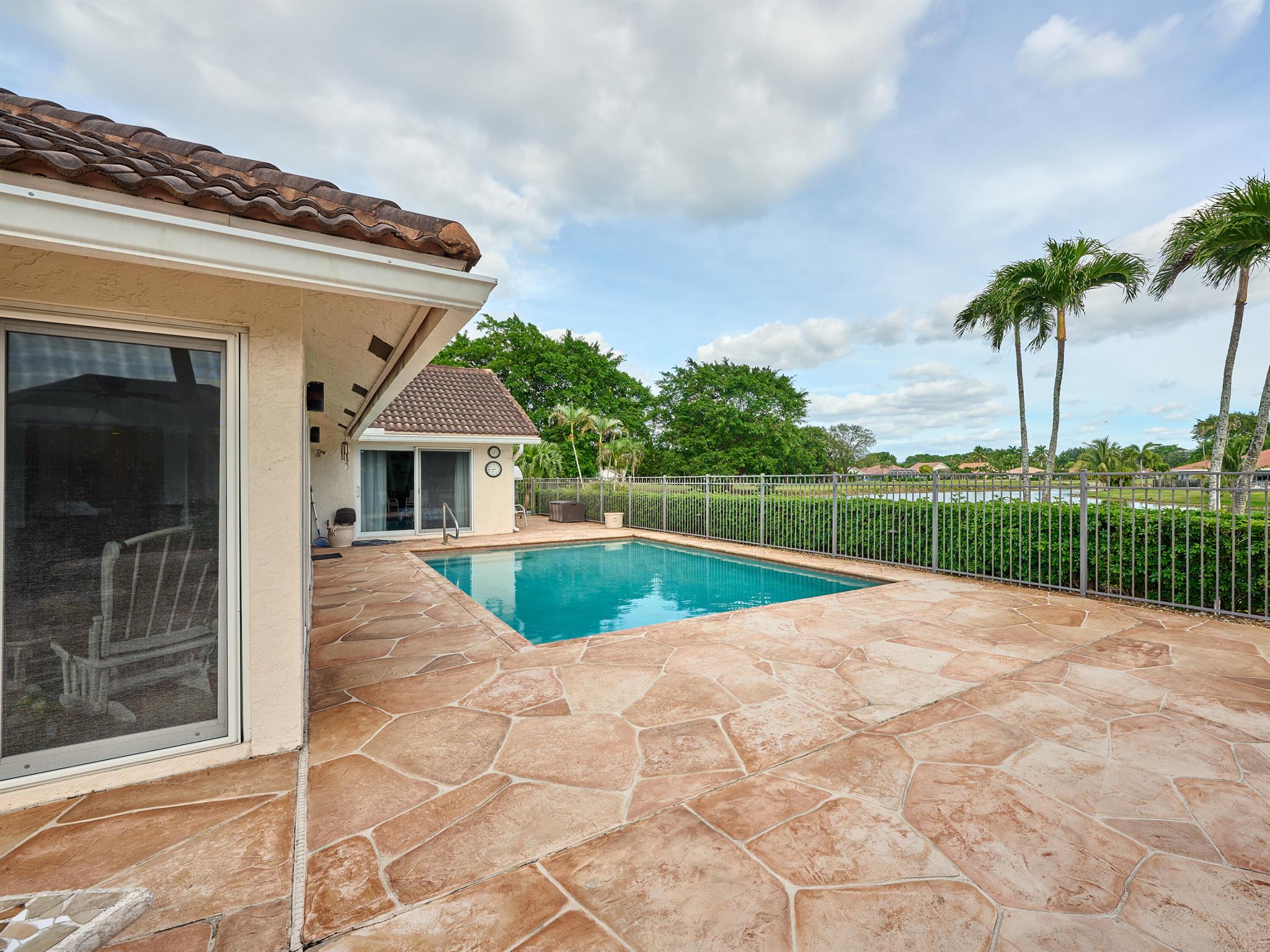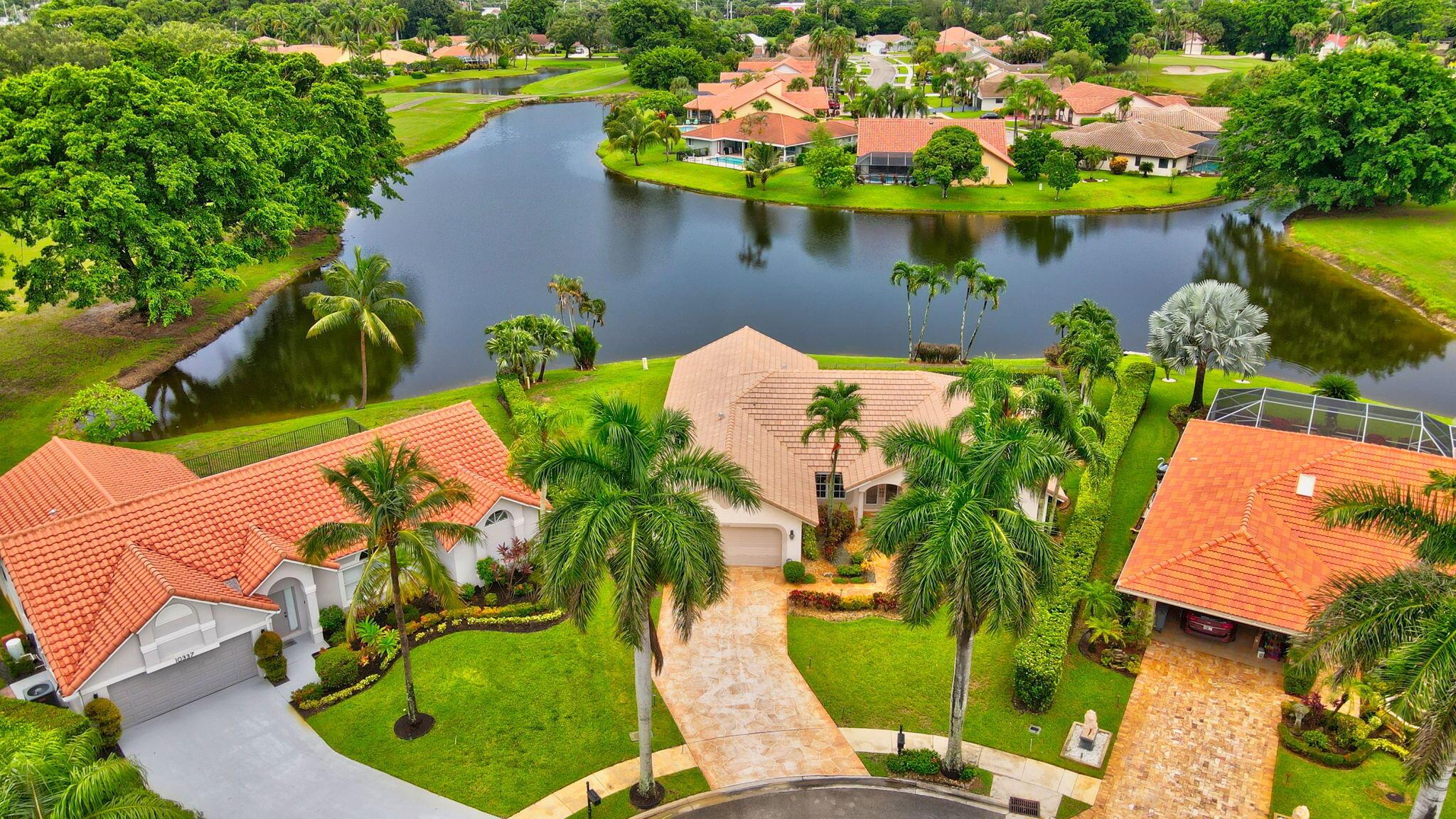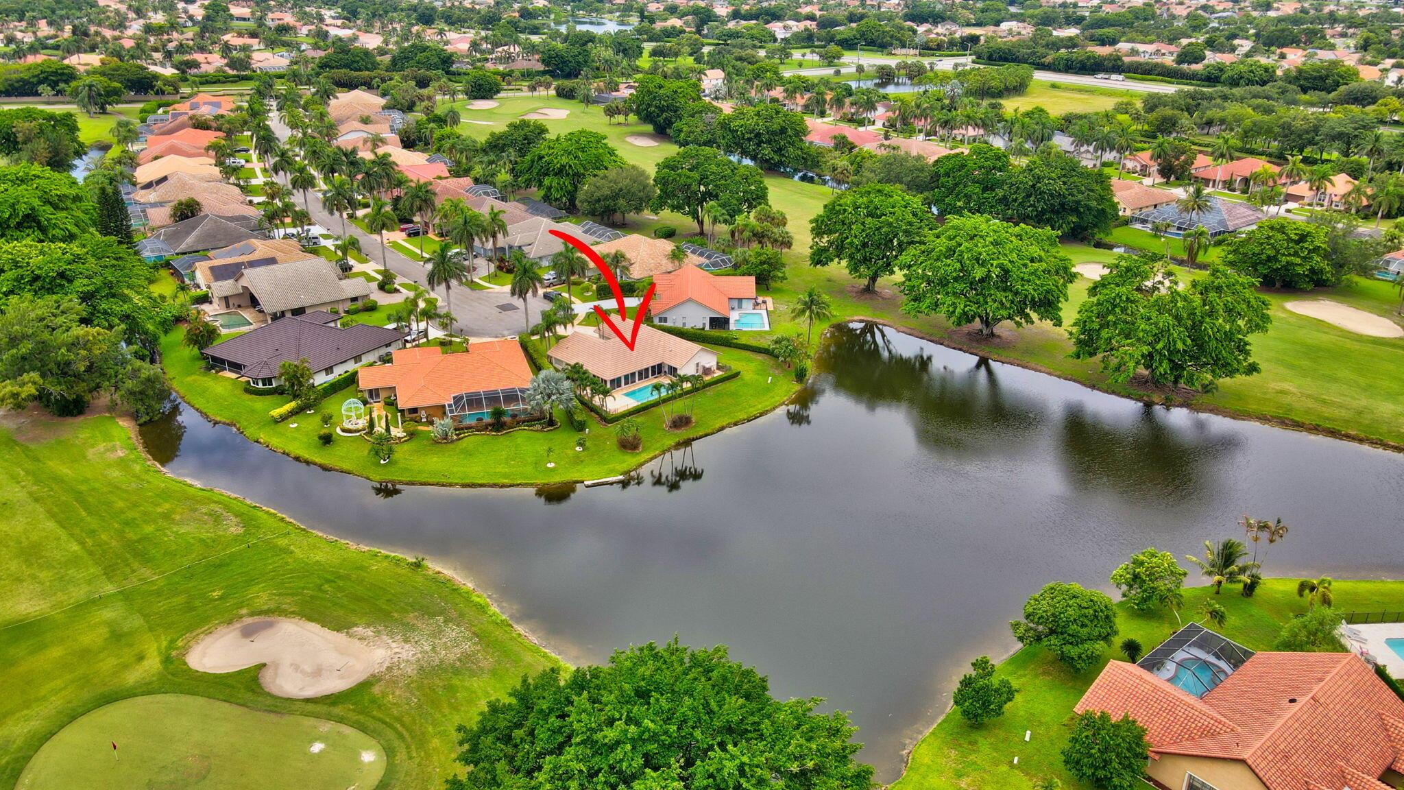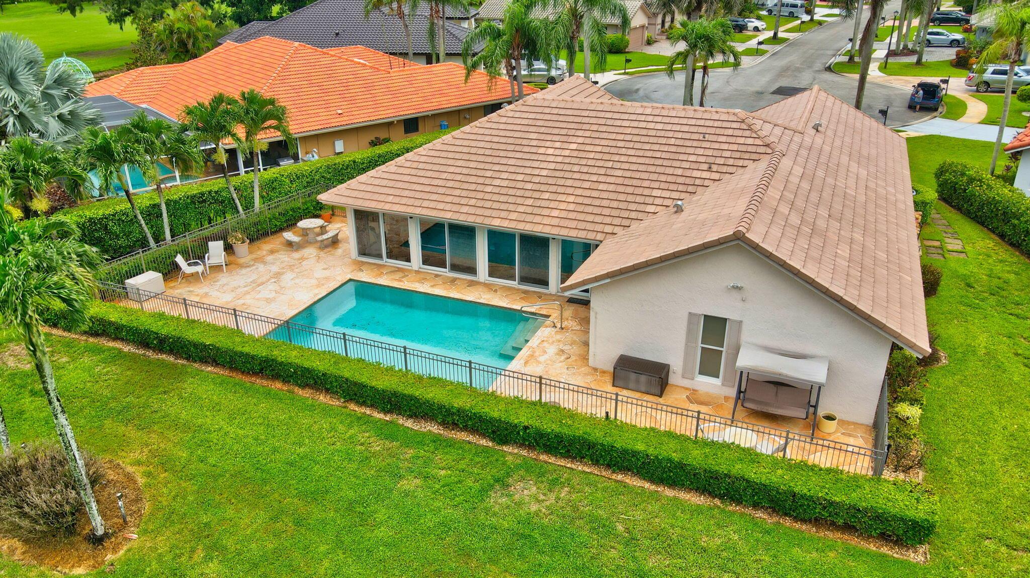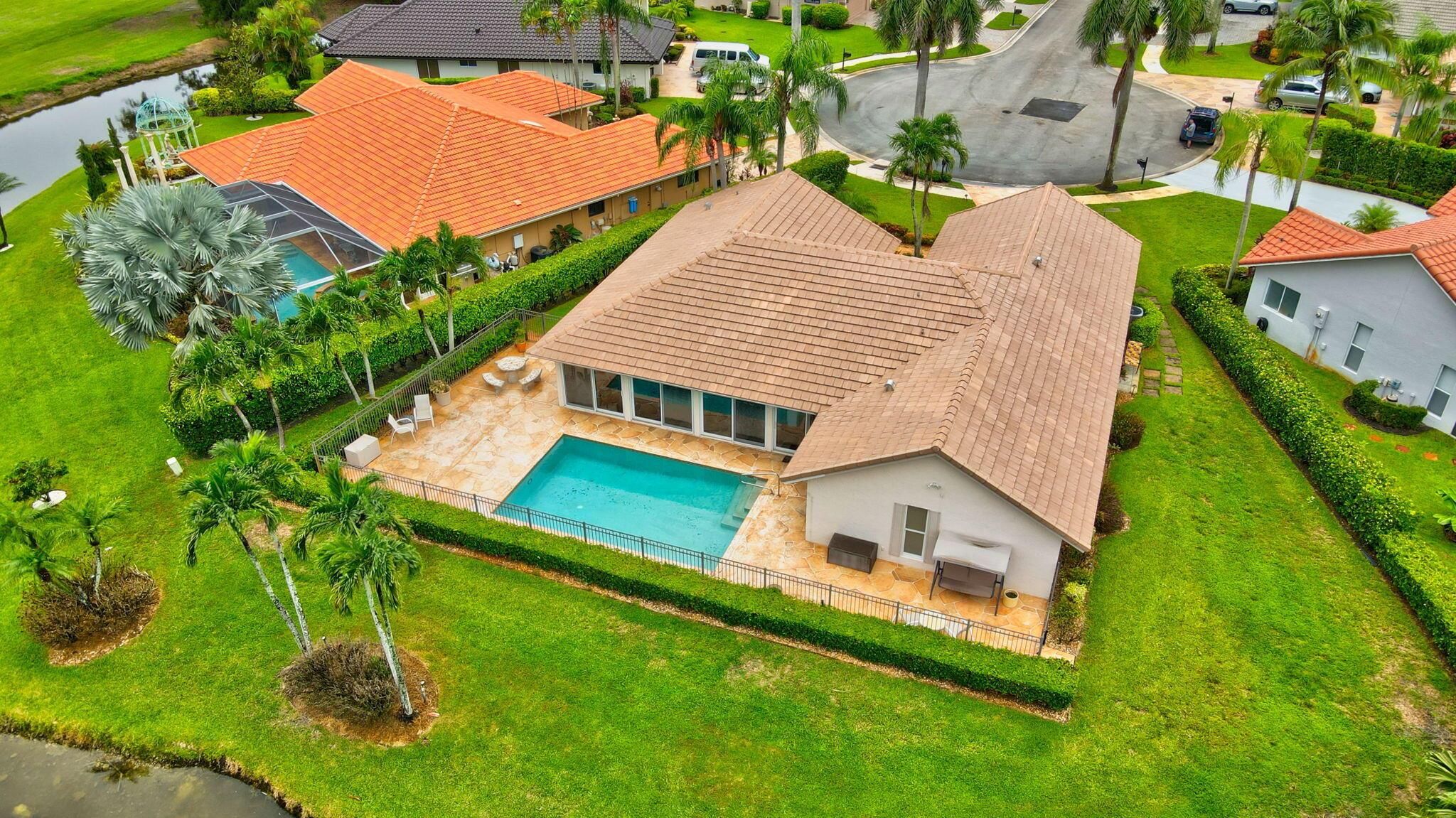 Situated on one of the most EXQUISITE WATERFRONT and GOLF lots of the GATED, Country Club Community Boca Greens. Soaring ceilings, Natural Light and Panoramic Lake views set the stage for this SPACIOUS 3 bedroom 2 bath pool home with a BRAND NEW ROOF!! NO MANDATORY MEMBERSHIP| IMPACT WINDOWS and DOORS!! Primary room features a large walk in closet, wood flooring, sliders leading out to sunroom, oversized ensuite with dual vanity, walk in shower and soaking tub. High Gloss Sleek Grey cabinets in Kitchen | Corian Counters| Bar Top Seating| SS appliances | pendant lighting| Slate Tile| Oversized Florida room featuring panoramic views of Pool, Lake and Golf course| Impact Sliders that lead to a gorgeous stamped concrete patio, sparkling pool with wrought iron fencing