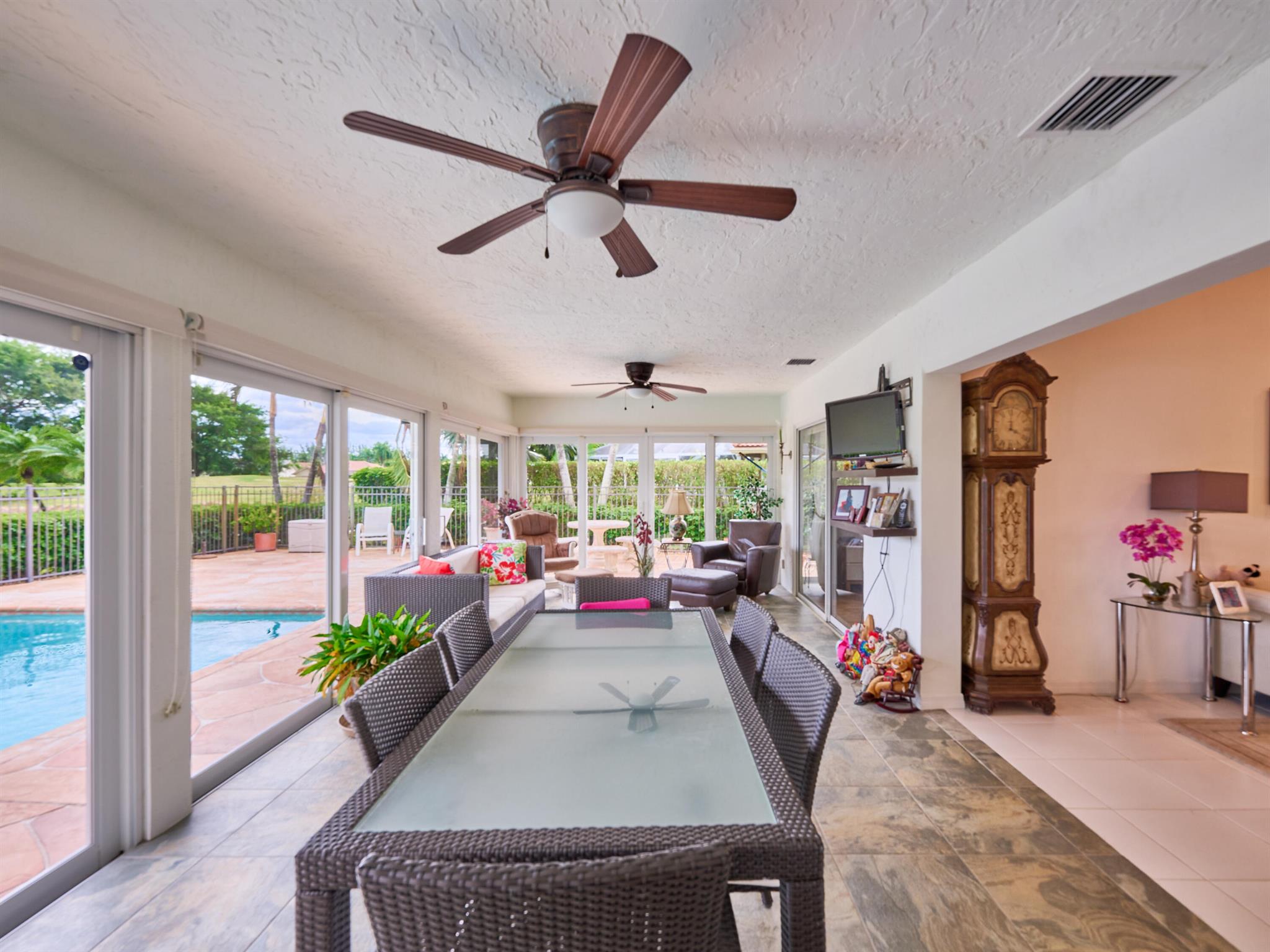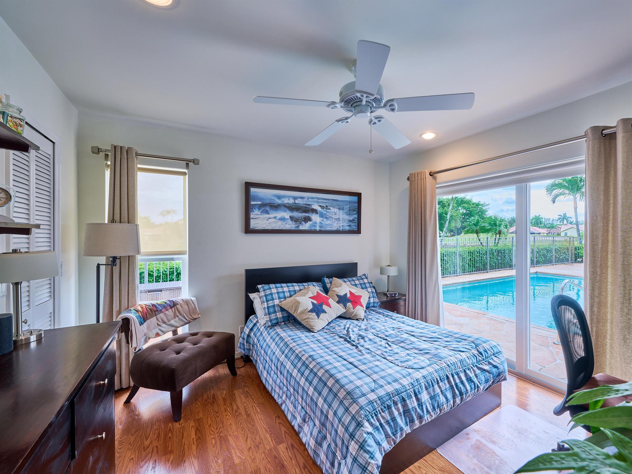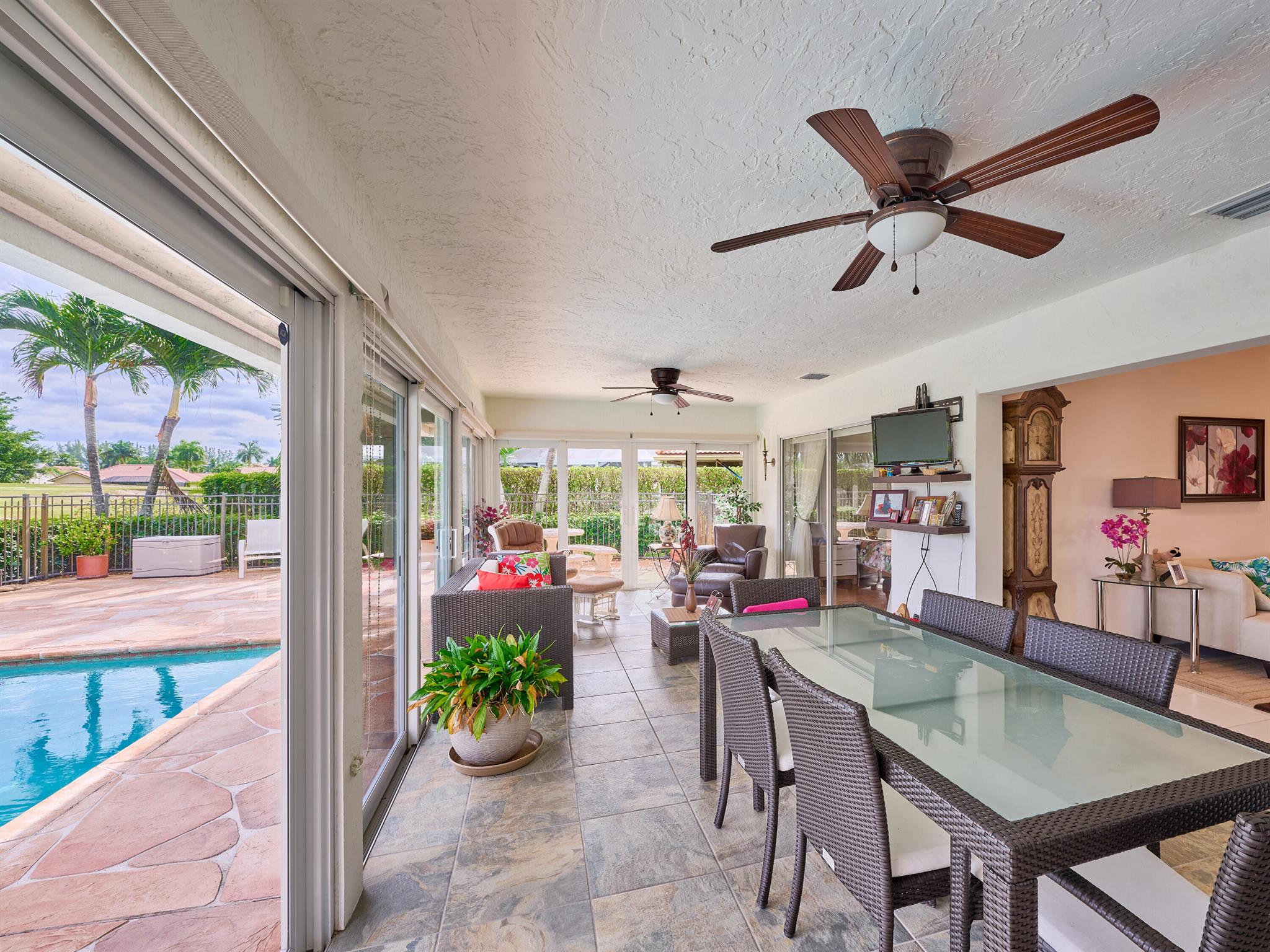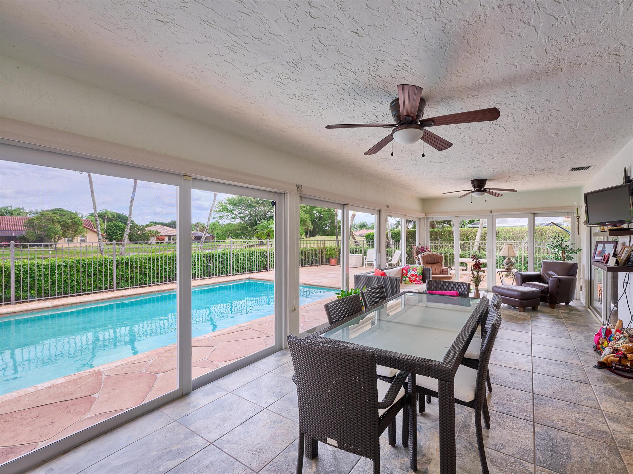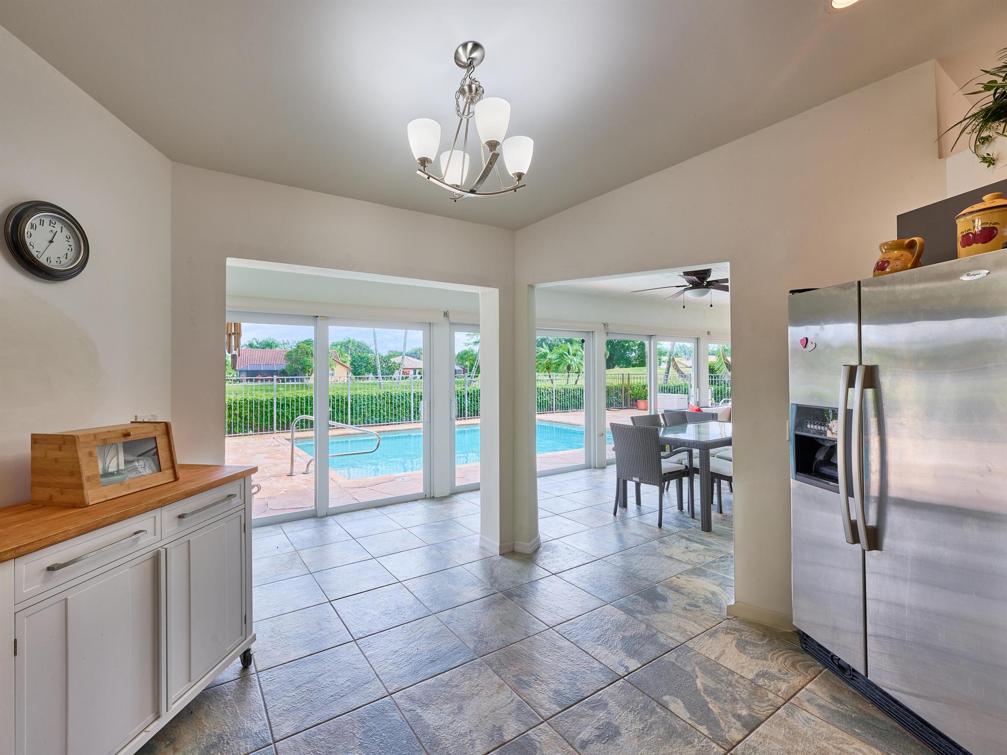 Situated on one of the most EXQUISITE WATERFRONT and GOLF lots of the GATED, Country Club Community Boca Greens. Soaring ceilings, Natural Light and Panoramic Lake views set the stage for this SPACIOUS 3 bedroom 2 bath pool home with a BRAND NEW ROOF!! NO MANDATORY MEMBERSHIP| IMPACT WINDOWS and DOORS!! Primary room features a large walk in closet, wood flooring, sliders leading out to sunroom, oversized ensuite with dual vanity, walk in shower and soaking tub. High Gloss Sleek Grey cabinets in Kitchen | Corian Counters| Bar Top Seating| SS appliances | pendant lighting| Slate Tile| Oversized Florida room featuring panoramic views of Pool, Lake and Golf course| Impact Sliders that lead to a gorgeous stamped concrete patio, sparkling pool with wrought iron fencing