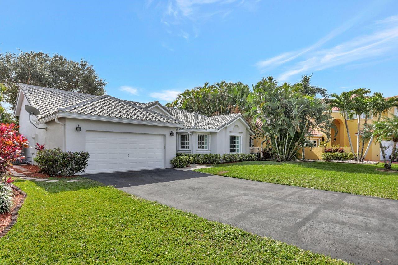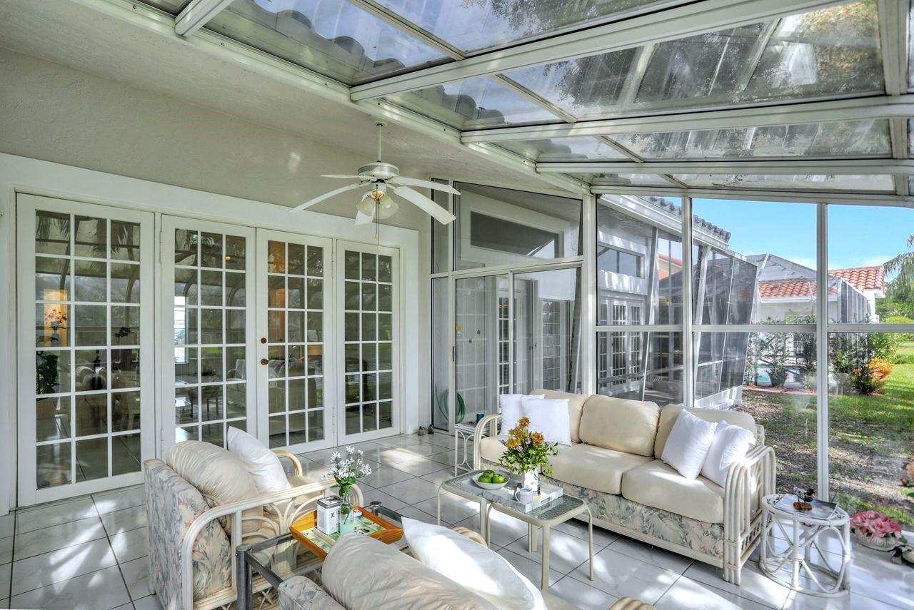 Nestled in a cul-de-sac niche on a gorgeous lakefront lot with picturesque water views, this charming single-story Weston home features a unique air-conditioned glass-enclosed tiled sunroom that extends the living area, plus an adjacent covered patio, screened for year-round outdoor comfort. The home is set back from the road with an expansive front lawn & long driveway that can accommodate multiple cars. The largely original interior is light & bright with a spacious split floor plan, high ceilings, huge arched windows & several sets of French doors that lead to the picture-perfect indoor-outdoor area. NEWER features include ROOF 2018, AC 2017, accordion shutters & wood-look porcelain floors 2021. Gated boutique comm, clubhouse w/pool. Near A+ schools, Houses of Worship, shops & parks.