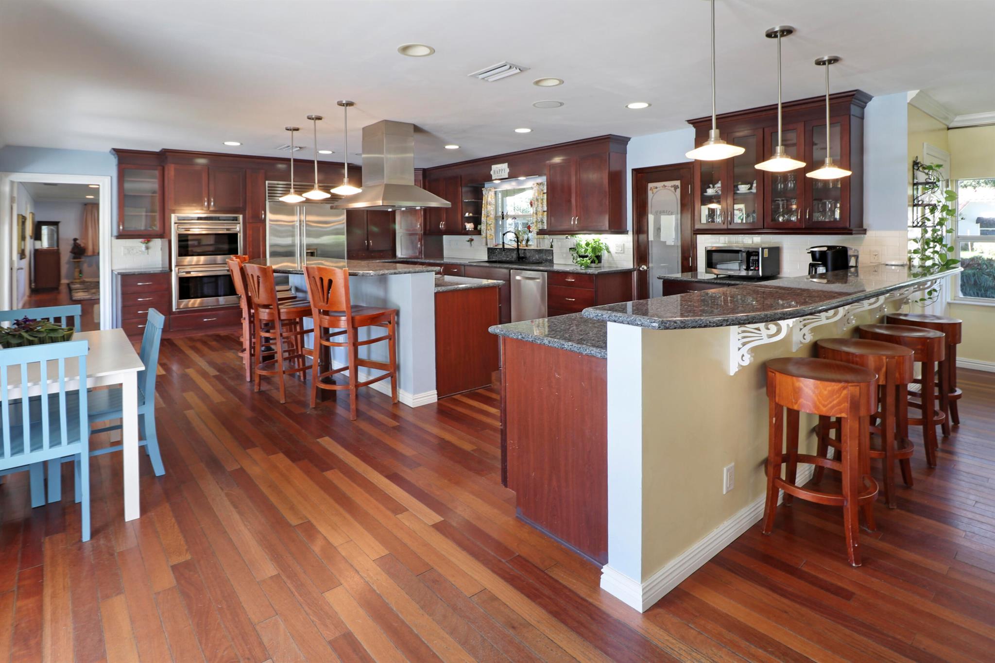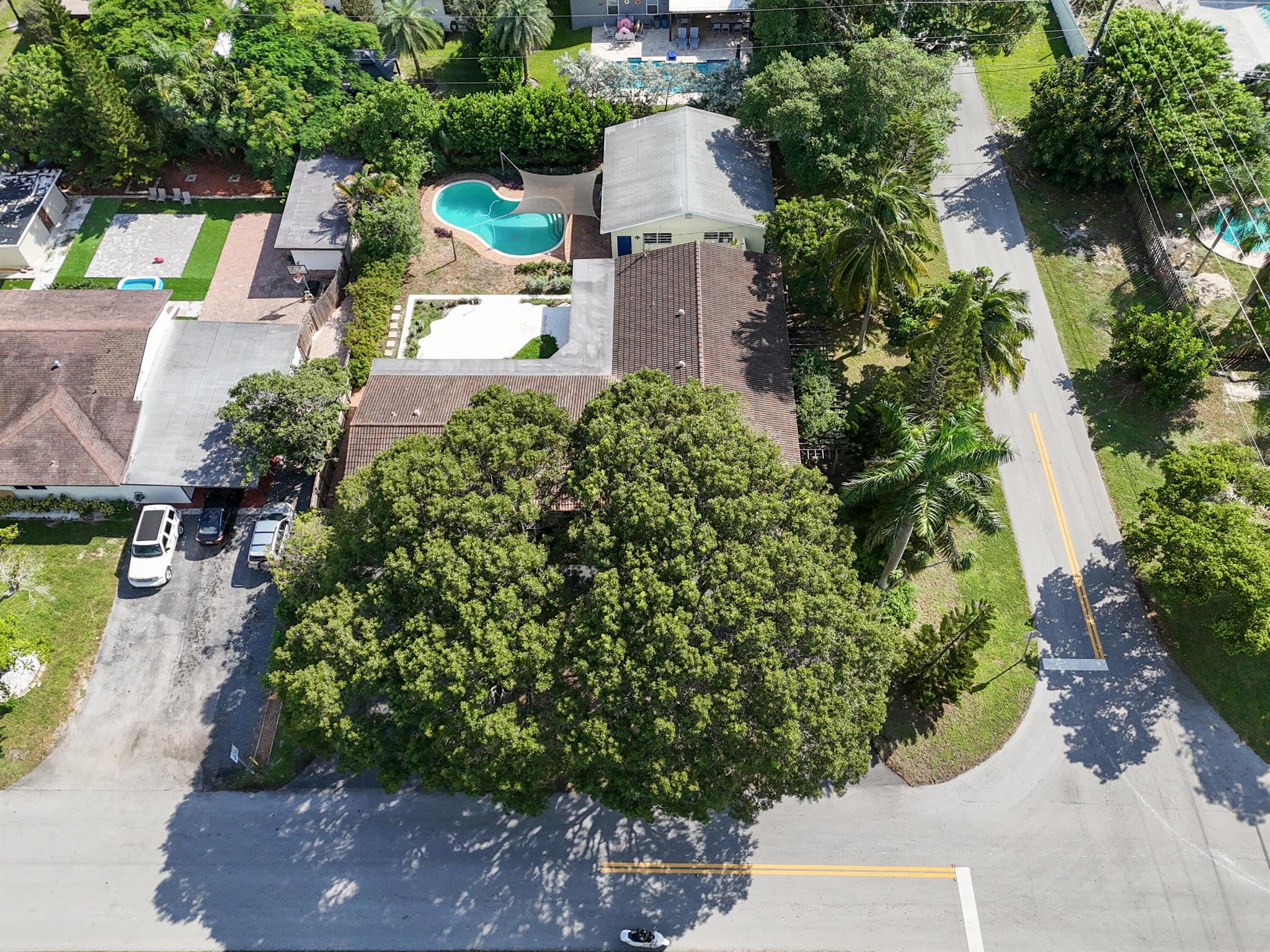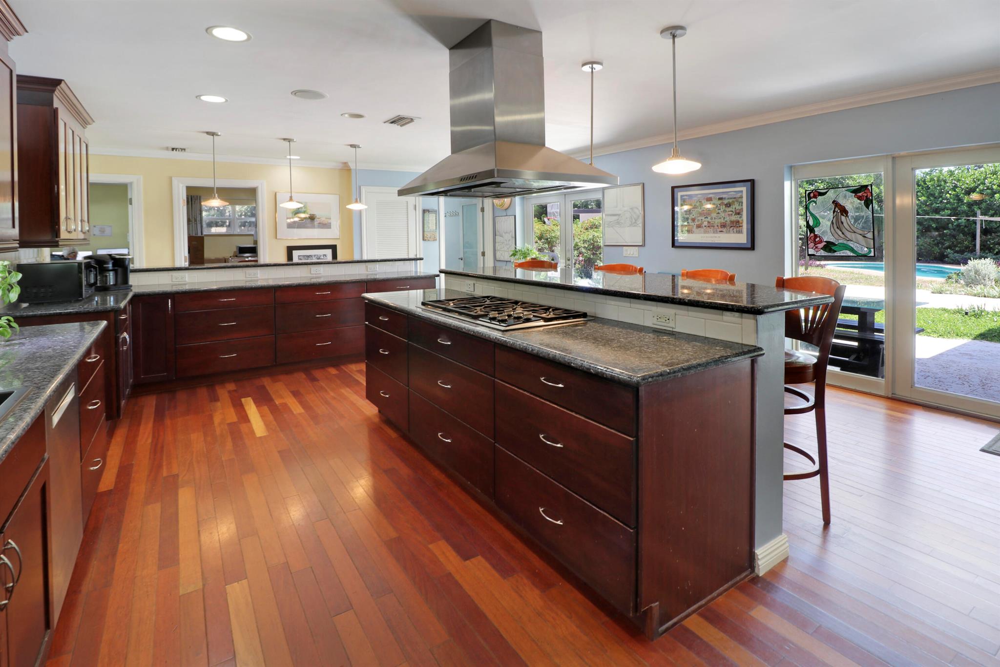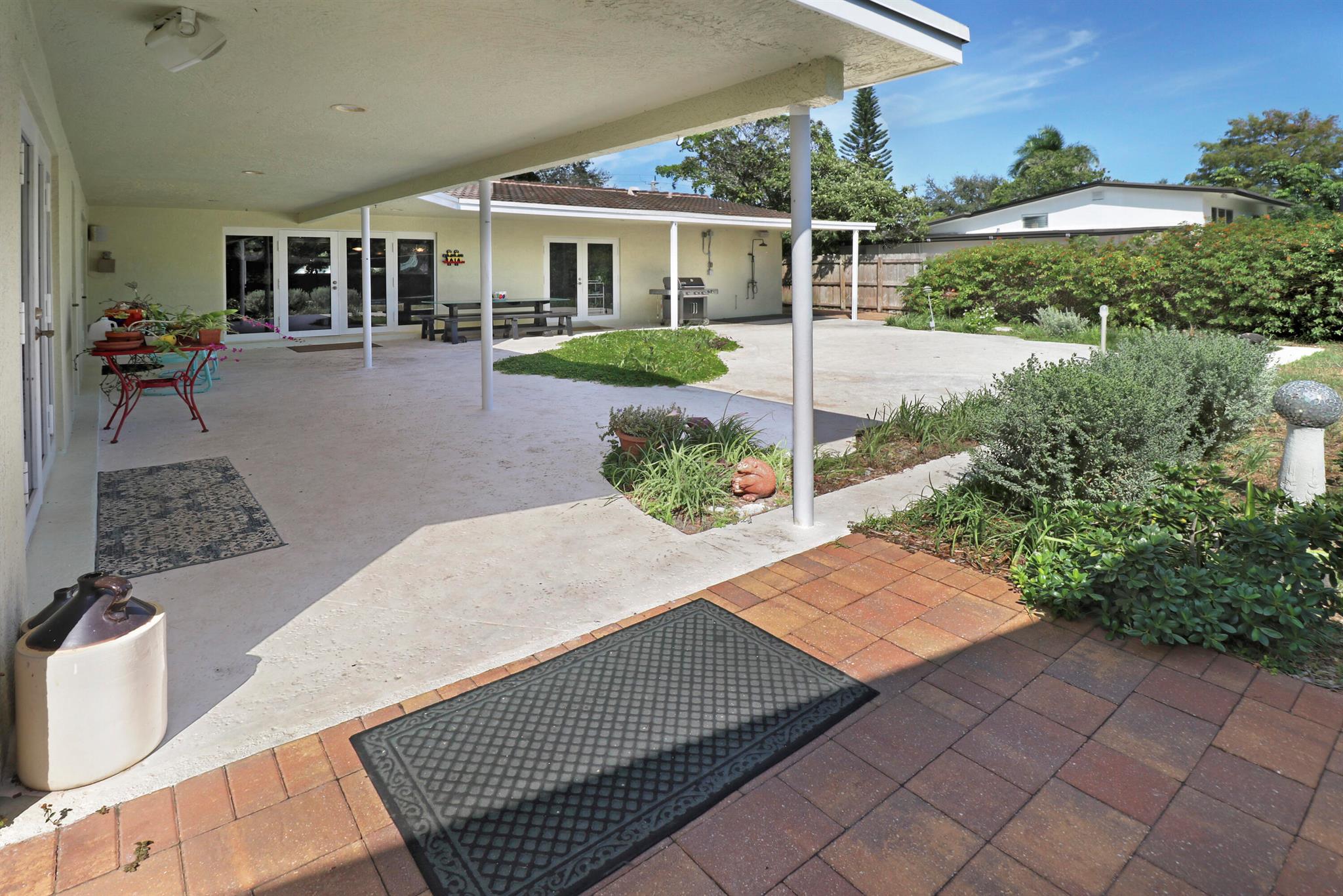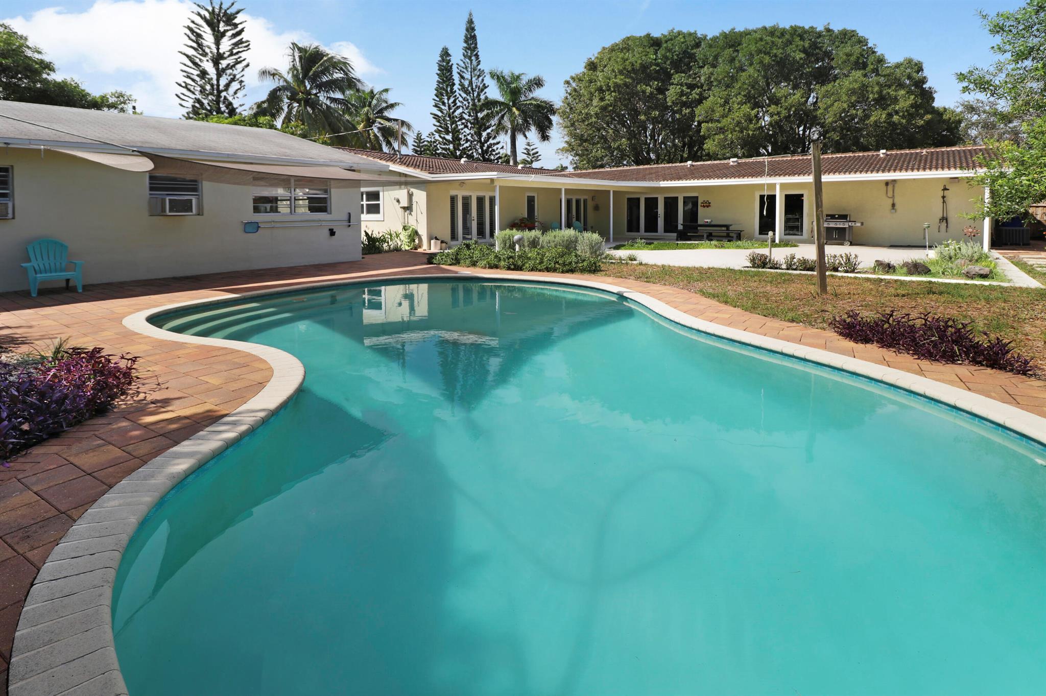 Located in historic 'Old Pompano', this spacious ranch was totally restored in 2007 with all new plumbing, electrical, insulation, new wallboard, and hurricane windows and doors. The roof was replaced in 2016 and is expected to have a 35 year life span. There is a steam room in the second bath and the master suite features a walk in closet with a roman bath with a heated whirlpool in the master bath. The living room features custom, built in bookcases and a speaker system for piping music both inside and outside. The spacious kitchen features all upgraded appliances with cabinets made with solid cherry doors and drawers. There is also a walk in pantry. The house includes an office and an arts and crafts room. The backyard features a spacious patio and in ground pool.