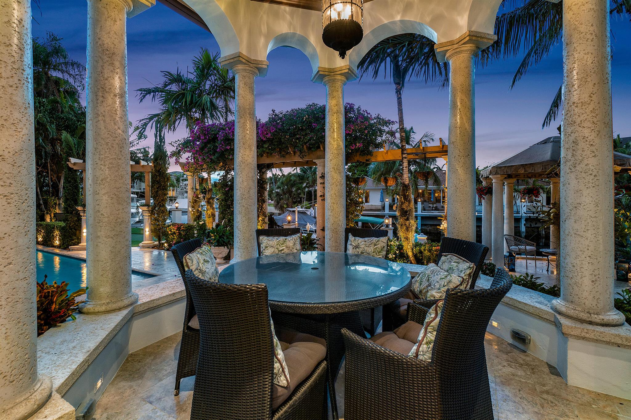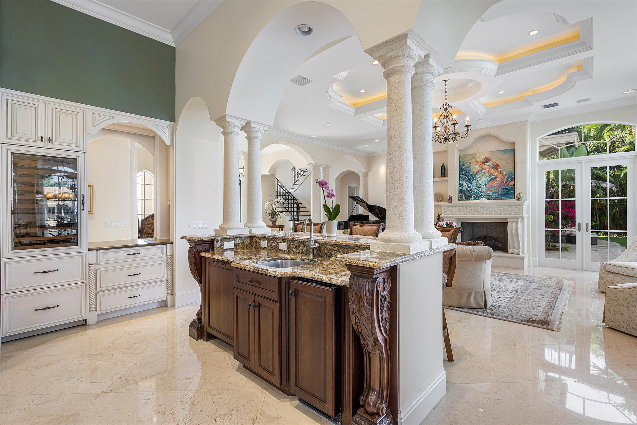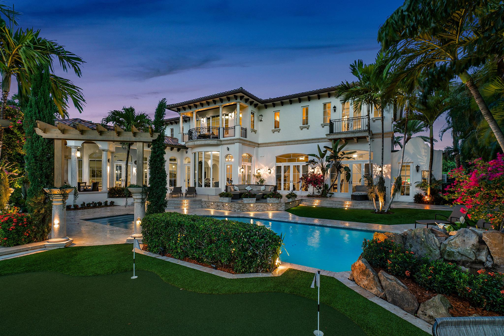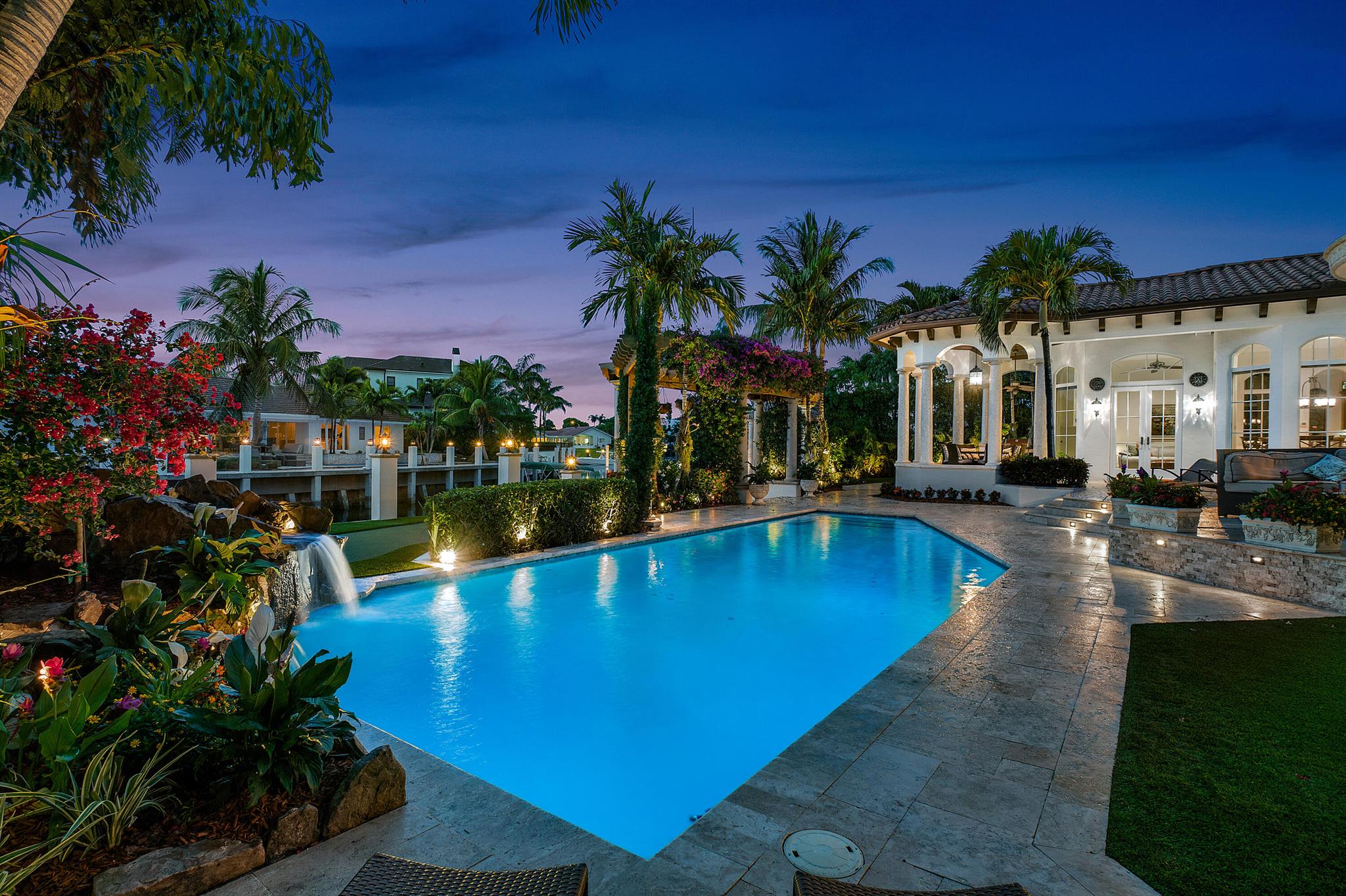 A unique opportunity to own this gorgeous estate located in the premier oceanside community of Sun and Surf. Situated on a sprawling .38 acre waterfront lot boasting incredible privacy, this custom built home features an expansive 95 foot boat dock, intracoastal/golf views, and is a reflection of the aesthetic architecture that is Boca Raton. The impressive 7,298 total sqft residence features 6 bedrooms, 5 full & 1 half bathrooms, marble floors, 5 car garage with car lift, 4 gas fireplaces, elevator, generator, new seawall/dock, 2 laundry rooms, coffered ceilings, plus a 3rd floor for media room/gym/office. Resort-style amenities include a heated pool, waterfall, putting green, short walk to the beach, Red Reef Park & Golf Course, high-end shopping and dining, plus the Boca Raton Resort.