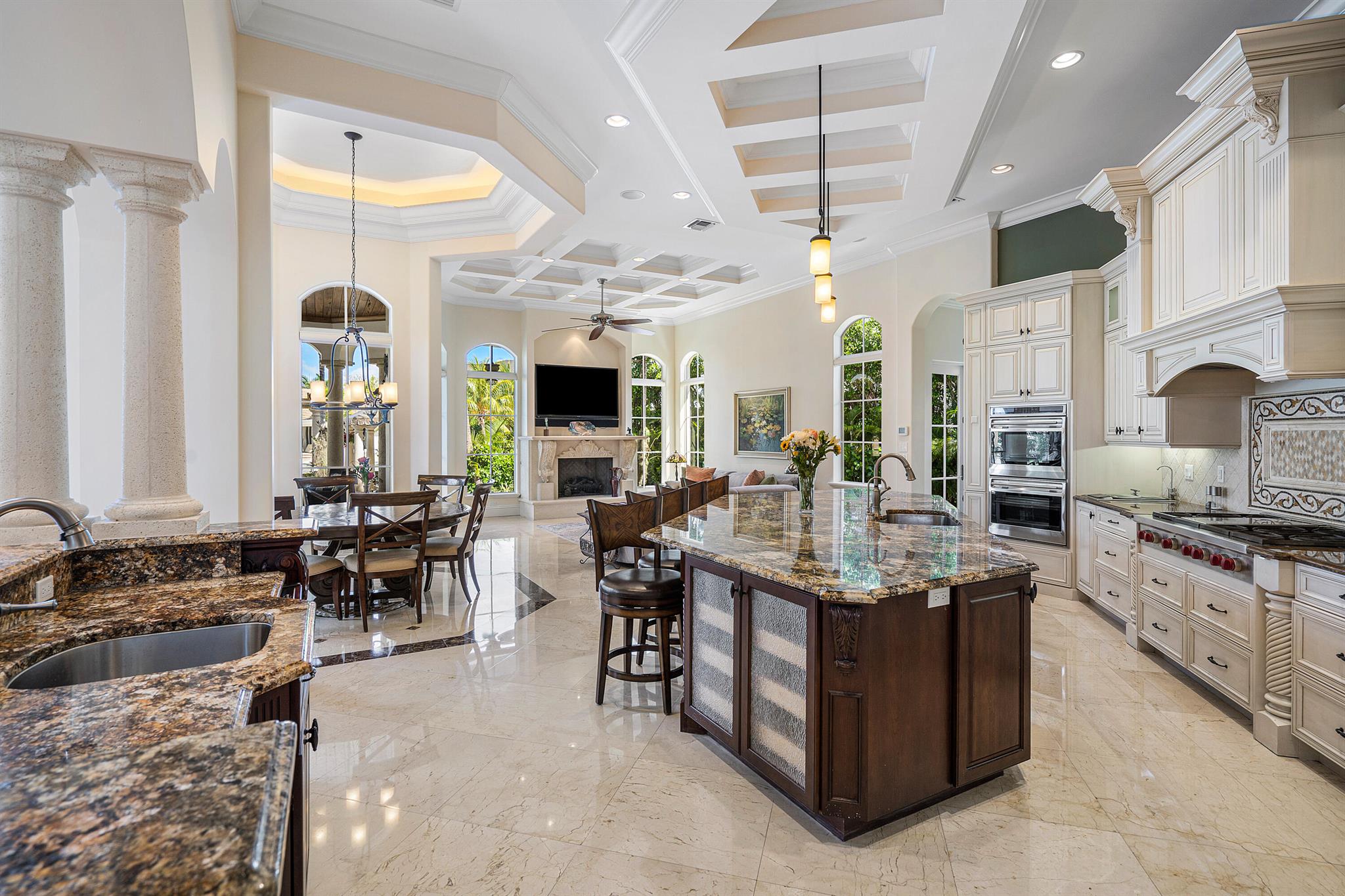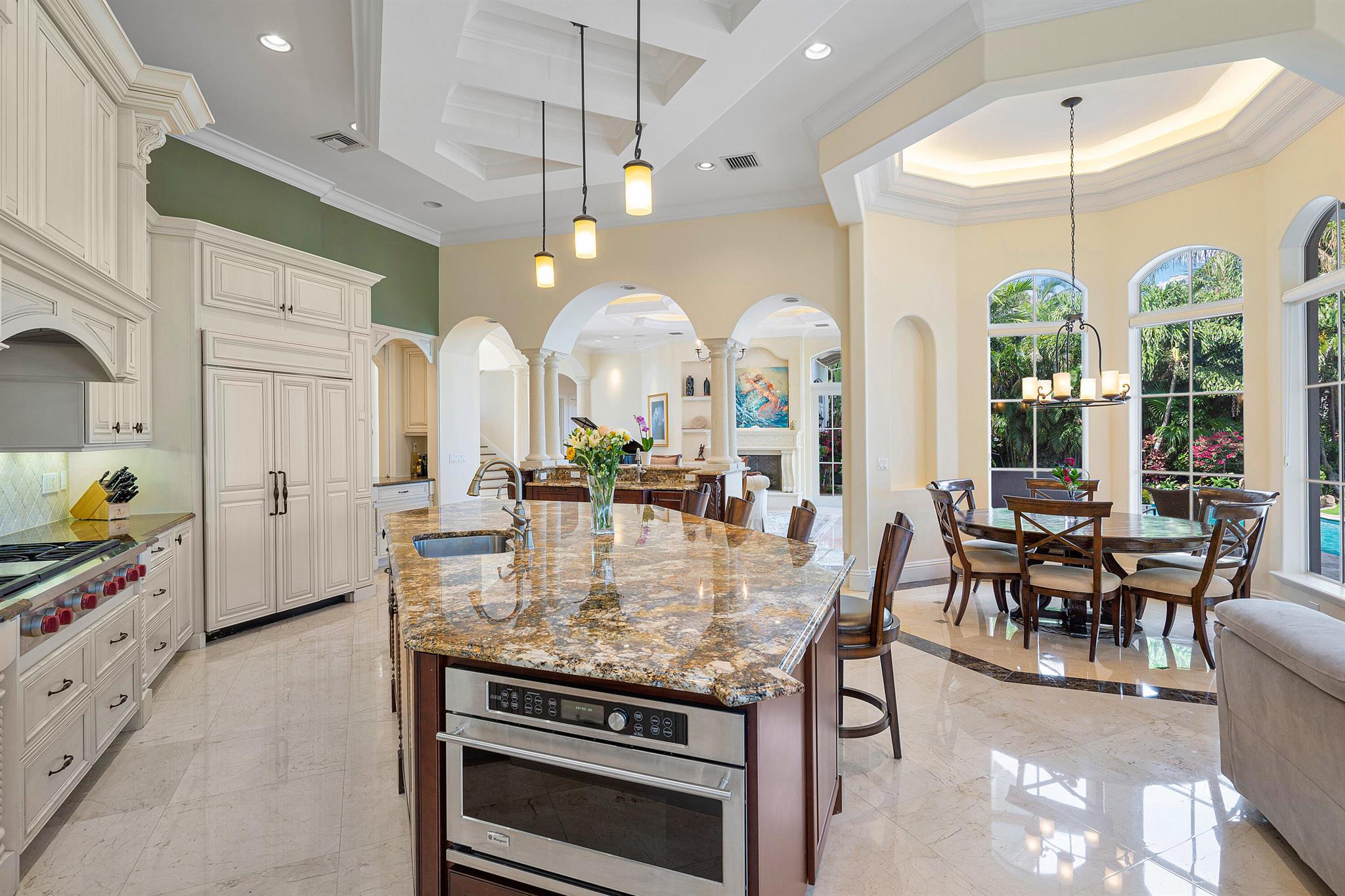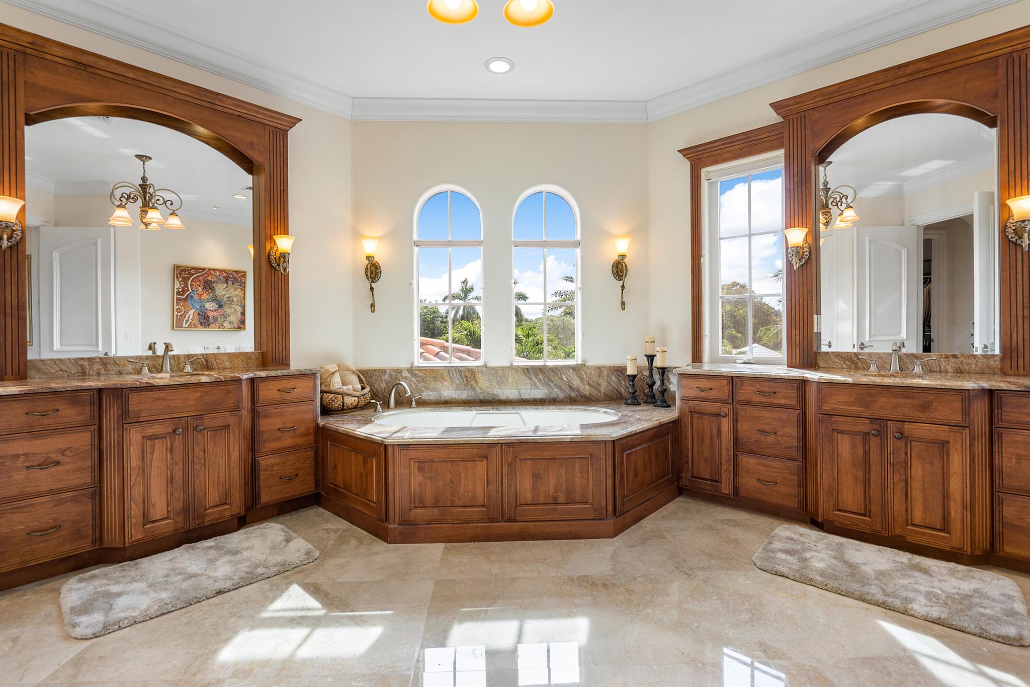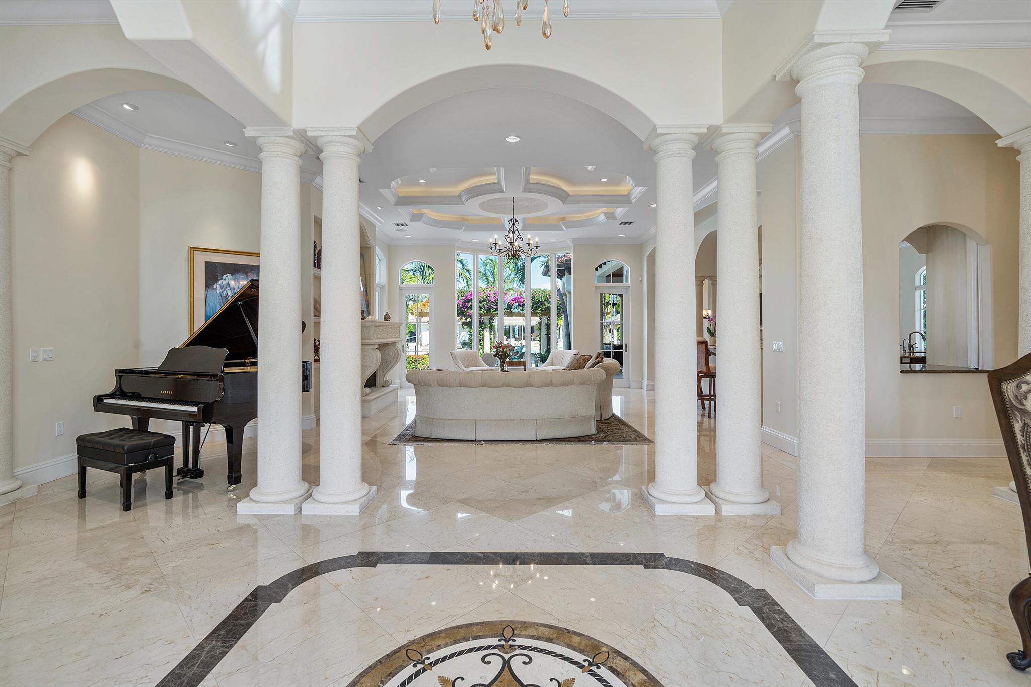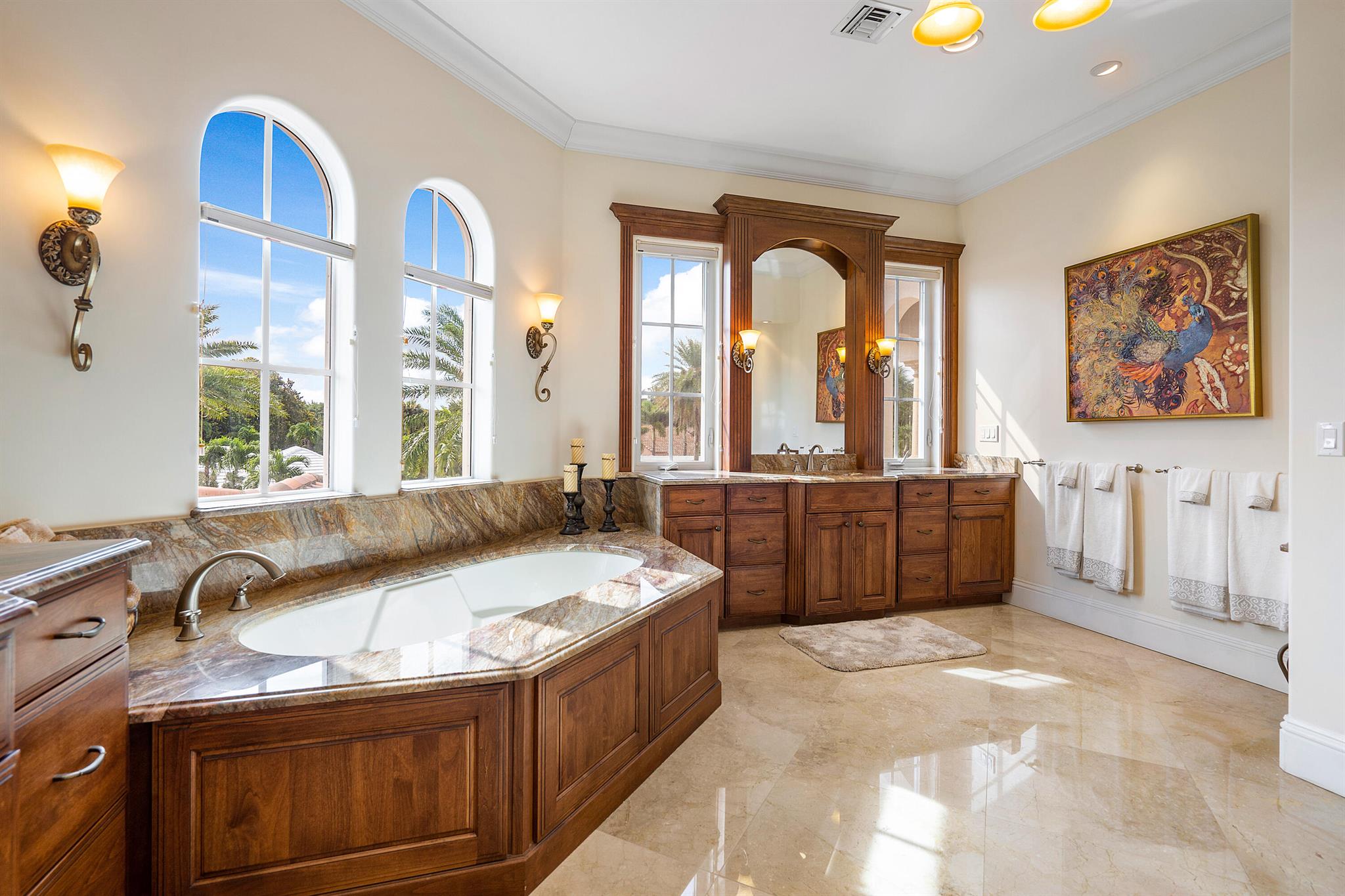 A unique opportunity to own this gorgeous estate located in the premier oceanside community of Sun and Surf. Situated on a sprawling .38 acre waterfront lot boasting incredible privacy, this custom built home features an expansive 95 foot boat dock, intracoastal/golf views, and is a reflection of the aesthetic architecture that is Boca Raton. The impressive 7,298 total sqft residence features 6 bedrooms, 5 full & 1 half bathrooms, marble floors, 5 car garage with car lift, 4 gas fireplaces, elevator, generator, new seawall/dock, 2 laundry rooms, coffered ceilings, plus a 3rd floor for media room/gym/office. Resort-style amenities include a heated pool, waterfall, putting green, short walk to the beach, Red Reef Park & Golf Course, high-end shopping and dining, plus the Boca Raton Resort.