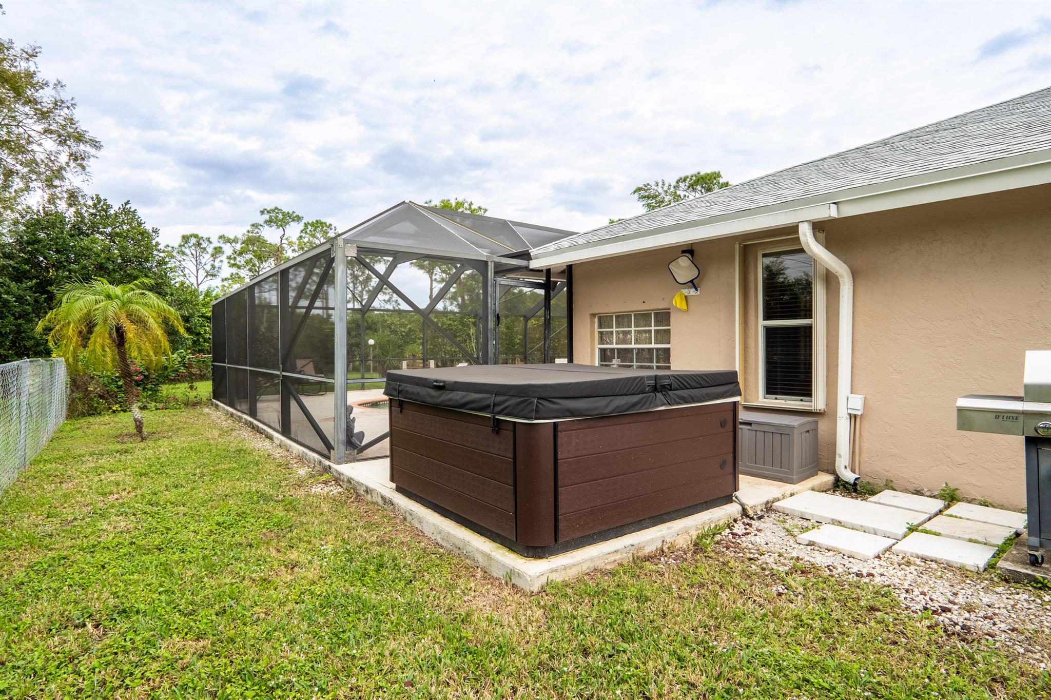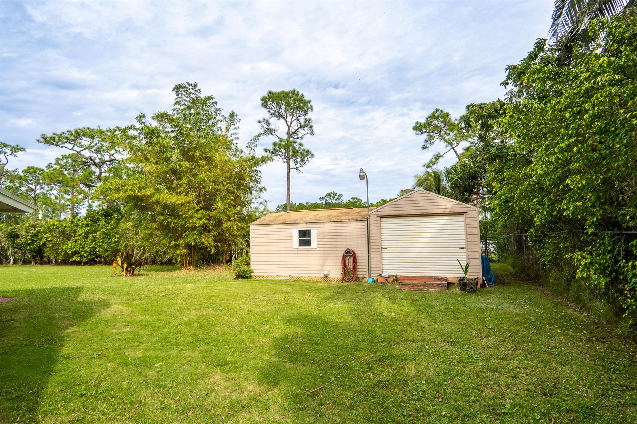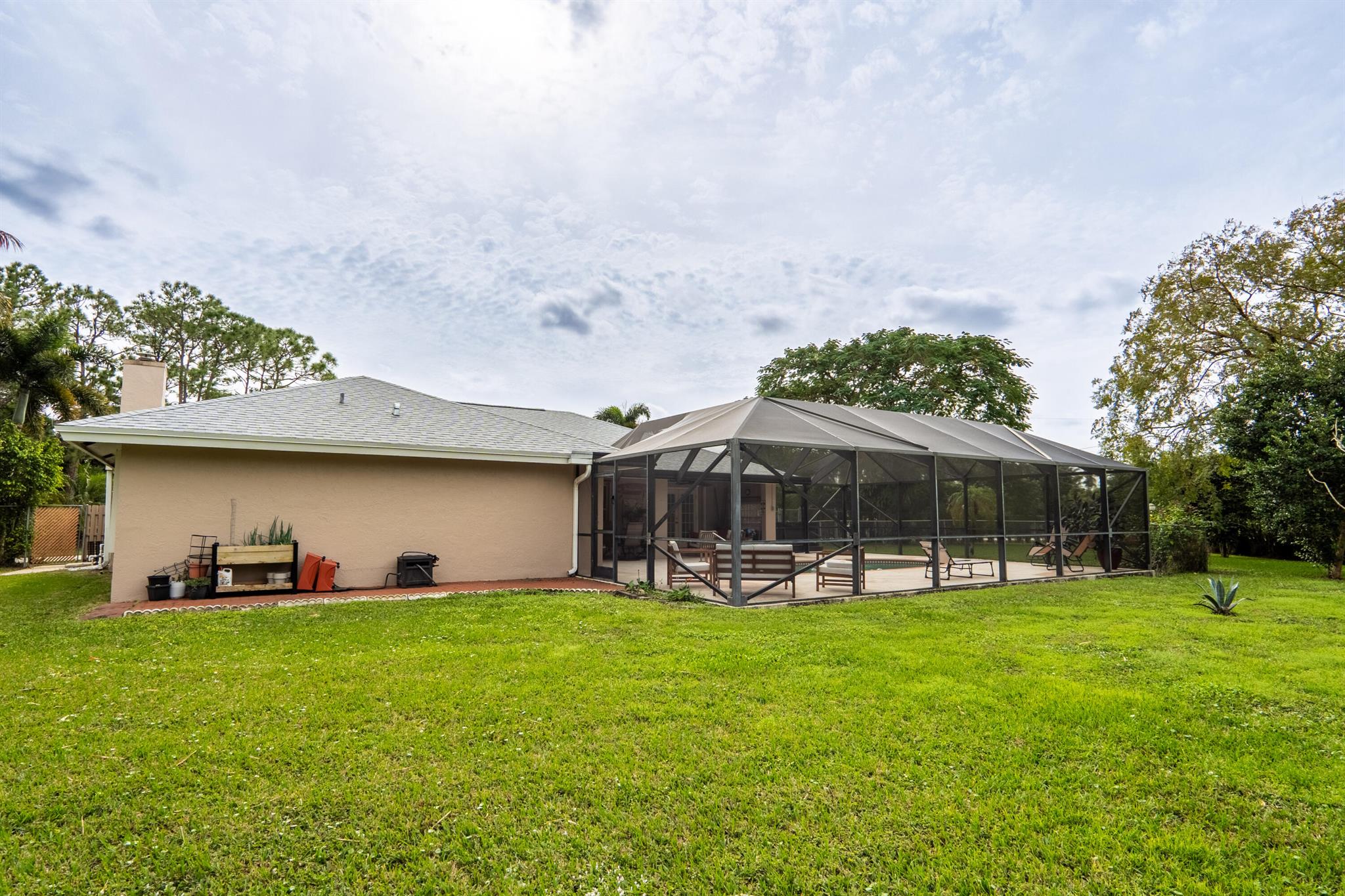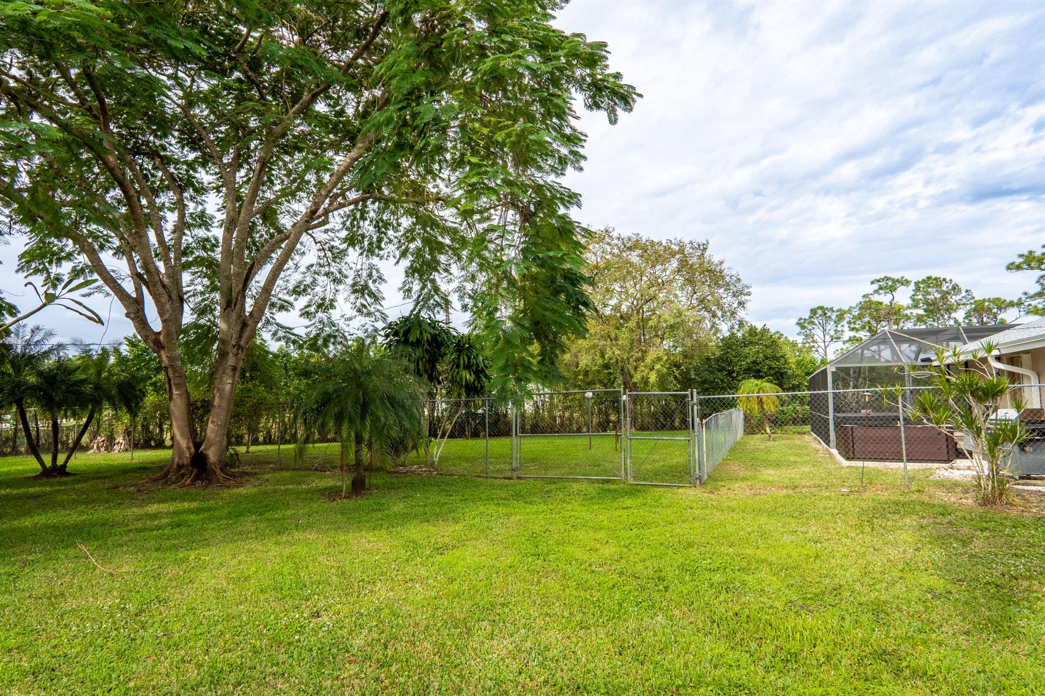 New roof August 2023! 3/2 with an attached two car garage, over 2000 sq. ft on 1.36 acres! Updated kitchen, flooring and master bath! Major systems, including the hot water heater, air handler, and water softener system, were all replaced in the last few years. Full accordion shutters Beautiful pool, spa and huge outdoor sitting area. Yard is fully fenced with a separate dog run, electric gate and TWO entrances! Huge circular drive for plenty of parking! Need even more storage? Shed has two sides: one for equipment and the other side is being used as a gym! Corner lot on a paved and dirt road. Fruit trees? So glad you asked! Featuring seven pineapple plants, two mango avocado. banana,and guava trees and an orchid garden! Privacy, space and beauty all in one place! This IS Loxahatchee