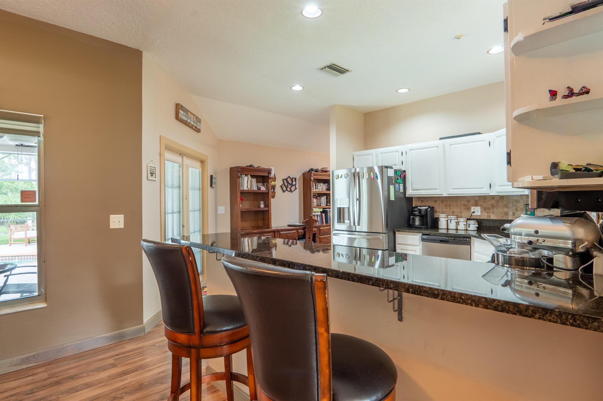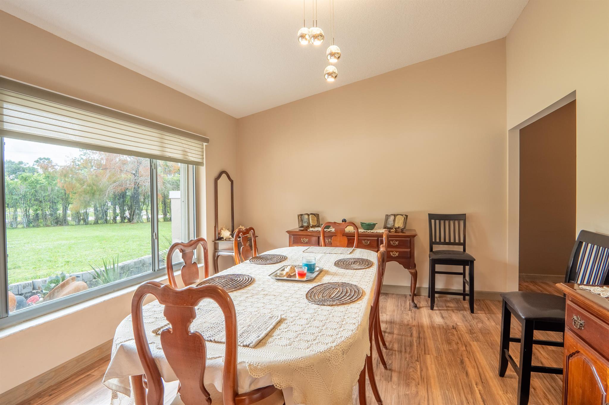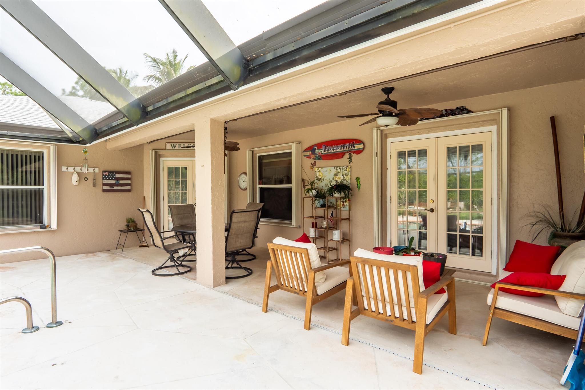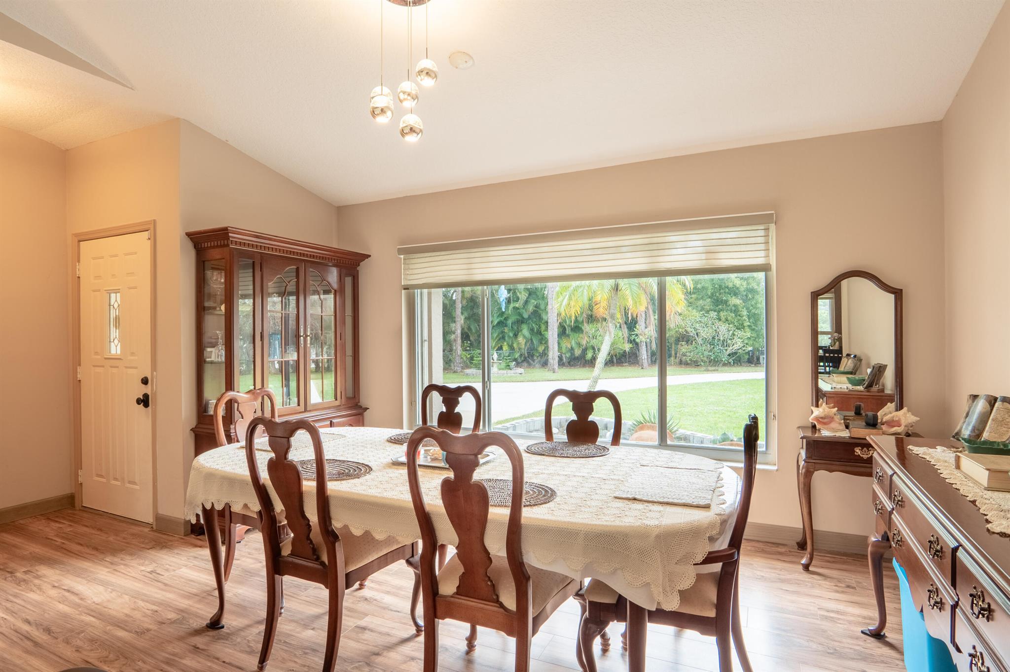 New roof August 2023! 3/2 with an attached two car garage, over 2000 sq. ft on 1.36 acres! Updated kitchen, flooring and master bath! Major systems, including the hot water heater, air handler, and water softener system, were all replaced in the last few years. Full accordion shutters Beautiful pool, spa and huge outdoor sitting area. Yard is fully fenced with a separate dog run, electric gate and TWO entrances! Huge circular drive for plenty of parking! Need even more storage? Shed has two sides: one for equipment and the other side is being used as a gym! Corner lot on a paved and dirt road. Fruit trees? So glad you asked! Featuring seven pineapple plants, two mango avocado. banana,and guava trees and an orchid garden! Privacy, space and beauty all in one place! This IS Loxahatchee