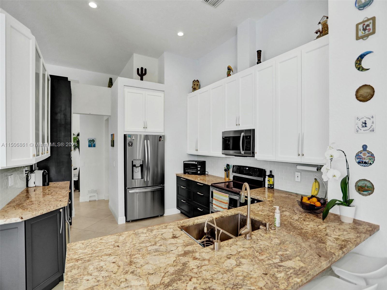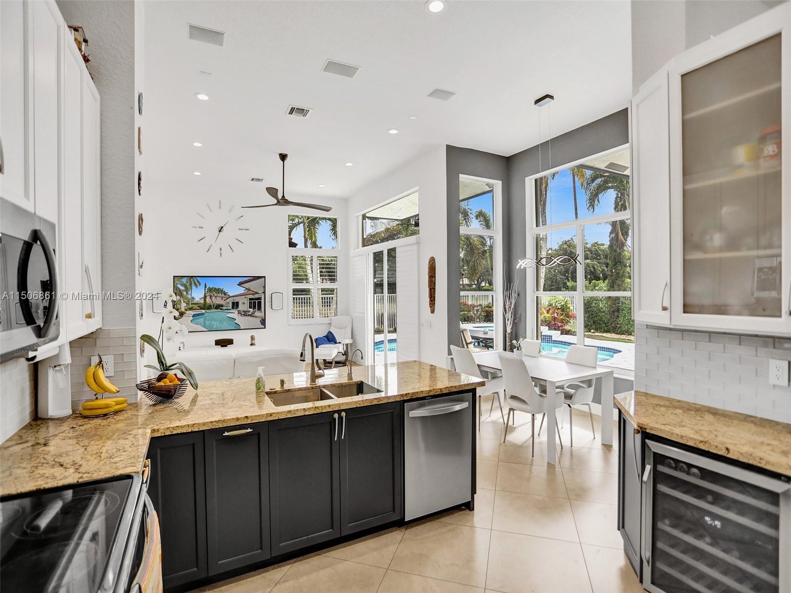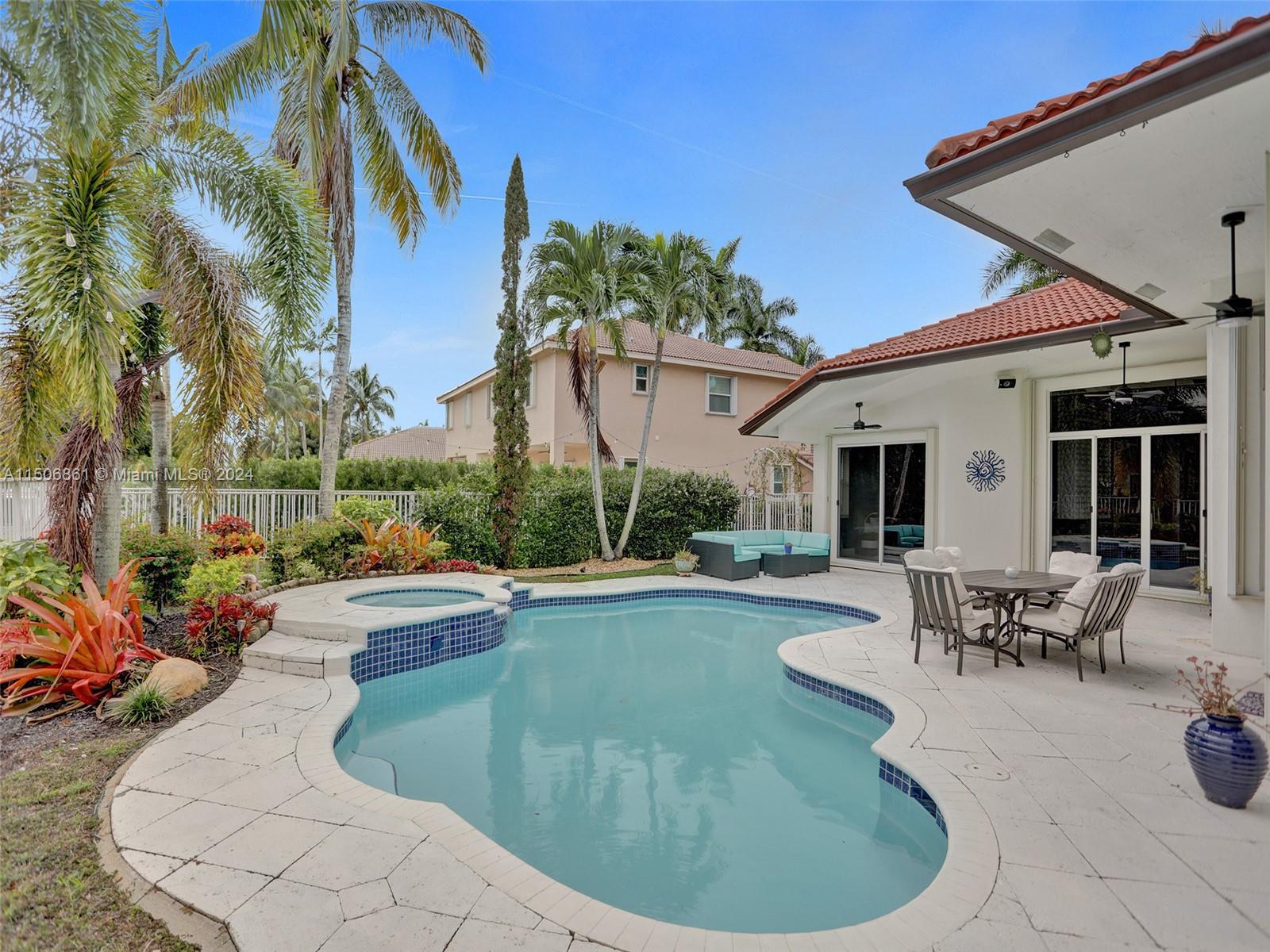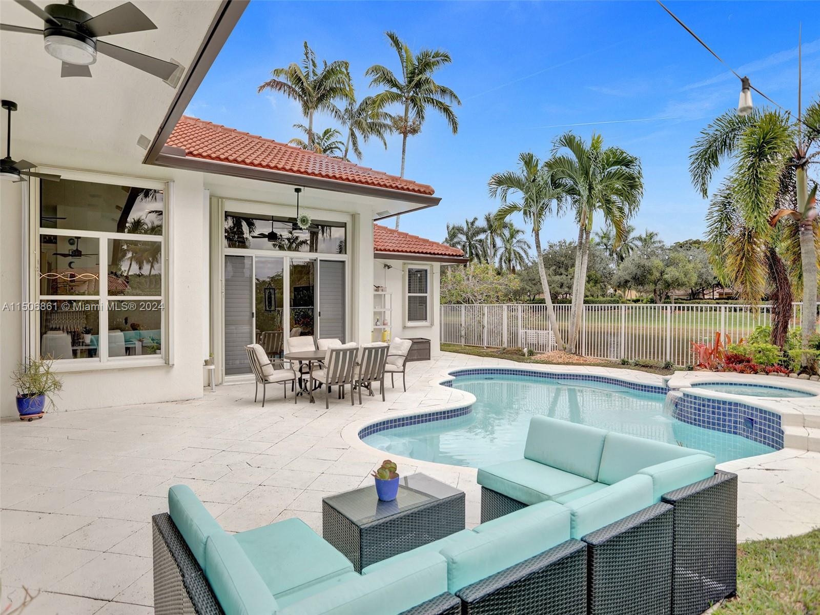 This stunning residence boasts a triple split floor plan with 5 bedrooms, 3 baths, and a 3-car garage, offering ample space for luxurious living in the prestigious Cove III neighborhood of Savana in Weston, where this spectacular dream home awaits you. As you step inside, you'll be greeted by 10-12 ft ceilings, custom made cabinetry, and elegant granite countertops. The kitchen features new appliances, including a fridge and microwave. Step outside to discover the inviting backyard, complete with a fully fenced pool area with lake view. The expansive outdoor space is ideal for entertaining. Located in a gated community, with access to resort-style amenities. A+ rated schools and minutes to parks, restaurants and shops. A+ rated schools. 2016 Roof. Schedule a showing today!