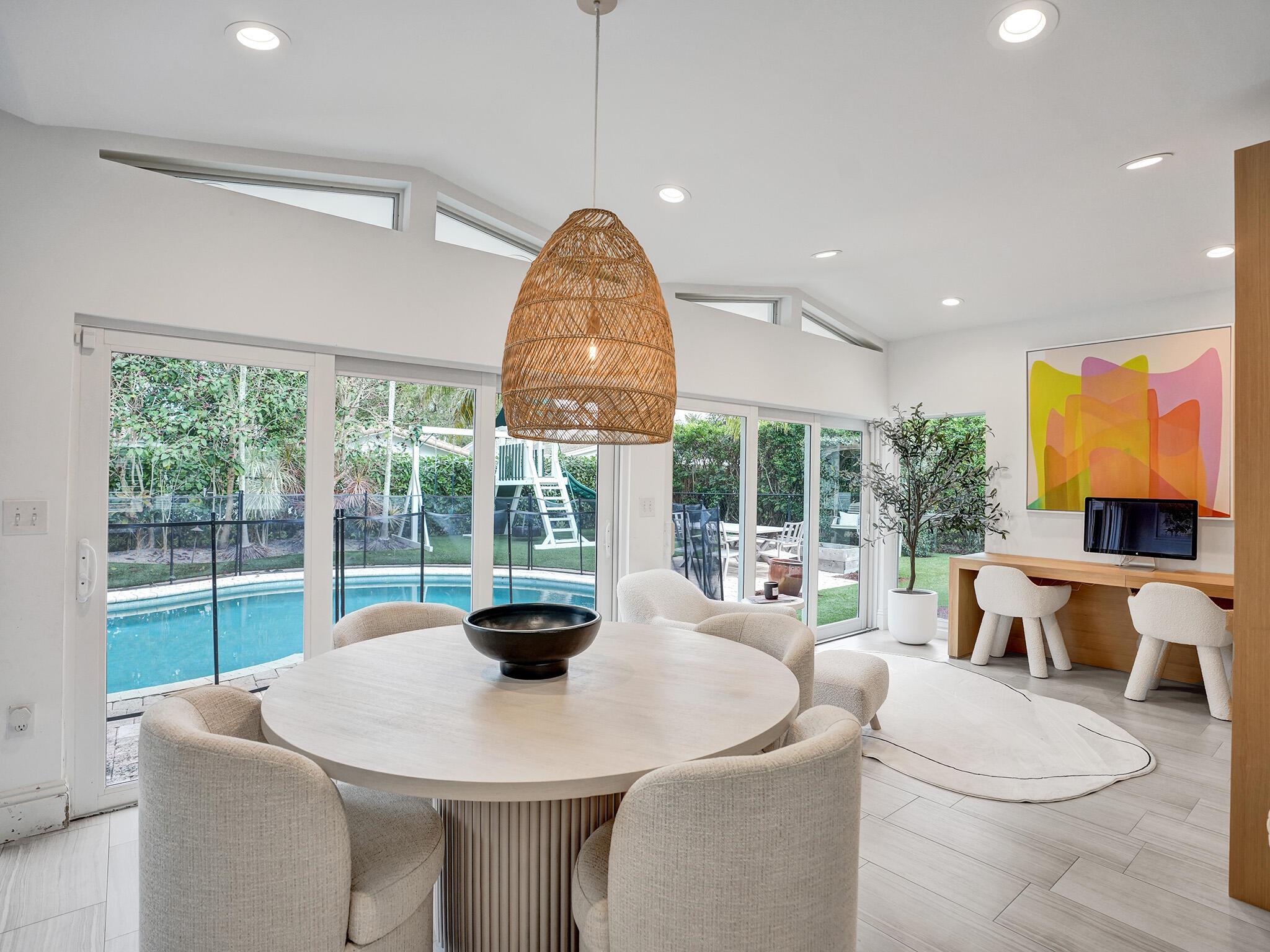 Step inside this oasis & notice the unique architectural design details. This home has been completely renovated from top (new tile roof 2022) to beautiful tile floors throughout, 3 full baths, large bedrooms with custom closets, & beautiful office space with tons of storage. The open floor plan is multi-functional & the kitchen is the hub of the home. Interior laundry room w/storage, 1 car garage w/newly coated floor & storage solution to maximize space (currently used as gym). The new front door, freshly painted exterior, & paver/circular drive make this home inviting. All impact windows & doors, 2 a/c units, alarm system & fully fenced yard. Freeform pool w/self cleaner & removable child safety fence. Turf in back & side yard, auto sprinklers for adda(tm)l landscape & paver patios