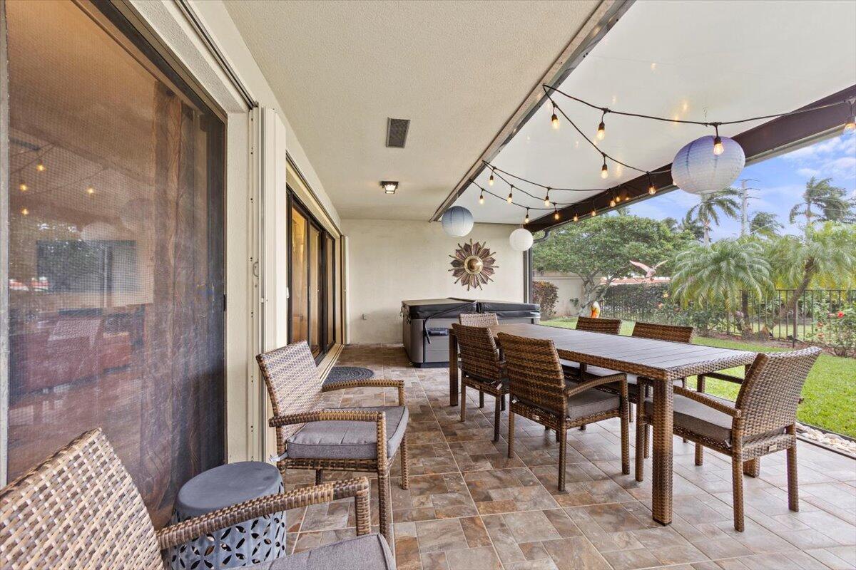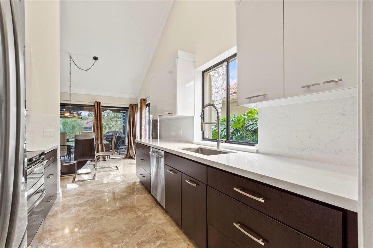 Welcome to this beautiful updated home with new kitchen and newer bathrooms. This house has a great lake view that you can see from this new panoramic screened lanai. This three bedrooms, 2 baths house is very spacious with very high ceilings and 3 large bedrooms. You will not feel closed in with the 8 patio doors in the common area. The remodeling includes: tile throughout, kitchen with quartz counter top and backsplash, air conditioner. The barrel roof is only around 8 years old. The community features a pool, tennis and pickleball. Come see this beauty as it will not last long, One of the best upgraded home in the community. Buyer to verify the measurements and all information.