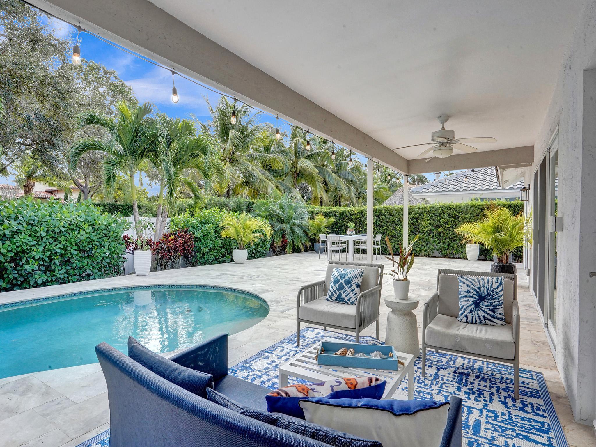 Incredible move-in ready East Boca home zoned Addison Mizner K-8 school. Enjoy South Florida living in the renovated backyard complete with a fantastic covered area offering the ability to extend your living space (just add a flat screen)with ultimate privacy. Freshly painted inside/out, meticulously maintained home has undergone massive updates: full impact windows/doors, custom sliding glass doors, roof w/upgraded wall straps, tankless water heater, pool heater, blown insulation & smart home features. Gorgeous master overlooking heated pool, walk in closet, plus a luxury ensuite w/cabana door. Super bright/airy LR, vaulted ceilings and a floor to ceiling wood burning fireplace! 2.5 miles to the beach, school bus service, bike to Sugar Sand/El Rio park. Sidewalks, underground power, A++