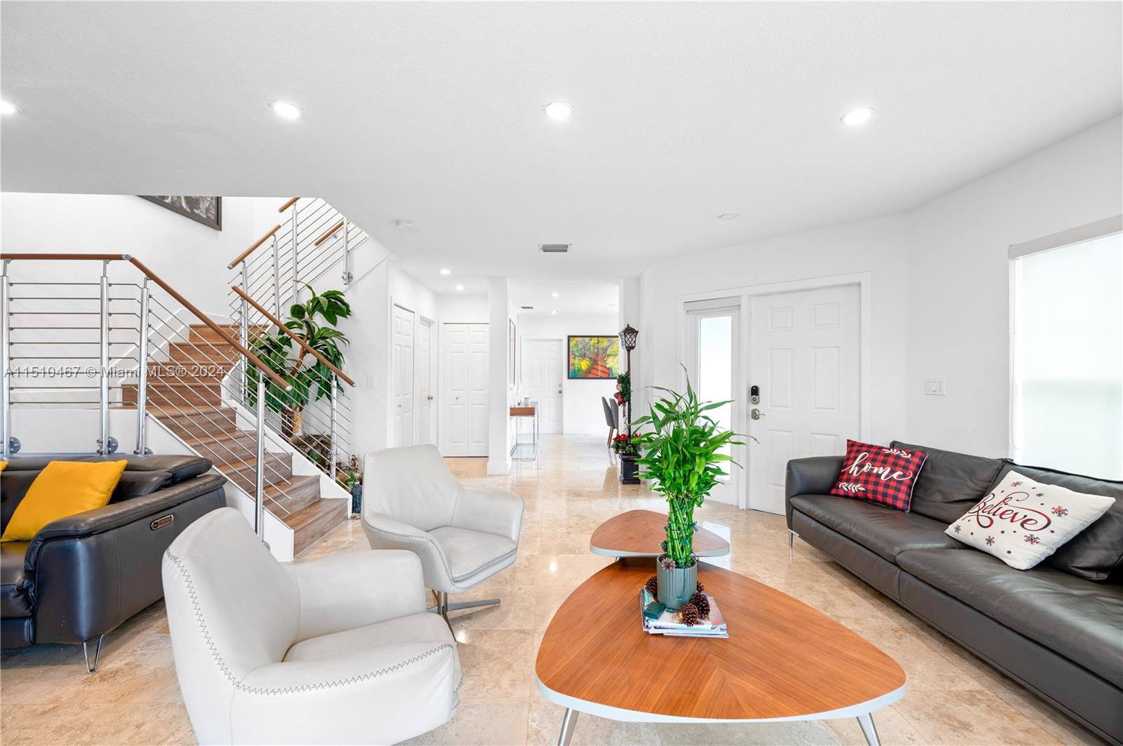 Beautiful 3 Bedroom 2.5 Bathroom 1 Car Garage Townhome in the Heart of Doral!! Completely remodeled with new kitchen with quartz countertop, stairs, marble flooring downstairs, wood flooring upstairs, bathrooms! Corner unit with no back neighbor provides wonderful privacy!! Smart Home with door, lights, garage & nest set up! Large patio great for entertaining and BBQs!! Small, private, quiet community is gated and has low HOA! 2 Car Driveway plus guest parking near by!! New Refrigerator and Dishwasher bought in December 2023. Roller Shades in all windows including motorized in Living and double roller in all bedrooms with blackout and screen roller shades. Reverse Osmosis water system and much more!