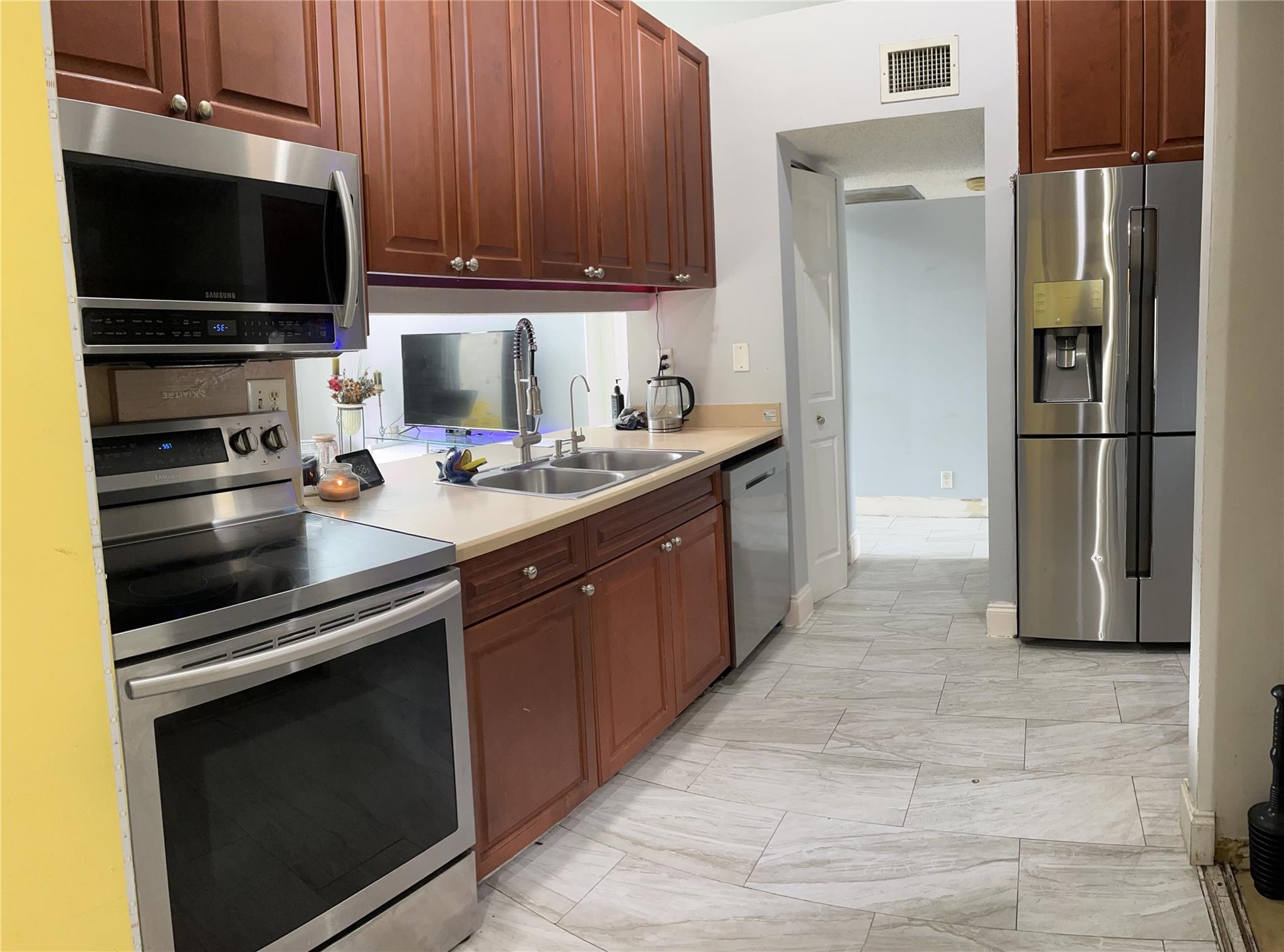 Bright and Spacious! Open Floor Plan with Vaulted Ceilings. 2-Bedroom 2-Bath Split Floor Plan. Large Covered Enclosed Patio with a Private Garden View off the living room AND a Fenced Open Patio off the Family Room with 5 fruit trees. Love the large Walk-In Closets in Both Bedrooms. Large Pantry. Nice Appliances. Solar Panels, and Upgraded Plumbing. LOW HOA at $135.00 a month! 2-Assigned Parking Spots Plus A Guest Spot Right In Front. Has an Exterior Storage Utility Room. All appliances, HVAC & water heater under 2-years old. Waterside Villas is an Ideal Location Tucked Away In A Quiet Community. All Ages & Large Pets Welcome. Corner unit, lot's of outdoor space, with a canal behind the property. Close to Major Highways and Sawgrass Mills Mall. 24 Hour notice to show.