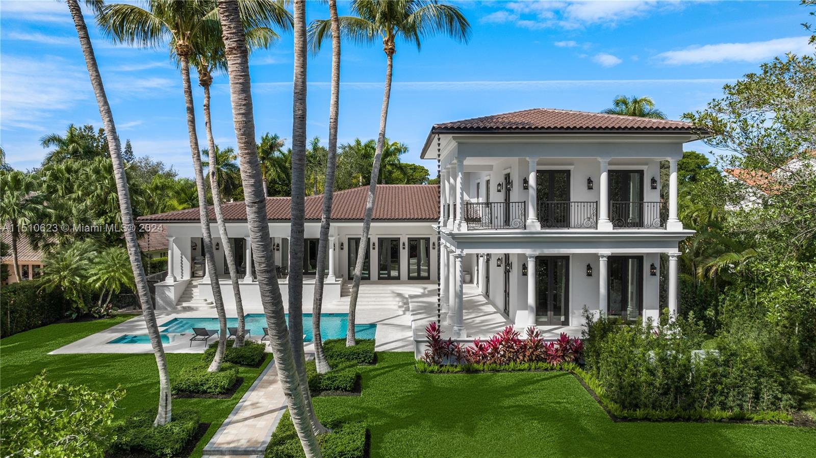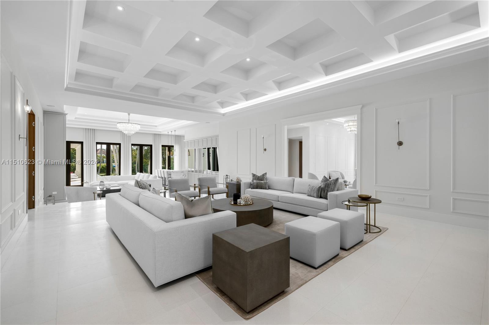 Experience unparalleled luxury! Situated in one of Coral Gables’ prestigious gated communities, this Cocoplum gem exemplifies waterfront living. Designed by TAI Architecture and Opus Design, this home offers 5 bedrooms, 6 full and 2 half bathrooms, spacious living and dining areas, and multiple family spaces. The gourmet kitchen features a gas stove, Miele and Viking appliances, and a roomy breakfast area. The second-floor primary suite boasts a sitting room, two large closets, and a spa-like bathroom. Outdoor amenities include covered terraces, an outdoor kitchen, a heated pool, and 126 feet of water frontage with a 55-foot dock. This residence perfectly merges sophisticated design, modern amenities, and an exceptional location for the ultimate in luxury living.