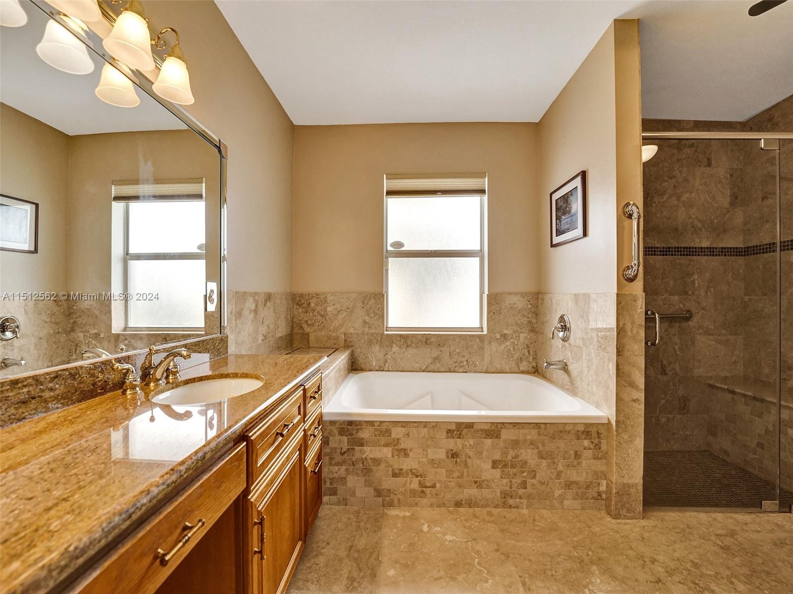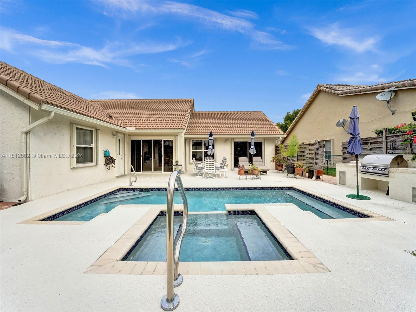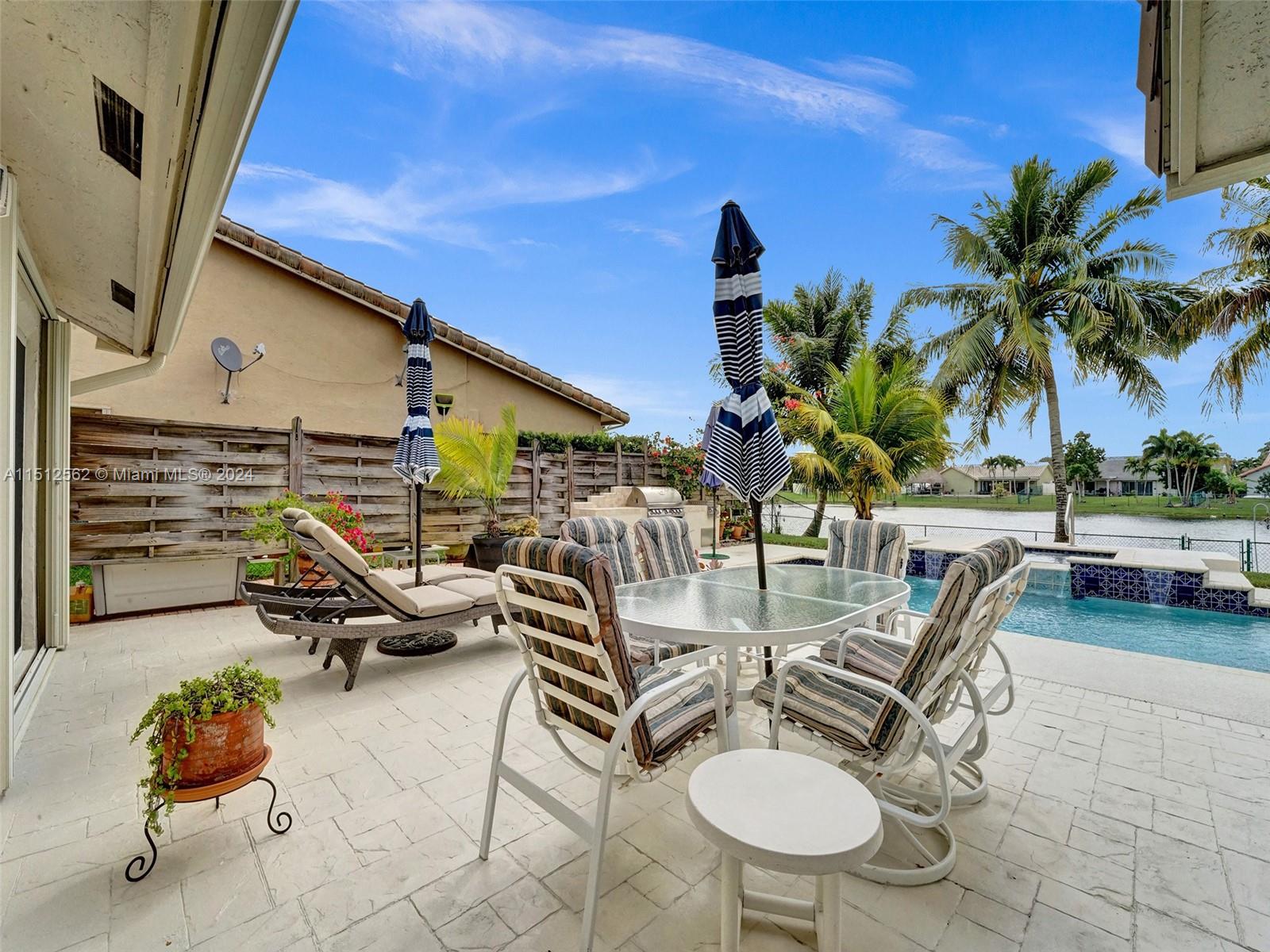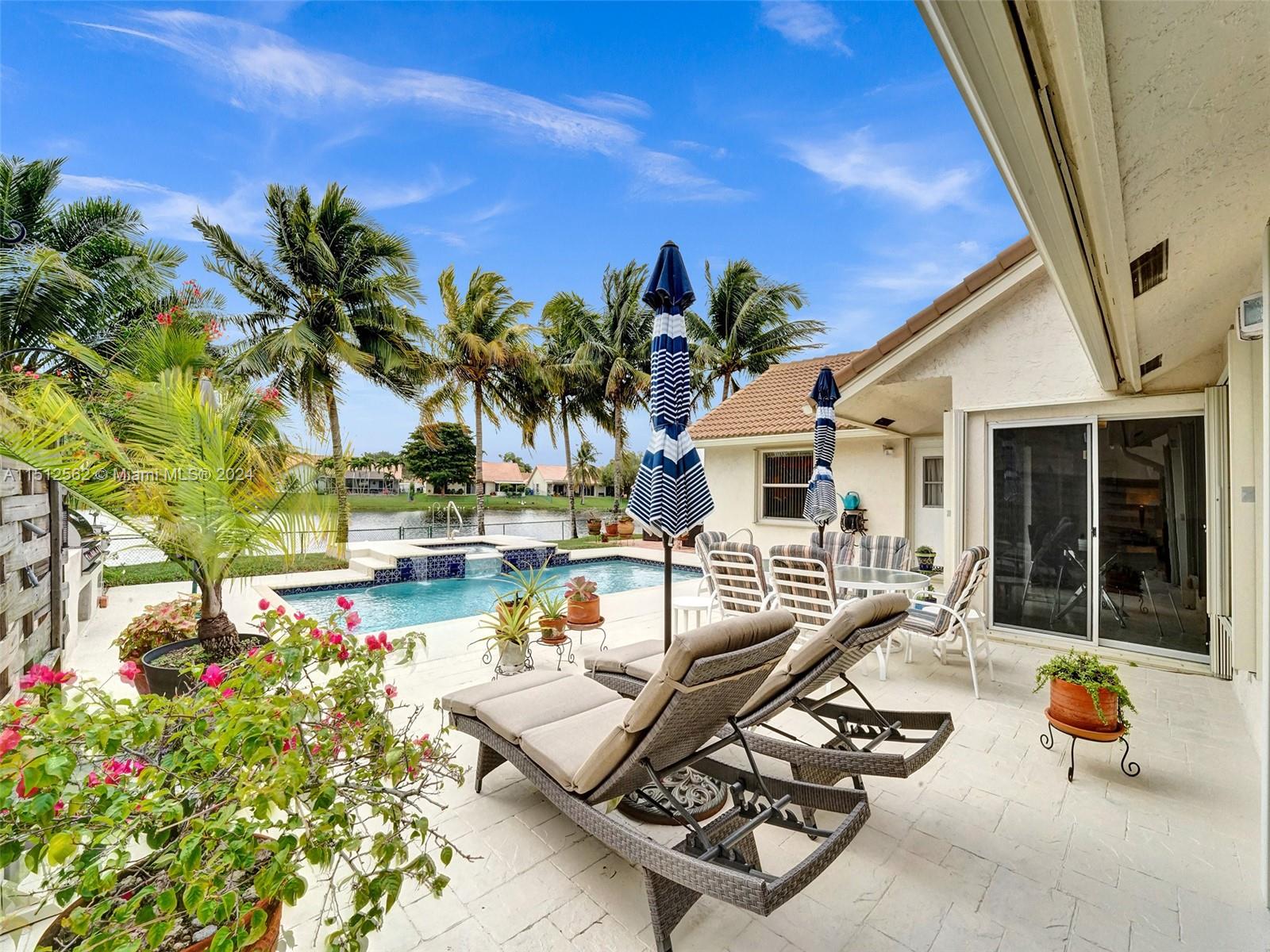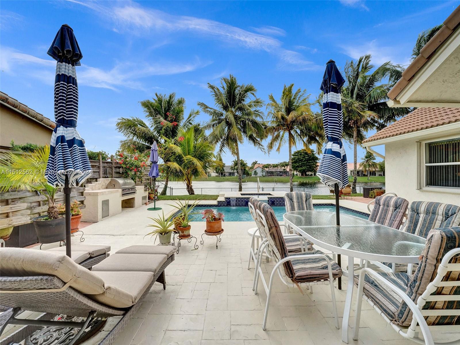 Look no further! This one story 4/2.5 Sapphire model has it all! Beautiful outdoor entertaining area features a HEATED POOL W/ SPA overlooking a SERENE LAKE, updated OUTDOOR BUILT-IN GRILL & cooking unit, privacy screens and a separate, quiet paver sitting area. Kitchen features SS GE PROFILE KITCHEN APPLIANCES (2021), wood cabinets w/GRANITE COUNTERS, pantry w/ PULL-OUT SHELVES, & new backsplash. Other recent updates: ROOF 2019, front door 2022, air handler 2021, pool heater, pump, filter, & valves 2017, garage door w/ progammable opener 2019, sprinkler pump, meter box, programmable pool control, closet organizers in all closets, kitchen/dining/entry way lighting, and so much more! *SEE BROKER'S REMARKS*