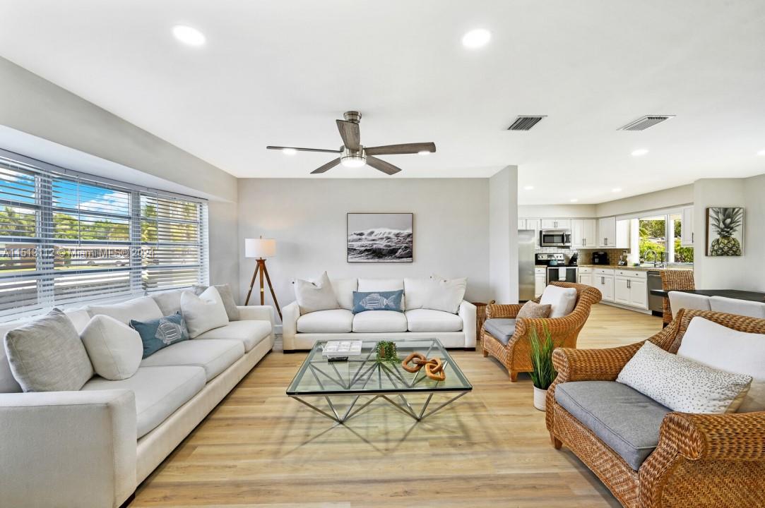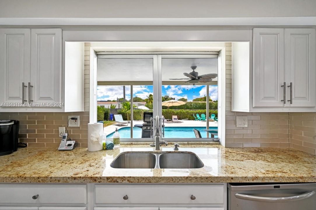 The interior designer imagined a Modern Coastal Open Floor Plan when fully renovating this Immaculate 4-bedroom 2 full bath Pool Home! Luxury vinyl planking throughout the home. Interior and Exterior of the home is freshly painted. Recessed lighting throughout the home. You will love the remodeled kitchen which boasts stainless-steel appliances, granite countertops and window overlooking the pool. Guest full bathroom is fully renovated “Modern Coastal style” with pool access. The Master bedroom Suite has a walk-in closet and fully renovated luxury spa bathroom. New HVAC/AC system, Roof replaced in 2015. The backyard Oasis is fully fenced in with a new heated large pool and travertine decking. Personal beach-sand area with custom beach fire pit. Large outdoor covered area.