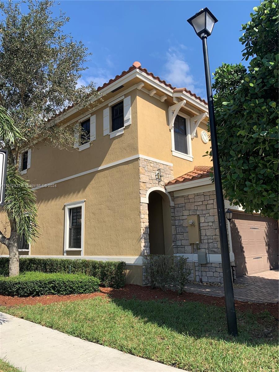 Come and see this awesome comfortable corner townhouse in a quite community Tow Parc at Miralago in City of Parkland, located close to (A) rated Schools, 24hour guard gate and great neighborhood. Large driveway, 2 cars garage, nice entry, great living room an dinning room all together,3 bedrooms,2.5 baths, tile and carpeted floor, all impact windows and doors with blinds, renewed kitchen, Stainless Steal appliances, fenced backyard . Enjoy more two resort style club house, Miralago and Cascata !!! Byer pay 4k only one time for the capital contribution. It is vacant , easy to show!!!
