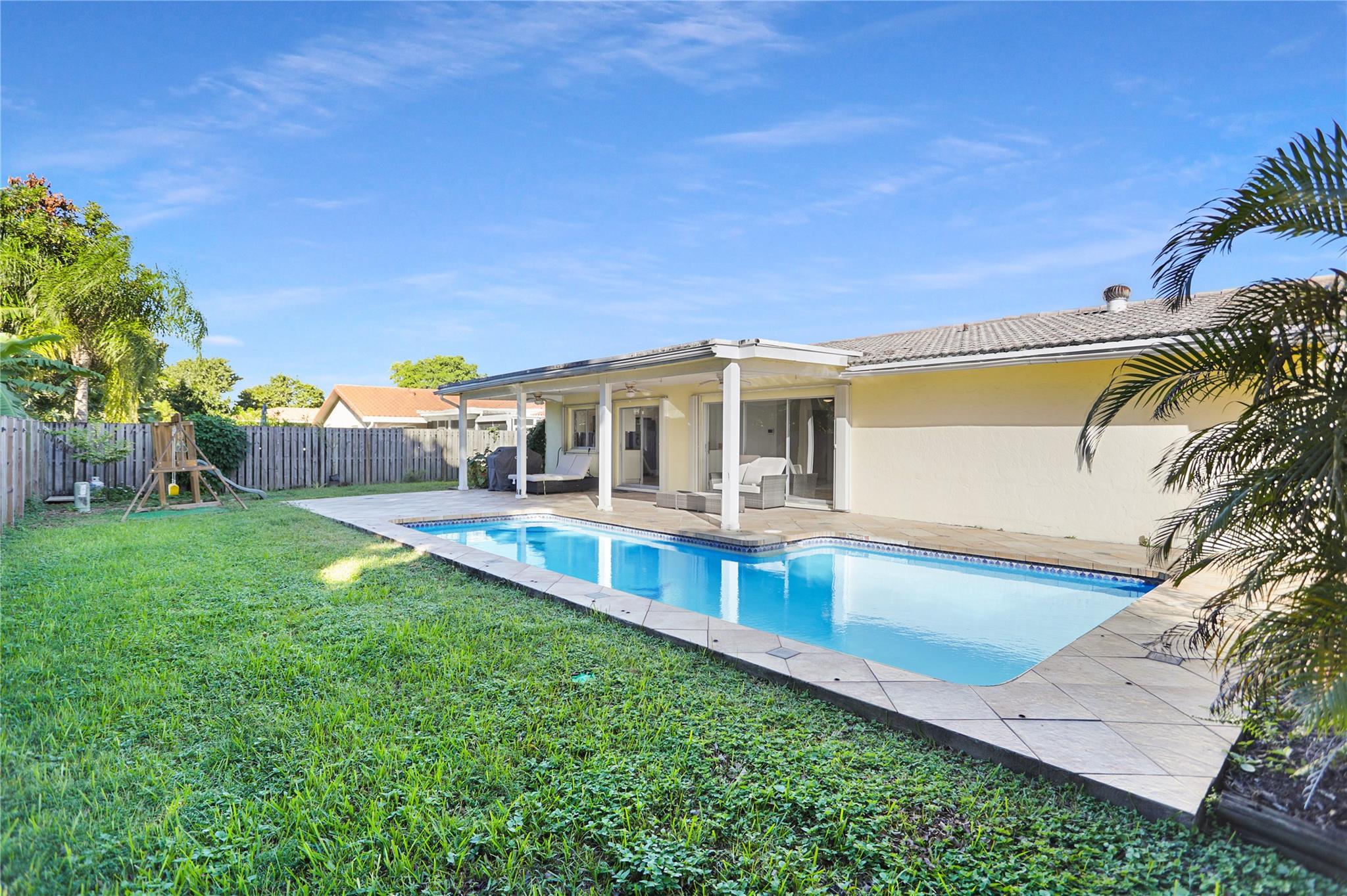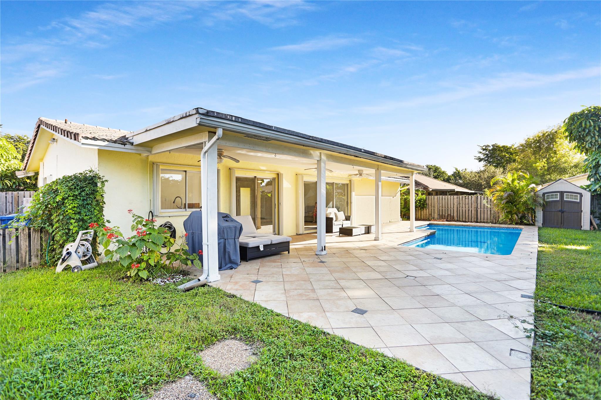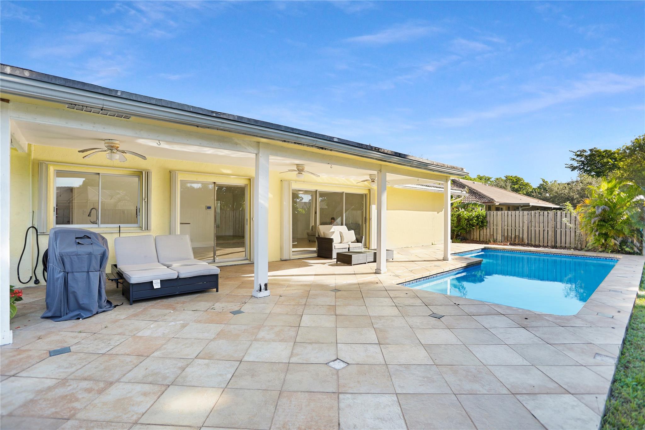 Come and check out this incredible home located in the heart of Coral Springs, near excellent schools and parks, and within a 5-minute drive to the most popular local shops, restaurants, and Coral Springs Mall. No HOA! 3-bedroom, 2-bathroom one-story home with spacious and private backyard with pool. Den/Office attached to living room offers extra space and utility. Kitchen has updated stainless steel appliances. Washer and Dryer included. Has porcelain tile flooring and crown molding lines throughout (no popcorn ceilings). Fans with central controls. Updated bathrooms with double sink cabinetry and white stone countertop in master bath. Spacious patio overlooking a grand yard and pool perfect for family time and gatherings of any size.