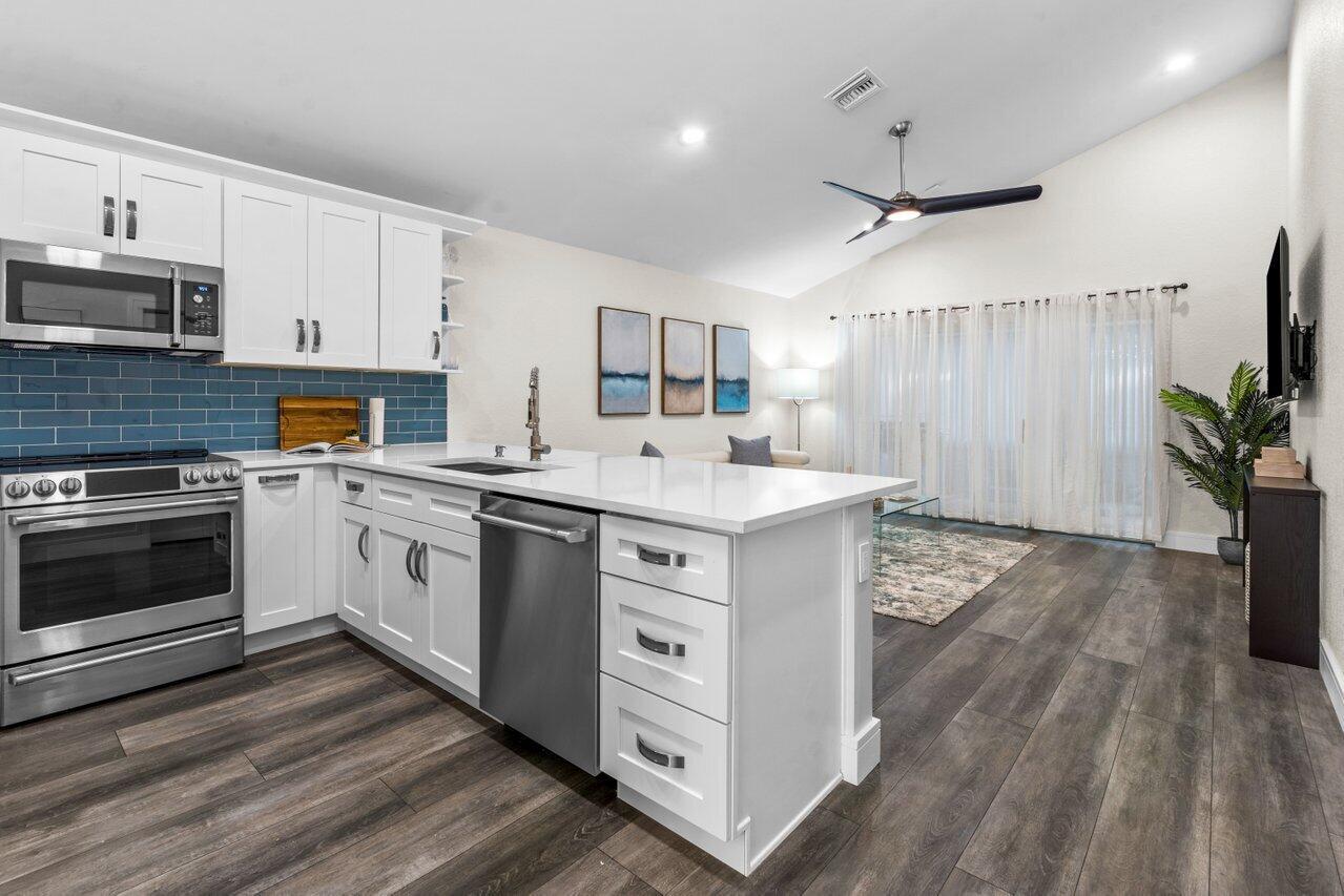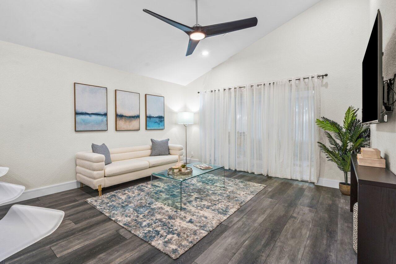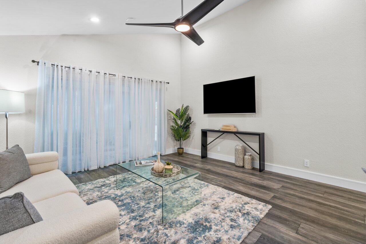 NEW NEW NEW!!!! Everything is BRAND NEW in this beautiful 3 bedroom 2 bath COMPLETELY REMODELED home! NEWLY painted interior and exterior. OPEN FLOORPLAN AND KITCHEN WITH QUARTZ COUNTERTOPS. LARGE FORMAT PORCELAIN TILE in Master Bathroom. DOUBLE SINKS with infinity drain. Multifunctional vent, nightlight and Bluetooth capability speaker included. Barndoor and walk-in closet in Master Bedroom. Water Heater 2020. Updated thermostat and ALL NEW APPLIANCES. Metal Hurricane Panels. Large enclosed patio with fenced in wrap around yard for your pet to play and exercise. Walk out door on fence & you are steps away from the pool. Washer/Dryer in unit, Amenities include: 2 pools, clubhouse, tennis, basketball and 3 playgrounds. A+ schools. DID I SAY EVERYTHING IS BRAND NEW? COME CHECK IT OUT