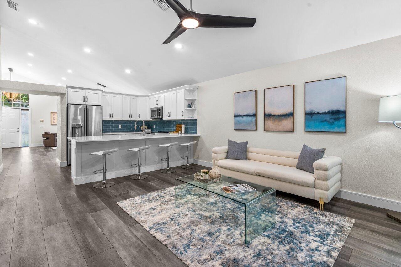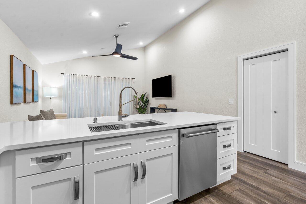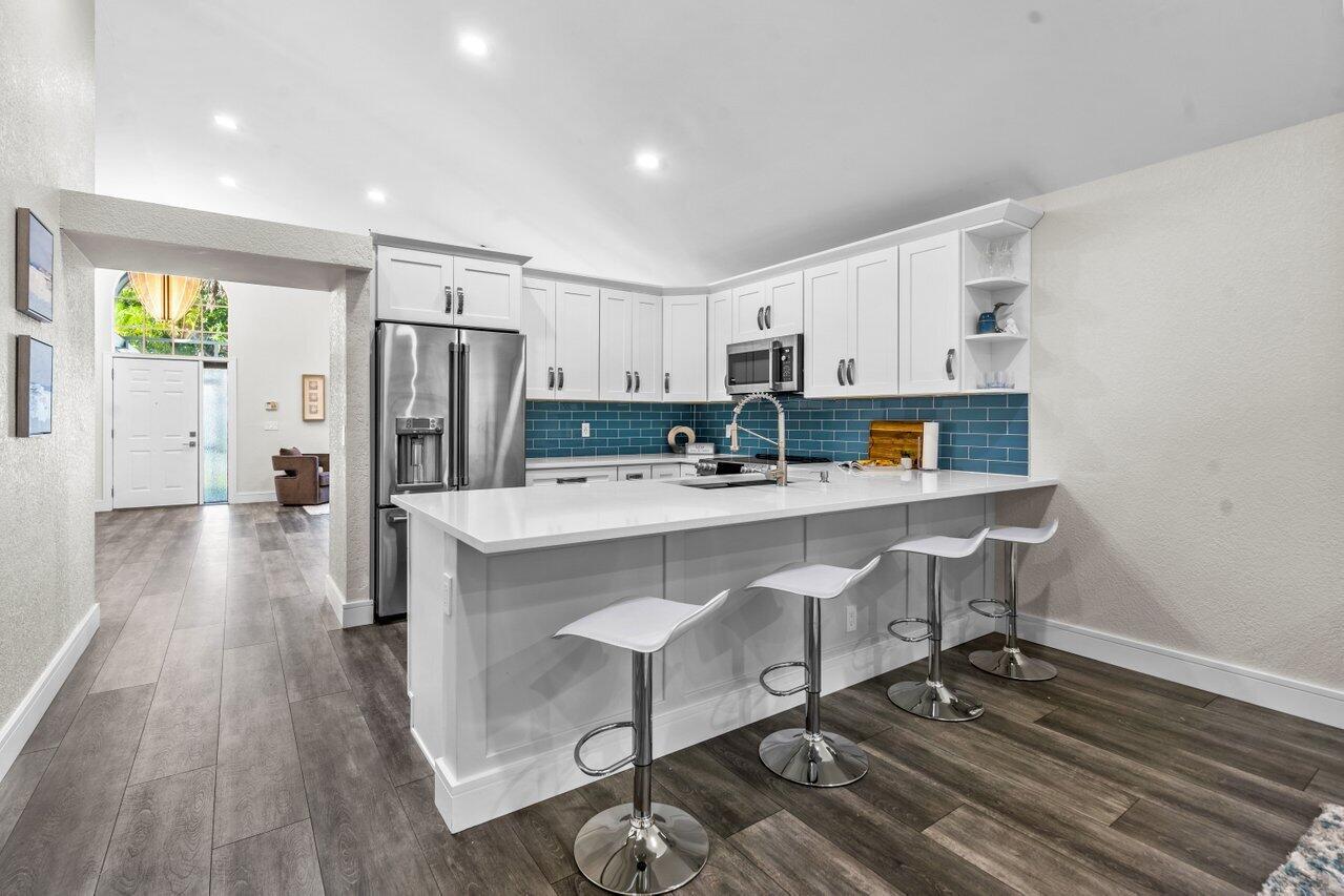 NEW NEW NEW!!!! Everything is BRAND NEW in this beautiful 3 bedroom 2 bath COMPLETELY REMODELED home! NEWLY painted interior and exterior. OPEN FLOORPLAN AND KITCHEN WITH QUARTZ COUNTERTOPS. LARGE FORMAT PORCELAIN TILE in Master Bathroom. DOUBLE SINKS with infinity drain. Multifunctional vent, nightlight and Bluetooth capability speaker included. Barndoor and walk-in closet in Master Bedroom. Water Heater 2020. Updated thermostat and ALL NEW APPLIANCES. Metal Hurricane Panels. Large enclosed patio with fenced in wrap around yard for your pet to play and exercise. Walk out door on fence & you are steps away from the pool. Washer/Dryer in unit, Amenities include: 2 pools, clubhouse, tennis, basketball and 3 playgrounds. A+ schools. DID I SAY EVERYTHING IS BRAND NEW? COME CHECK IT OUT