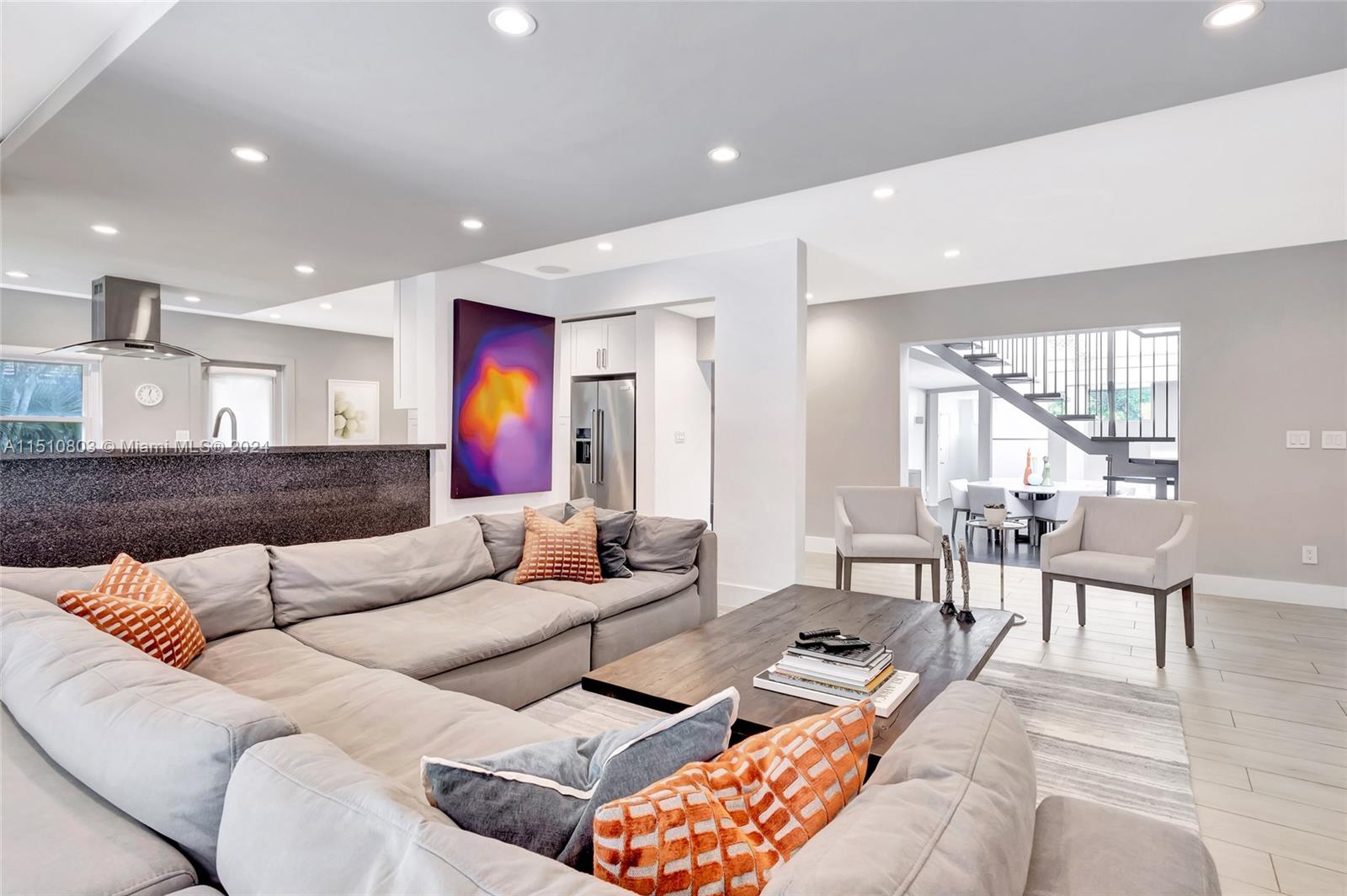 Welcome to this exquisitely designed home, located in coveted Miami Shores golf club community. This home offers 4 bedrooms, 4 bathrooms, on an expansive 12,900 sq. ft., steps away from Biscayne Bay. Recent renovations have seamlessly integrated the living room with the beautifully updated contemporary kitchen, overlooking the sunroom, outdoor patio, and pool. Boasting open living spaces, a refined saltwater pool and spa, meticulously landscaped gardens, and impact-resistant windows and doors. Additionally, the inclusion of a generator and natural gas amplifies the comfort and convenience of the home. A generously sized lot provides ample space for outdoor entertaining and tranquil relaxation.