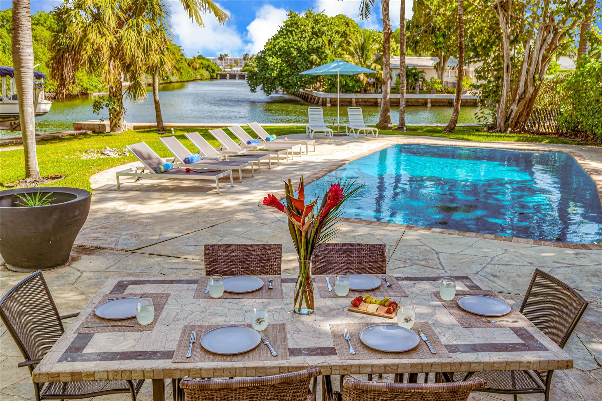 Welcome home to this desirable 125 foot waterfront property. Pool recently reconstructed and resurfaced. New impact windows, New tile roof. Boat lift. House is on Airbnb and can be purchased fully furnished. Come home and enjoy the tranquility of your wonderful backyard!
