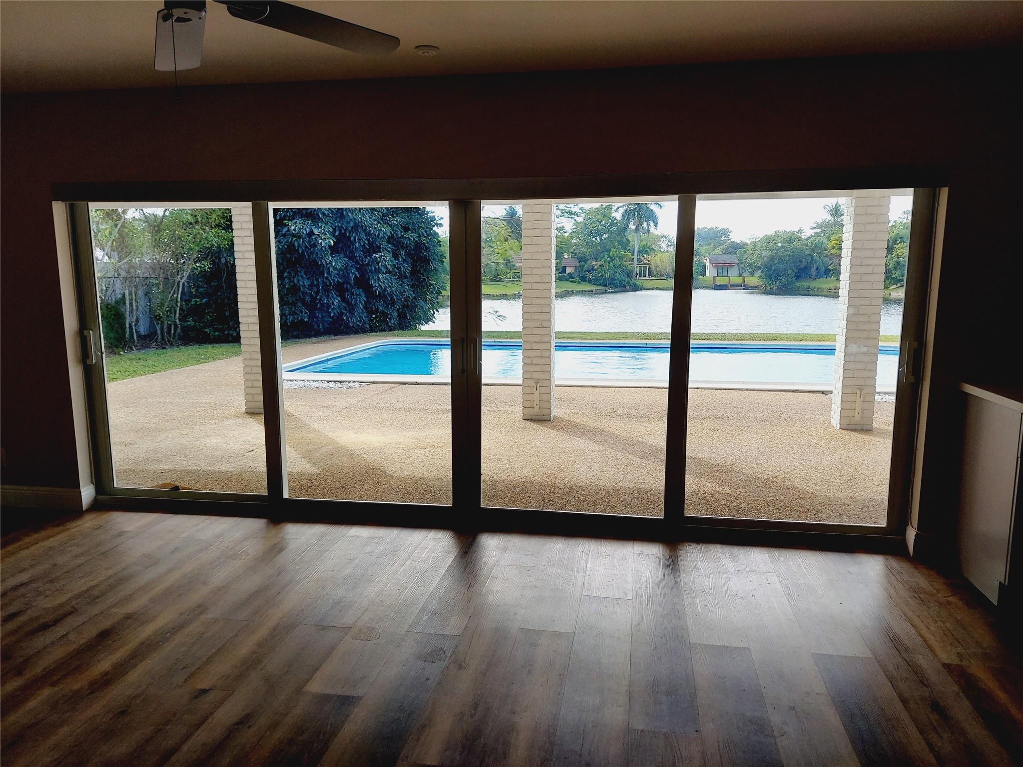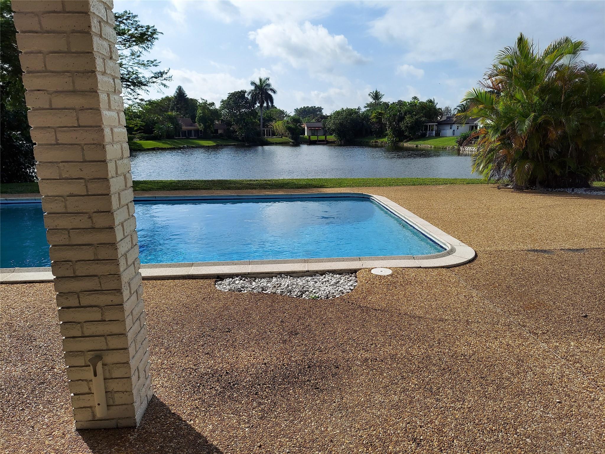 WAKE UP TO A SPECTACULAR VIEW OF THE LAKE IN A 4 BEDROOM, 3 BATH SINGLE STORY HOME LOCATED IN JACARANDA COUNTRY CLUB, A GOLFER'S PARADISE. NO MANDATORY GOLF MEMBERSHIP. ANNUAL HOA IS UNDER $500/YEAR. OPEN FLOOR PLAN, 2 CAR GARAGE WITH A 2021 INSTALLED HURRICANE RATED DOOR, LARGE CIRCULAR DRIVEWAY, GATED BACKYARD WITH A FABULOUS POOL (DIAMOND BRITE AND TILED IN 2021) TWO 5 TON AC UNITS (REPLACED IN 2021) NEW KITCHEN CABINETS AND COUNTERS (JAN 2024), TWO WATER HEATERS REPLACED 2021. HURRICANE RATED 10' SLIDING DOORS AND KITCHEN WINDOWS OVERLOOKING THE LAKE (2021). WATERPROOF VINYL THROUGHOUT (INSTALLED IN 2021-2023)