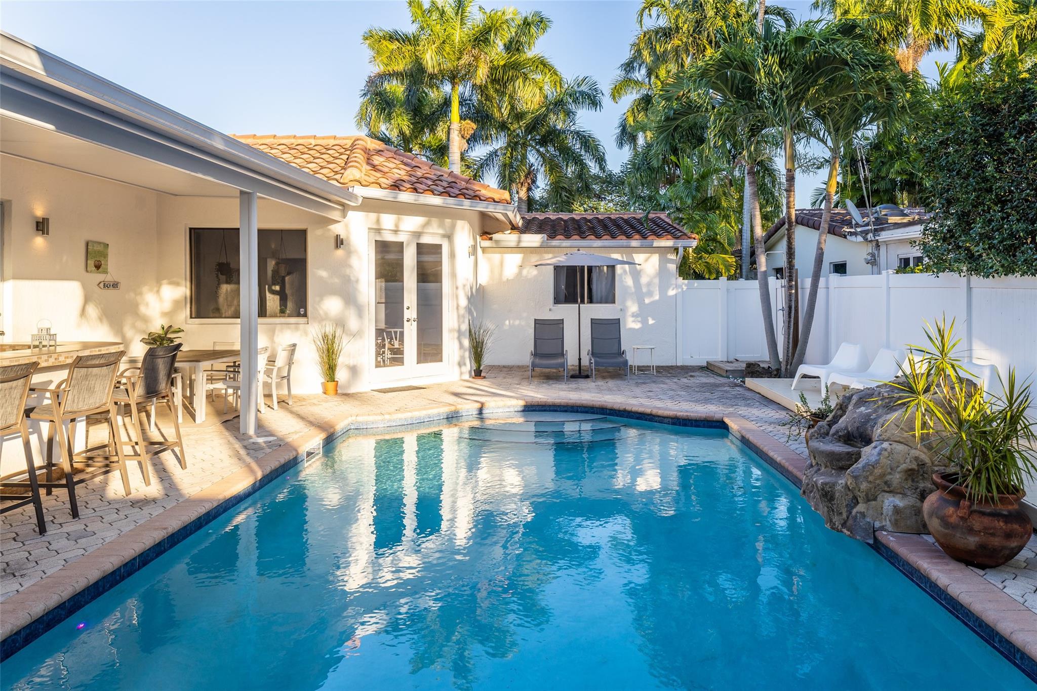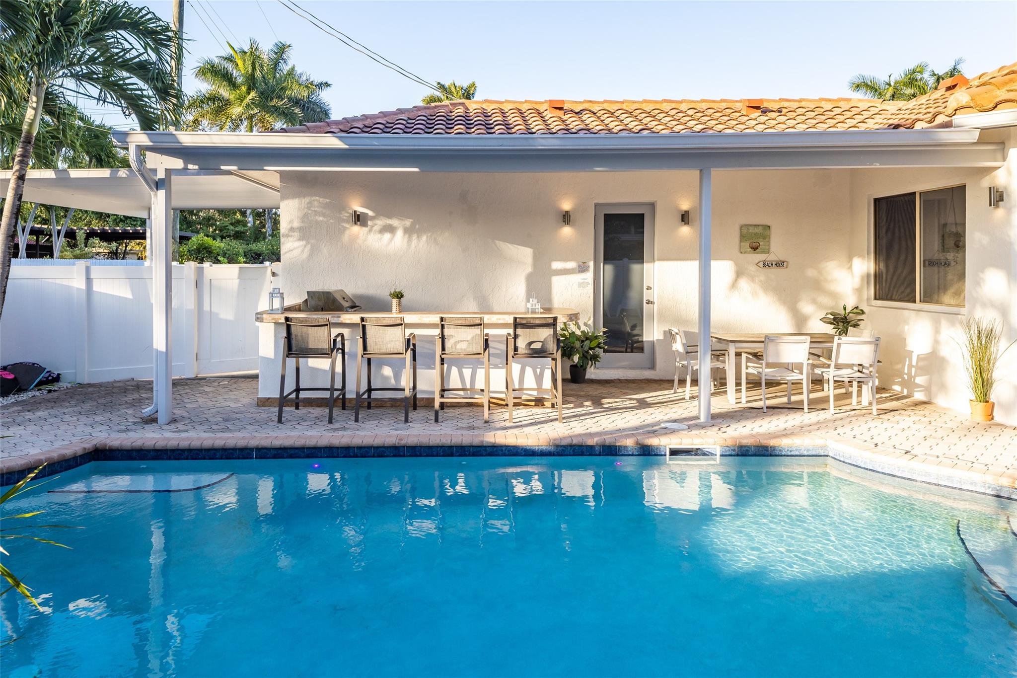 Coastal living beckons at this delightful pool home in East Hollywood. Boasting a touch of Scandinavian elegance with its light and clean lines, this space is perfect for you and your family. The home presents an open concept, seamlessly leading from the living area to the fabulous outdoor patio. Discover an ideal entertainment space complete with a built-in summer kitchen and a heated pool. Indoors, a split bedroom floor plan highlights a generously sized master bedroom. Nestled on a serene street, this residence offers tranquility within walking distance to golf and mere minutes from the stunning beach and boardwalk. There is a a garage perfect for storing bikes etc.