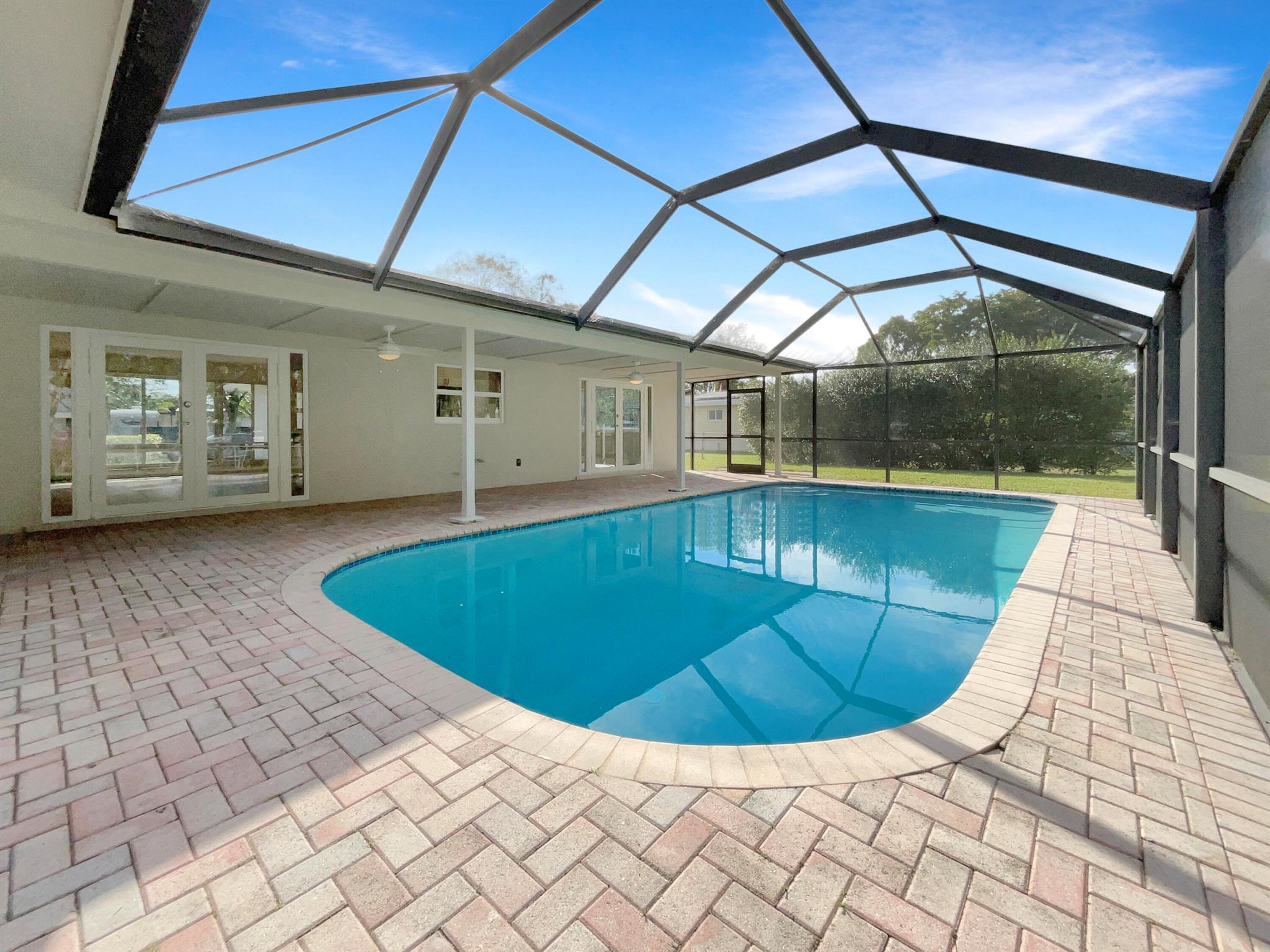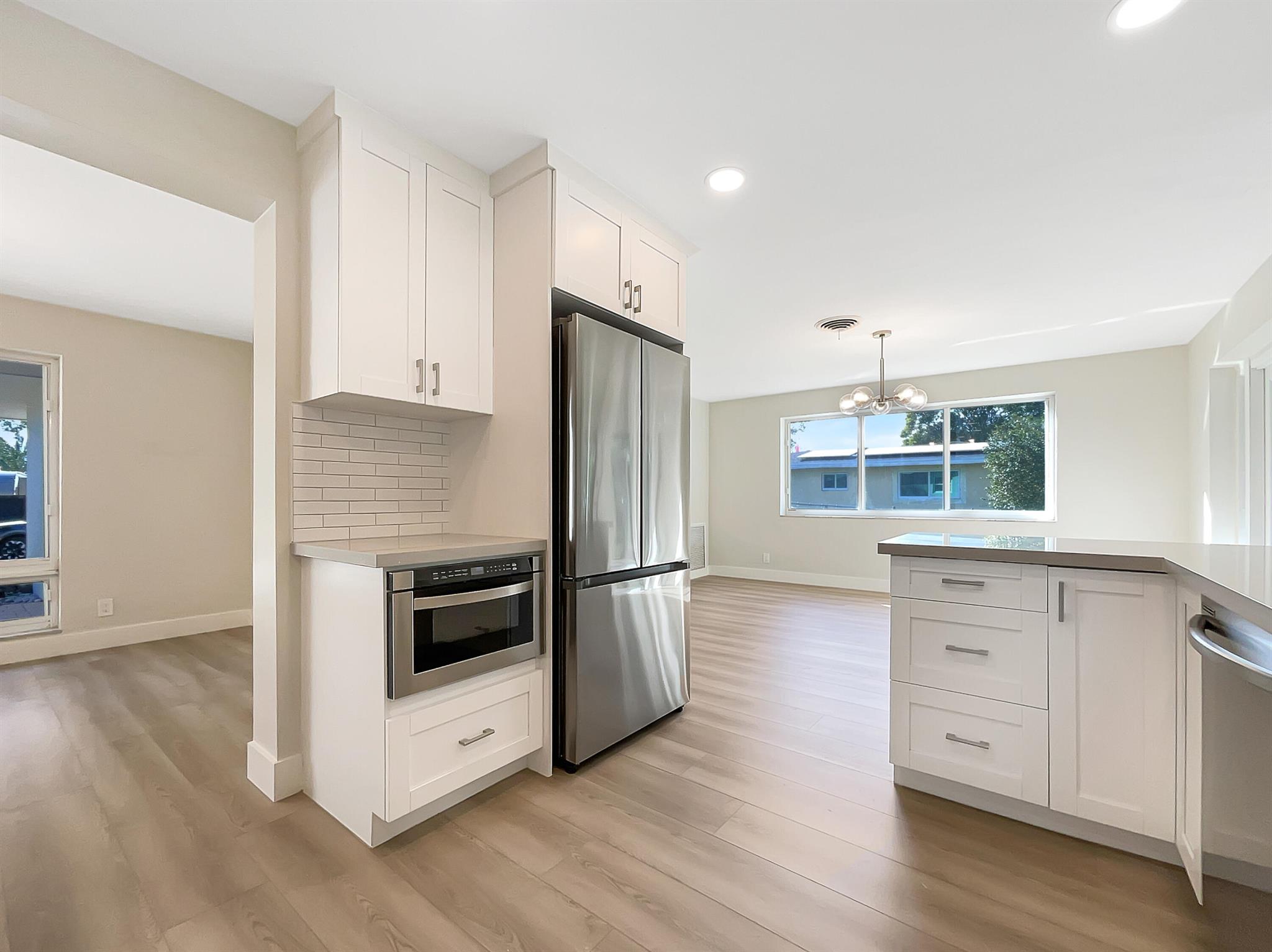 Welcome to this beautifully remodeled property that offers an exquisite blend of style and comfort. Step inside and be greeted by a natural color palette. The remodeled kitchen boasts a nice backsplash, complementing the modern shaker cabinetry and stainless steel appliances. The master bedroom features a walk-in closet, providing ample storage space. Other rooms offer flexible living space to suit your needs. The primary bathroom includes a custom tile shower and good under sink storage. Outside, the fenced-in backyard offers privacy and security, while the private in-ground pool invites you to unwind and enjoy the sun. Relax in the covered sitting area, perfect for entertaining. This home also benefits from fresh interior and exterior paint.Don't miss out on the opportunity.