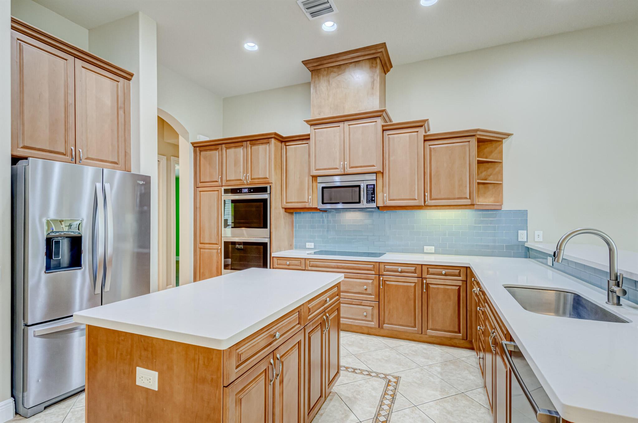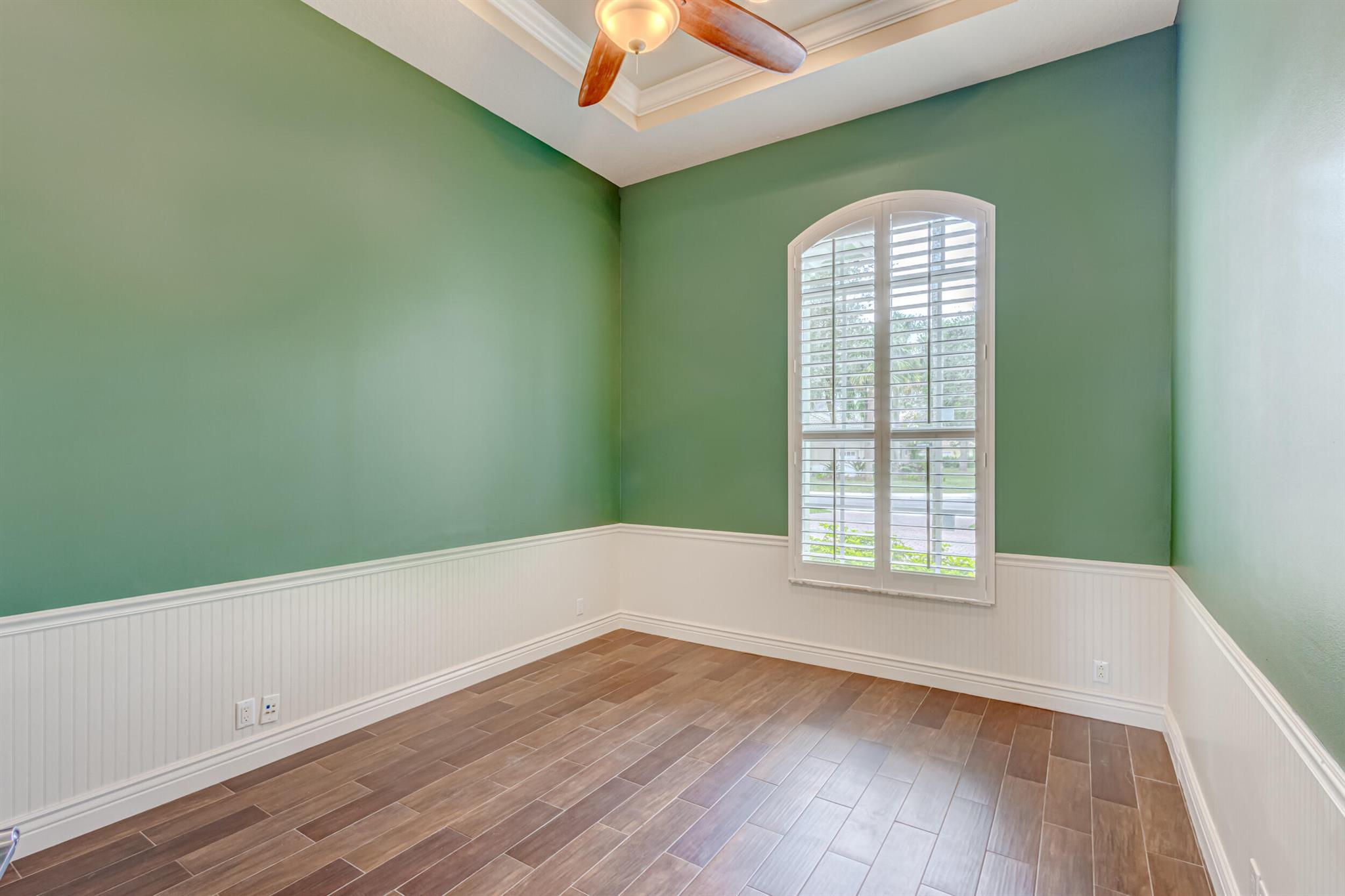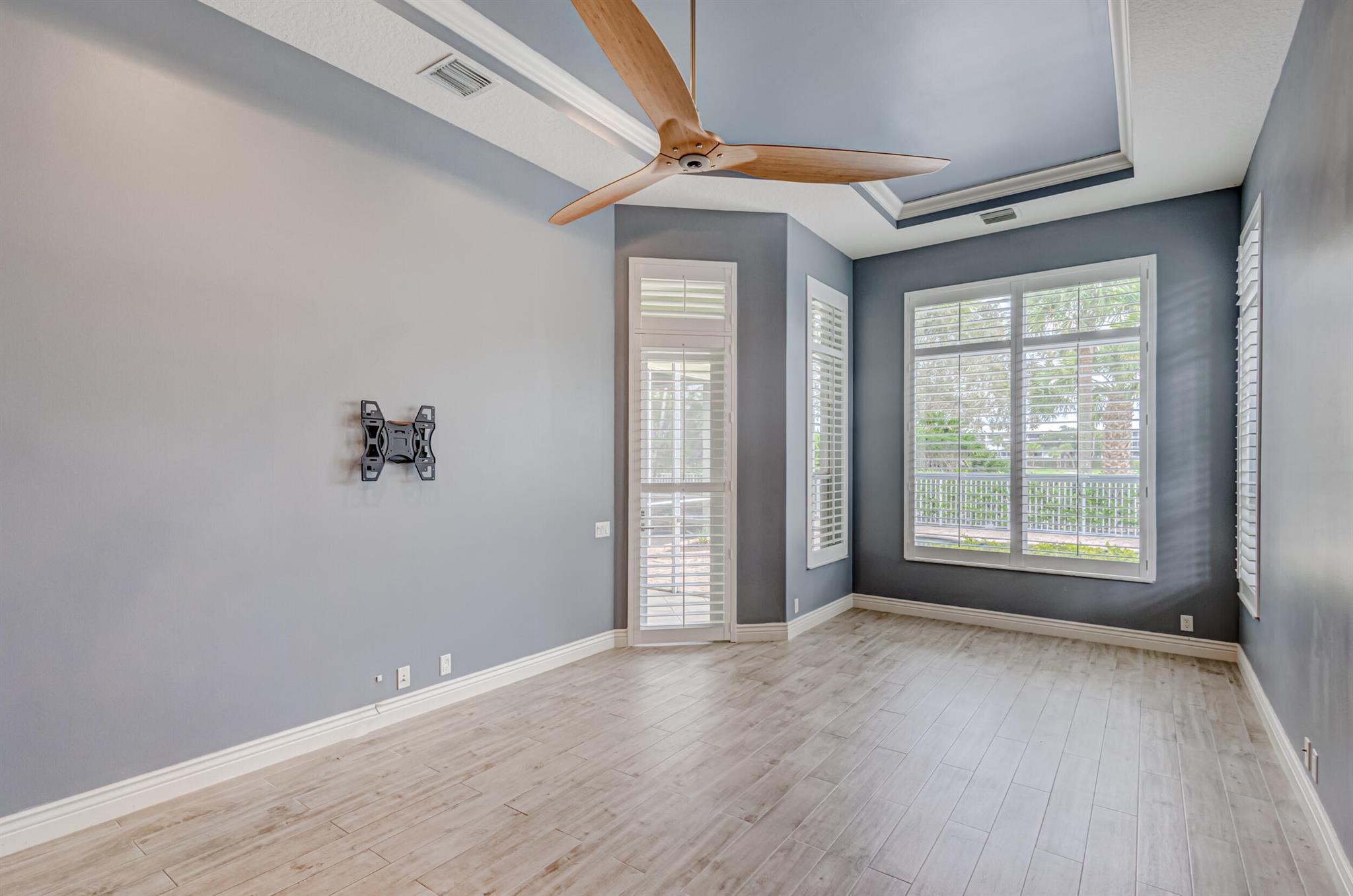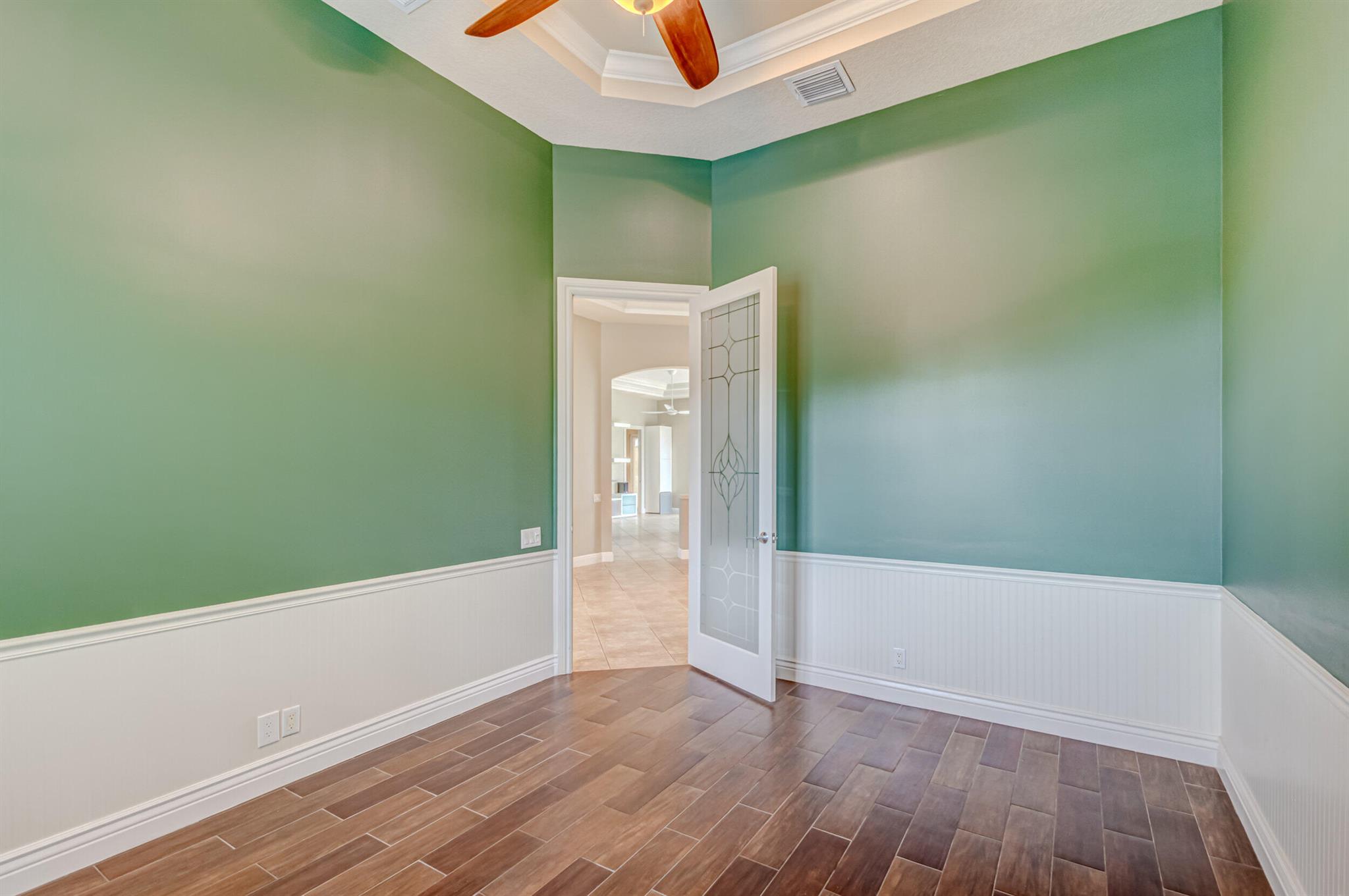 Impeccably maintained pool home features 4 Bedrooms + office, 3 baths, 3 car garage, oversized driveway, over 2,800 SF living area privately nestled on SENSATIONAL .36 ac golf course lot. This sprawling single story residence is fully fenced and surrounded by manicured landscaping, exterior lighting, covered and screened patio overlooking radiant pool, (2) brand new A/C systems, and all impact glass throughout. This beautiful home is awash with sunlight and natural hues, soaring ceilings, expansive living areas including formal dining and living rooms with custom ceiling detail, tile floors (no carpet!), Plantation shutters and LED lighting. Impressive gourmet kitchen equipped with an abundance of custom cabinetry, under cabinet lighting, Calcutta Quartz countertops with