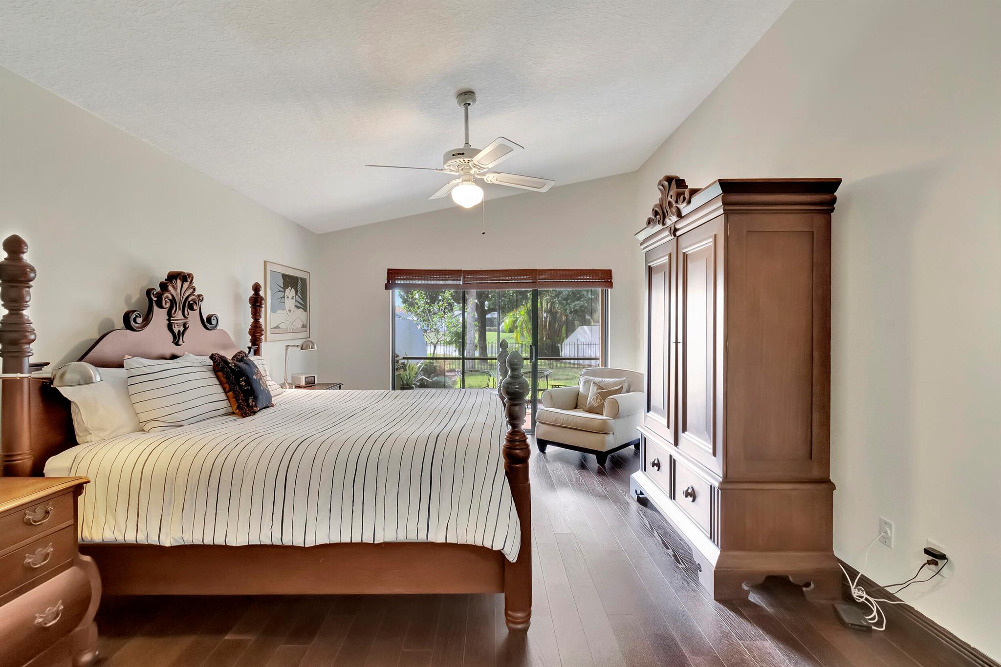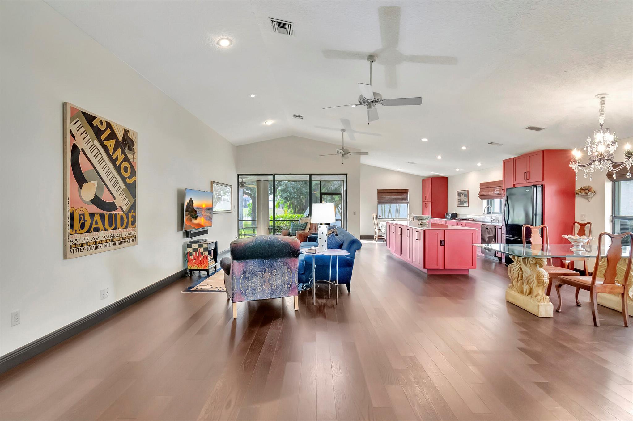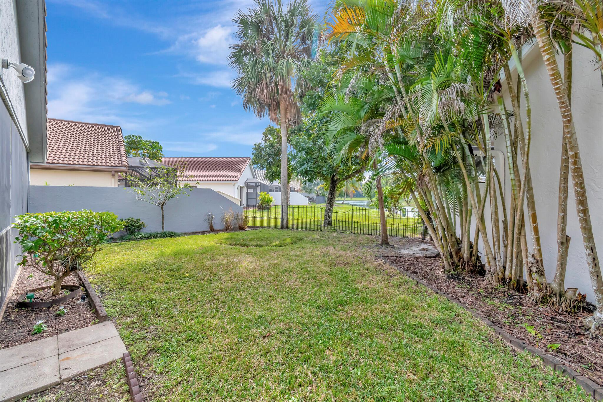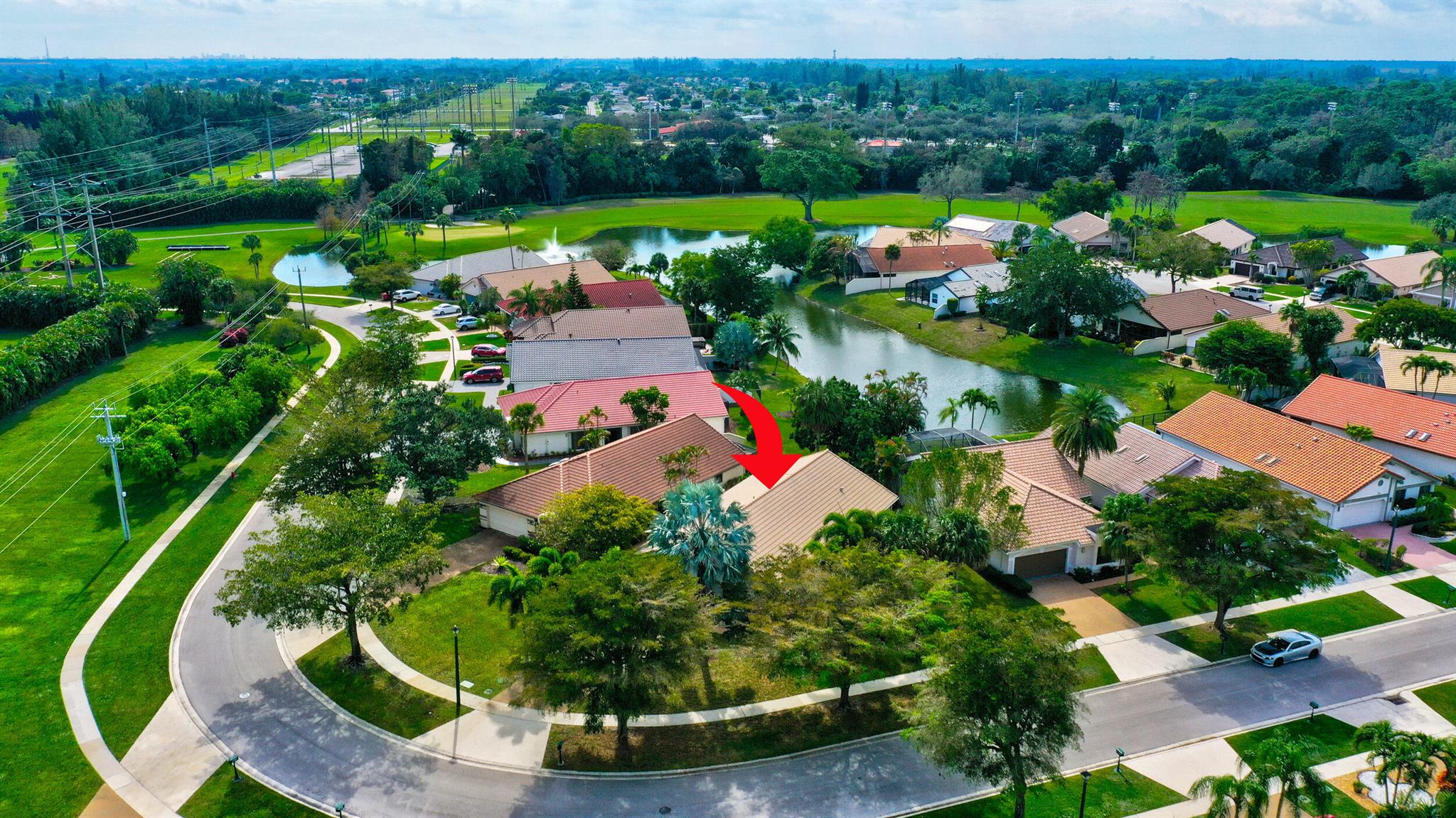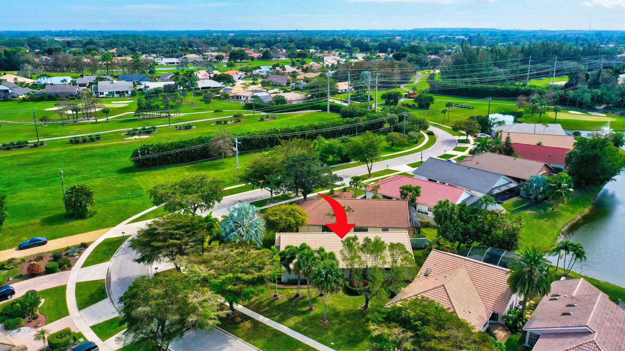 **This house conveys a mandatory golf membership with dues and fees. There is no social membership available.**. This is a very private home located in a cul de sac street with minimum traffic and almost 10,000 sft of land plus a beautiful lake view that pictures do not show as it is! Room for a pool and a rendering is been made by a pool company. The kitchen is equipped with a gas stove and steel counter and island top like in the restaurants . High ceiling, and a wood engineered flooring complete the features of this home where you can move in without having any renovation to handle. 3 bedrooms , 2 baths, a 2 car garage and hurricane shutters on all windows make this house perfect all year around including holidays family reunions! 6 cars can be parked on the driveway at Thanksgiving!