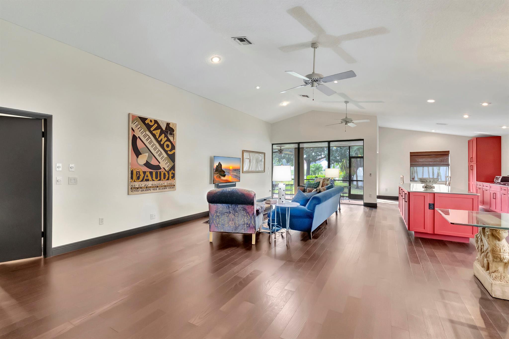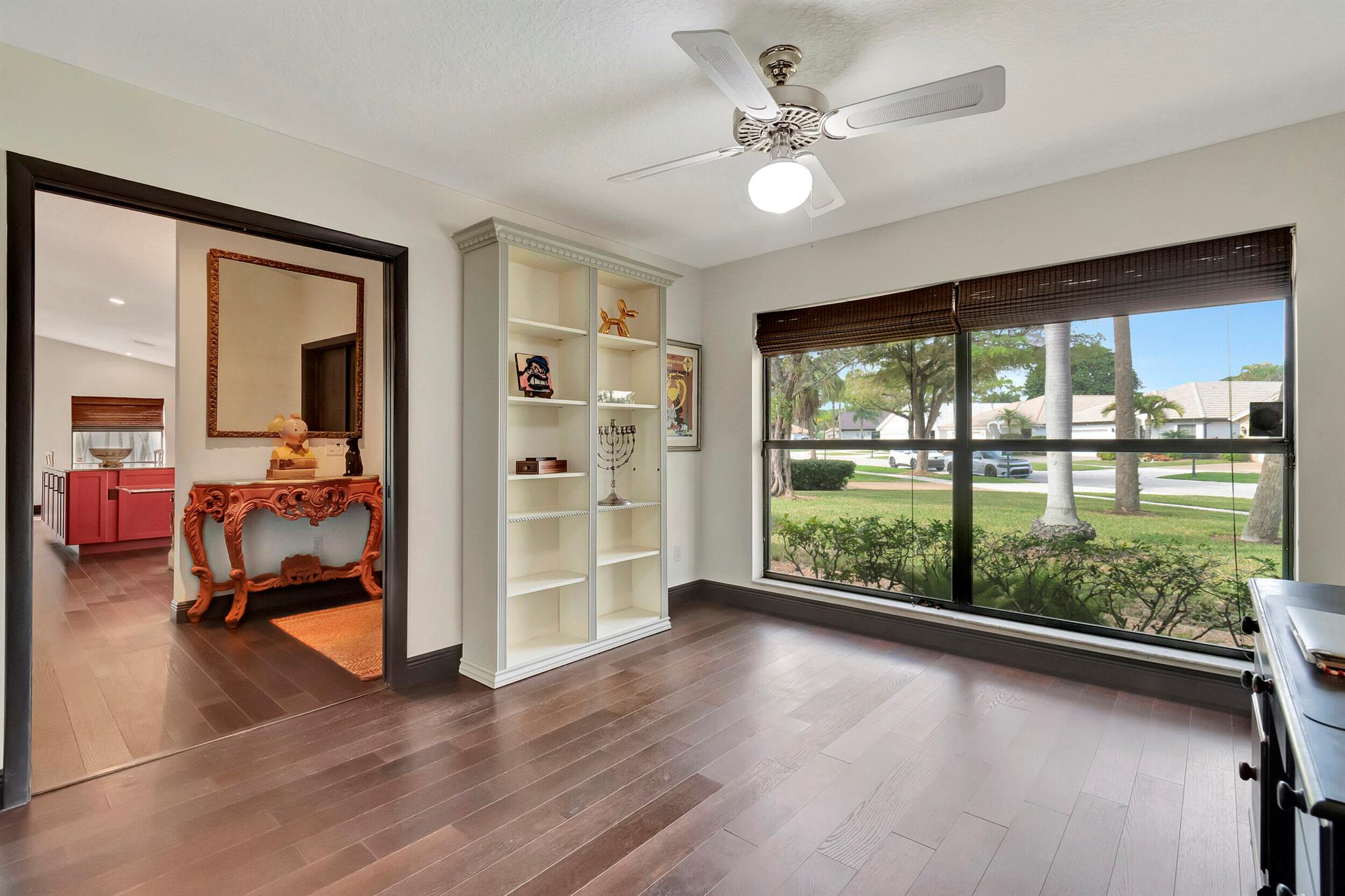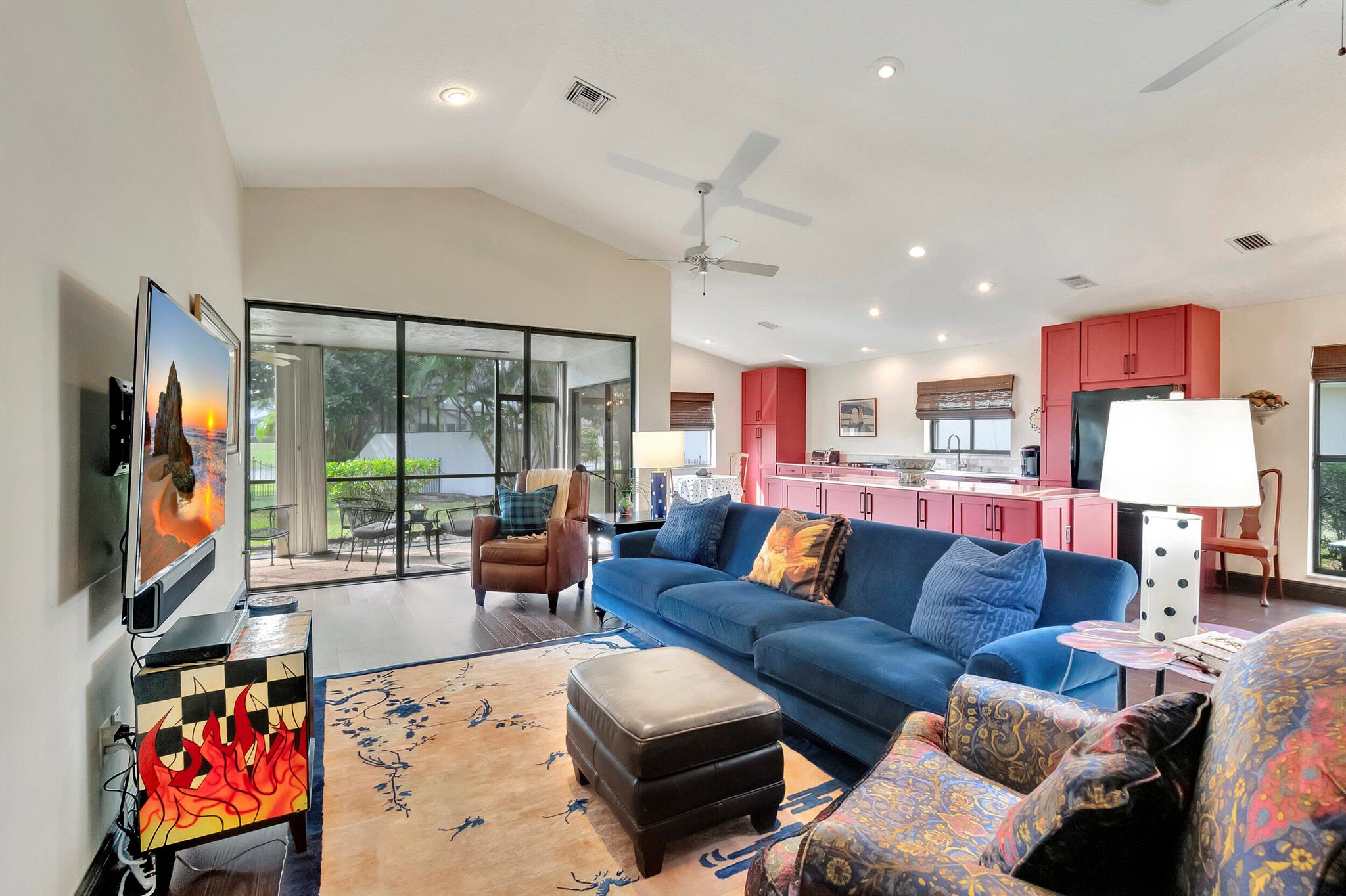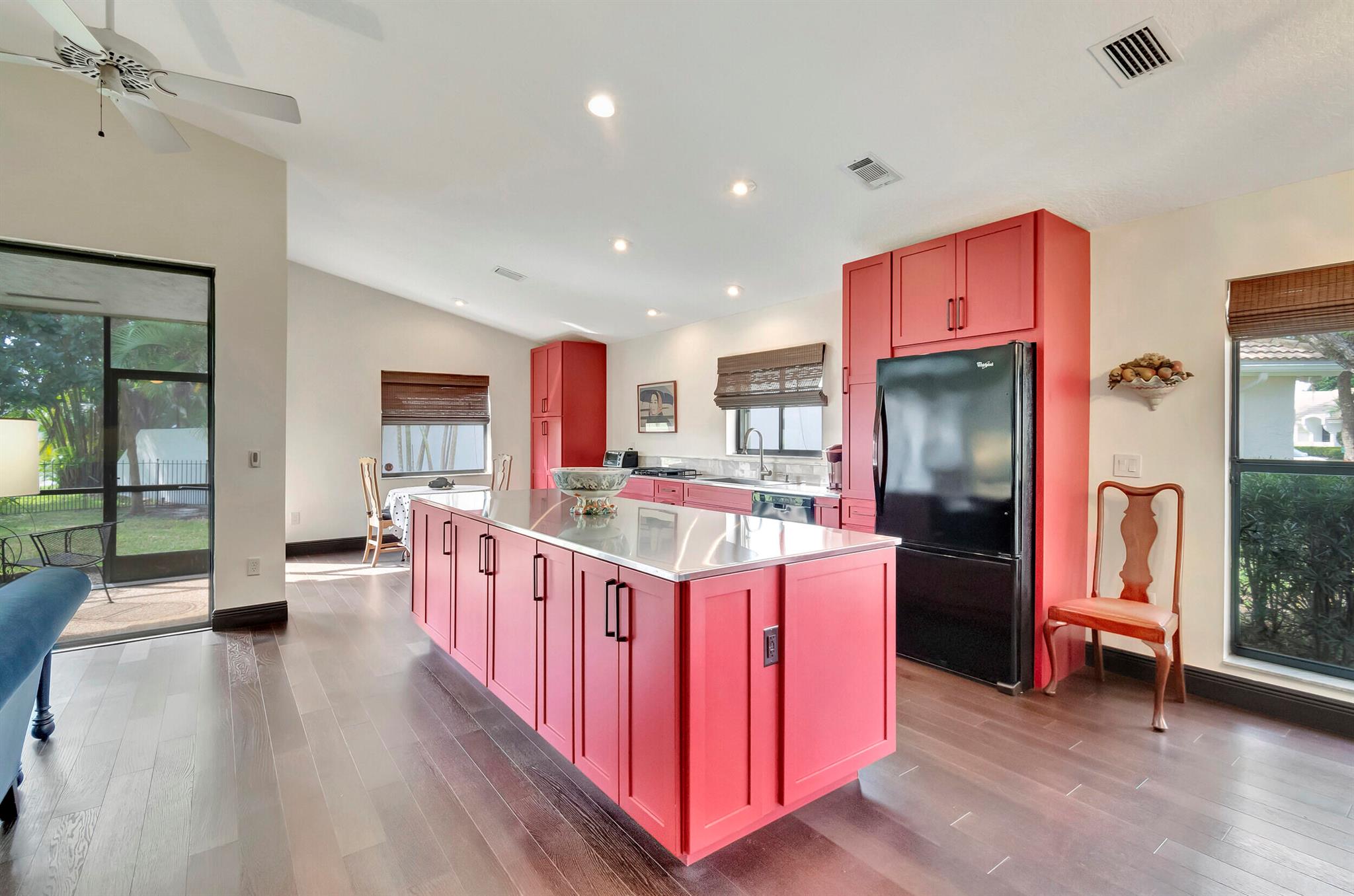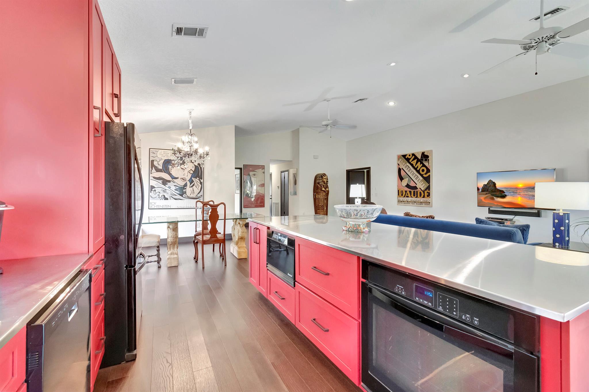 **This house conveys a mandatory golf membership with dues and fees. There is no social membership available.**. This is a very private home located in a cul de sac street with minimum traffic and almost 10,000 sft of land plus a beautiful lake view that pictures do not show as it is! Room for a pool and a rendering is been made by a pool company. The kitchen is equipped with a gas stove and steel counter and island top like in the restaurants . High ceiling, and a wood engineered flooring complete the features of this home where you can move in without having any renovation to handle. 3 bedrooms , 2 baths, a 2 car garage and hurricane shutters on all windows make this house perfect all year around including holidays family reunions! 6 cars can be parked on the driveway at Thanksgiving!