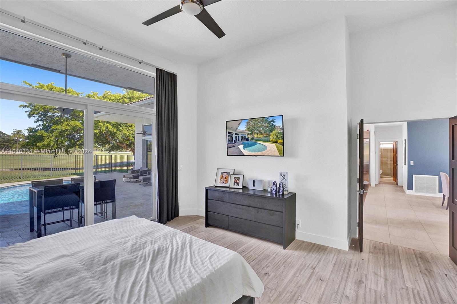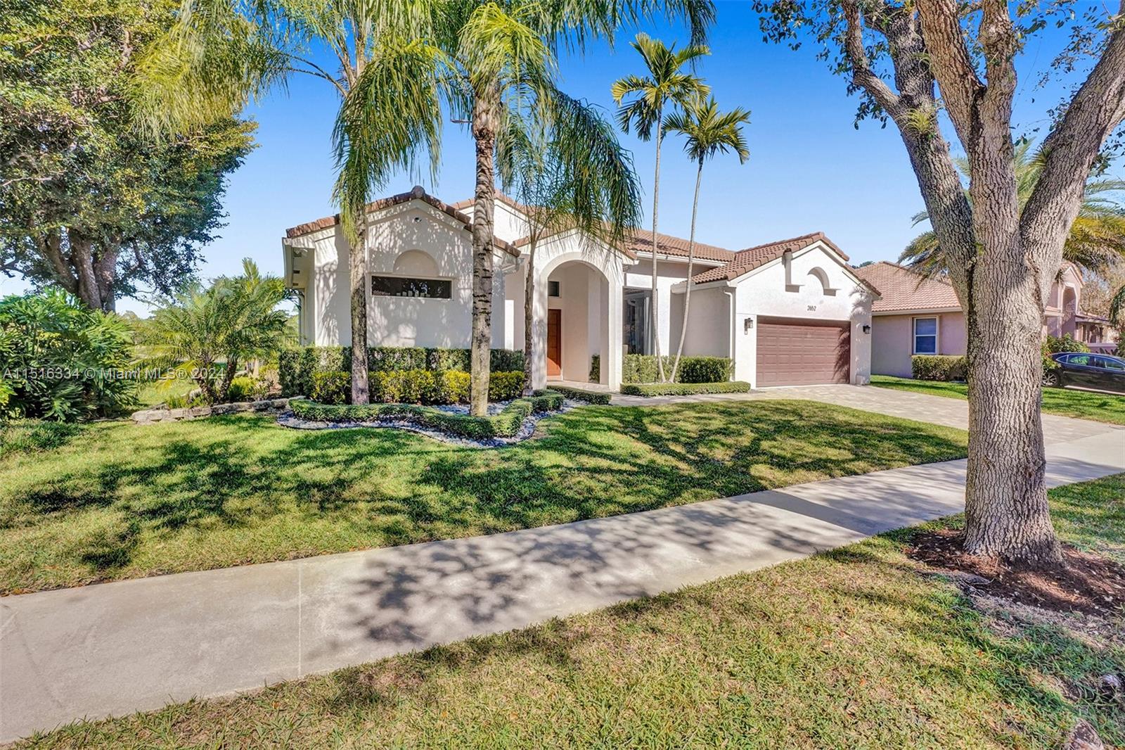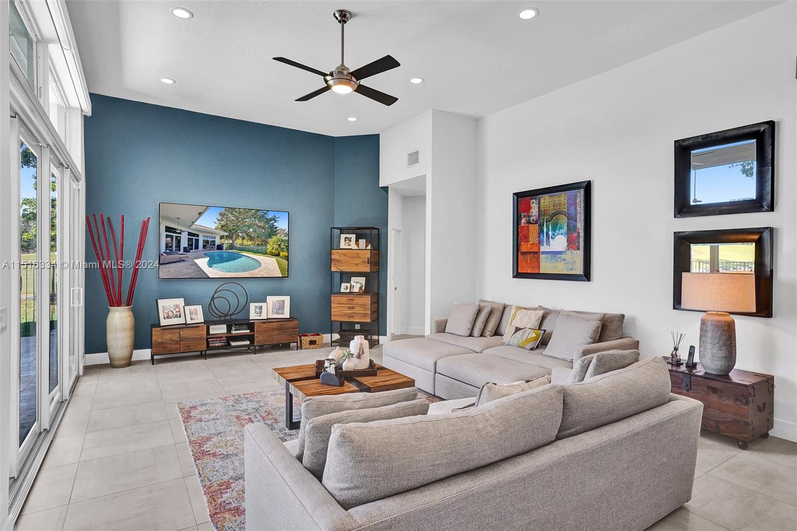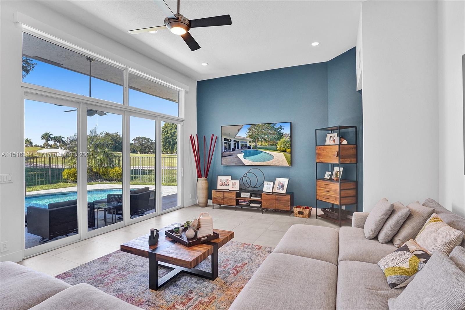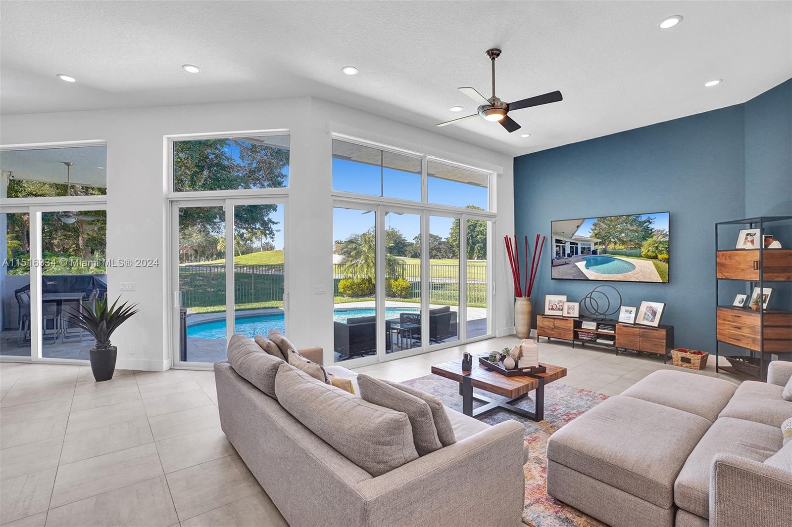 Discover unparalleled luxury in this 4-bed, 3-bath haven in Weston Hills Country Club. Enjoy ultimate privacy on the corner lot with stunning golf course views. The home boasts exquisite design with a custom front door, 14Ft ceilings, and a dreamy gourmet kitchen featuring professional-grade Jenn-Air appliances and a quartz waterfall counter on an oversized island. The Elfa closet system ensures seamless organization. Master and mini master bedrooms feature wood floors, complemented by 30x30 grey tile flooring and Brazilian teak solid wood doors throughout. Impact windows, new pool equipment, diamond brite, a silent pool heater, and garage racks enhance this move-in-ready residence. Meticulous landscaping adds to the charm, inviting you to revel in unmatched comfort and sophistication.