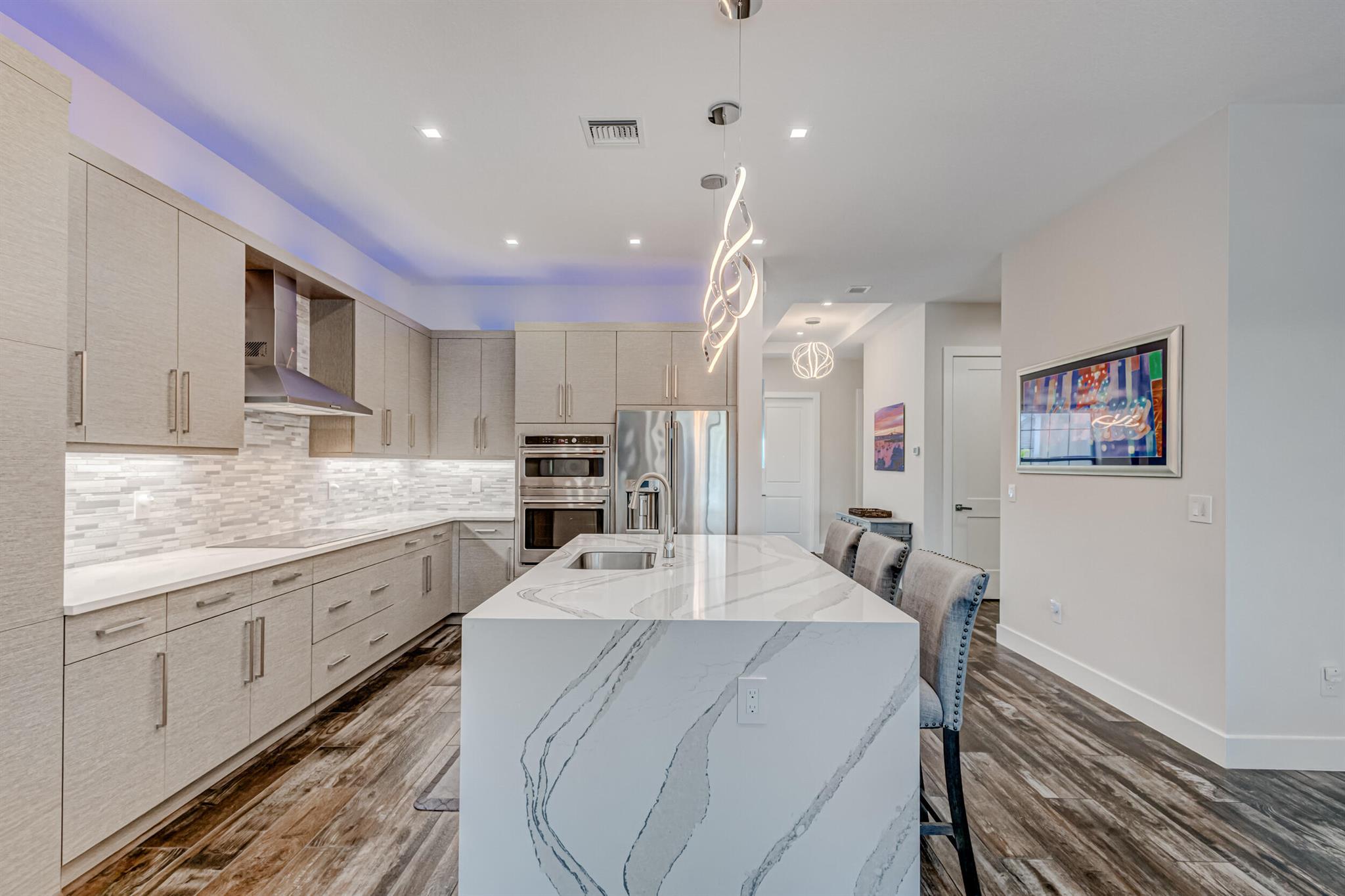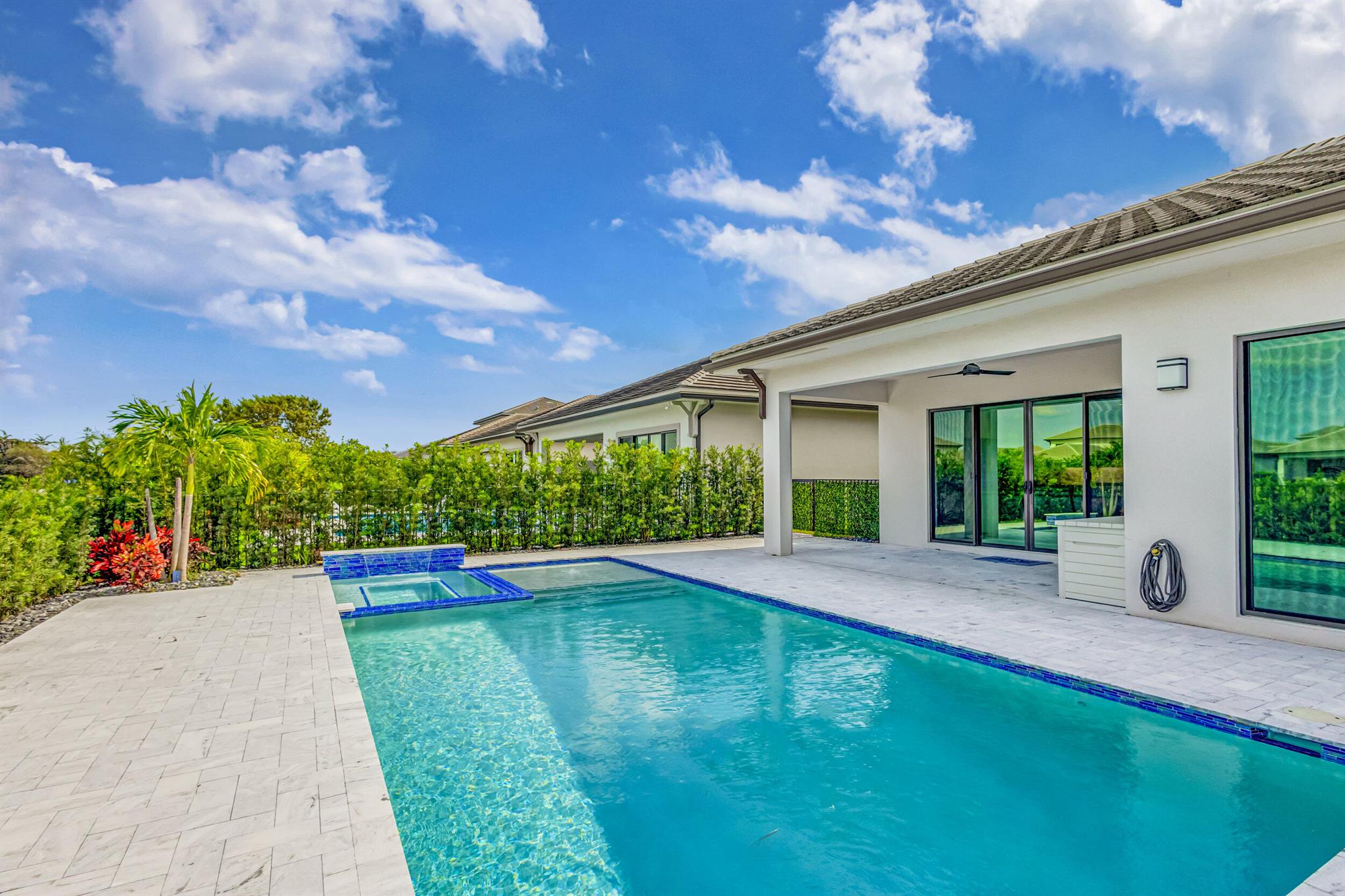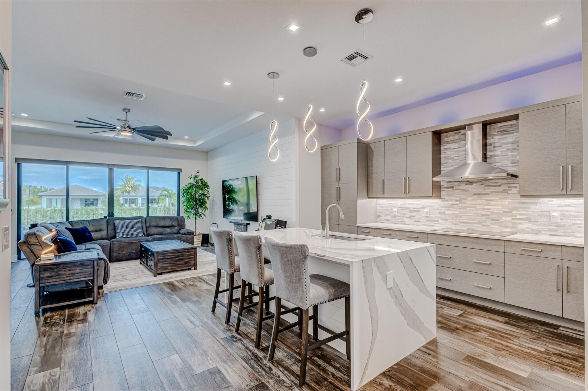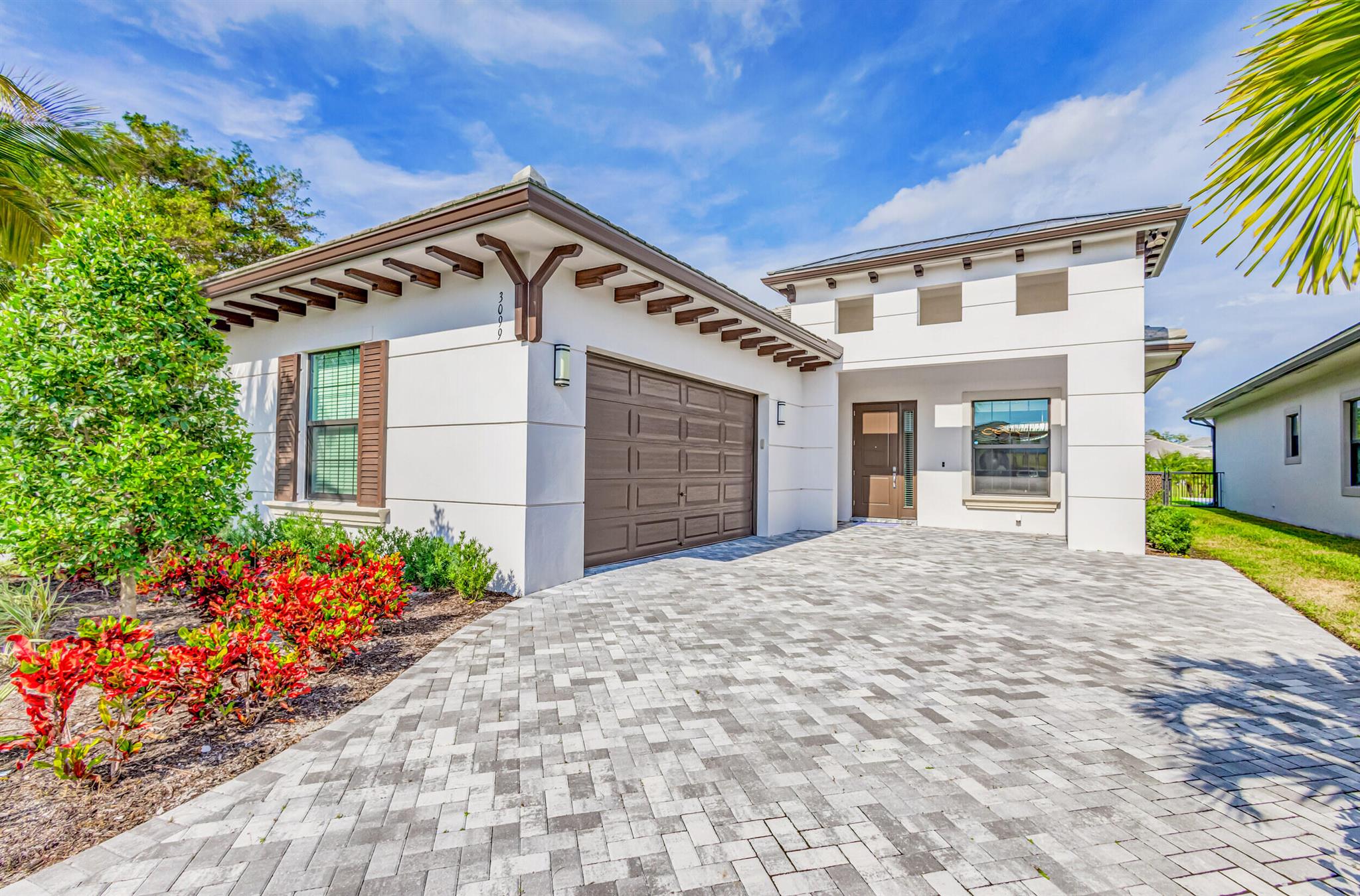 Luxury living in this stunning 3 bedroom, 3 bath, 2-car garage home in Banyan Cay, a prestigious gated community in West Palm Beach, East of I-95. Built in 2021, corner lot. Features many high-end upgrades, such as chef's kitchen, waterfall island, spa-like master suite, custom wallpaper, shiplap walls, custom closet, and a spacious open-concept family room. 10-foot ceilings, 8-foot doors. The backyard is an entertainer's dream, with an automated heated saltwater pool/spa, marble deck, and spacious lanai. The home is located next to Banyan Cay Country Club, that will offer a golf course, hotel, fitness, and tennis center. Conveniently located near Palm Beach Outlets, Kravis Center, Clematis Street, Worth Avenue, Beaches, and Airport. Don't miss the opportunity to own a piece of paradise!