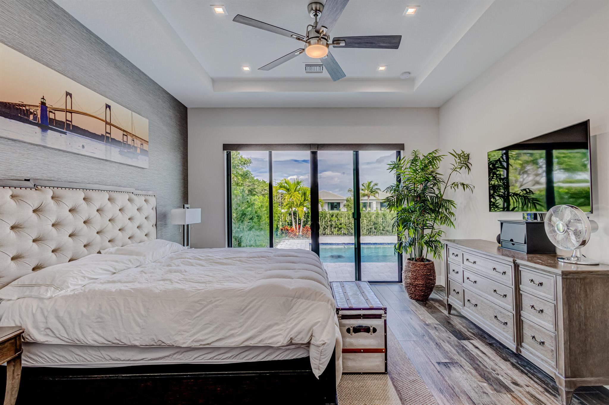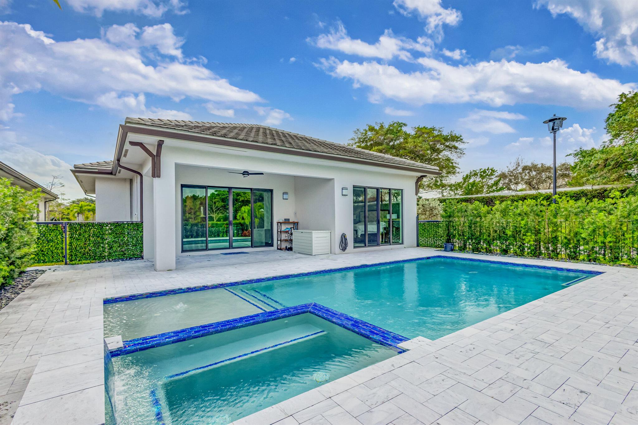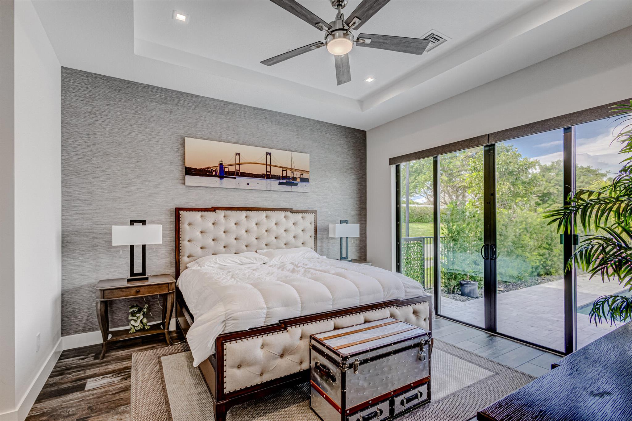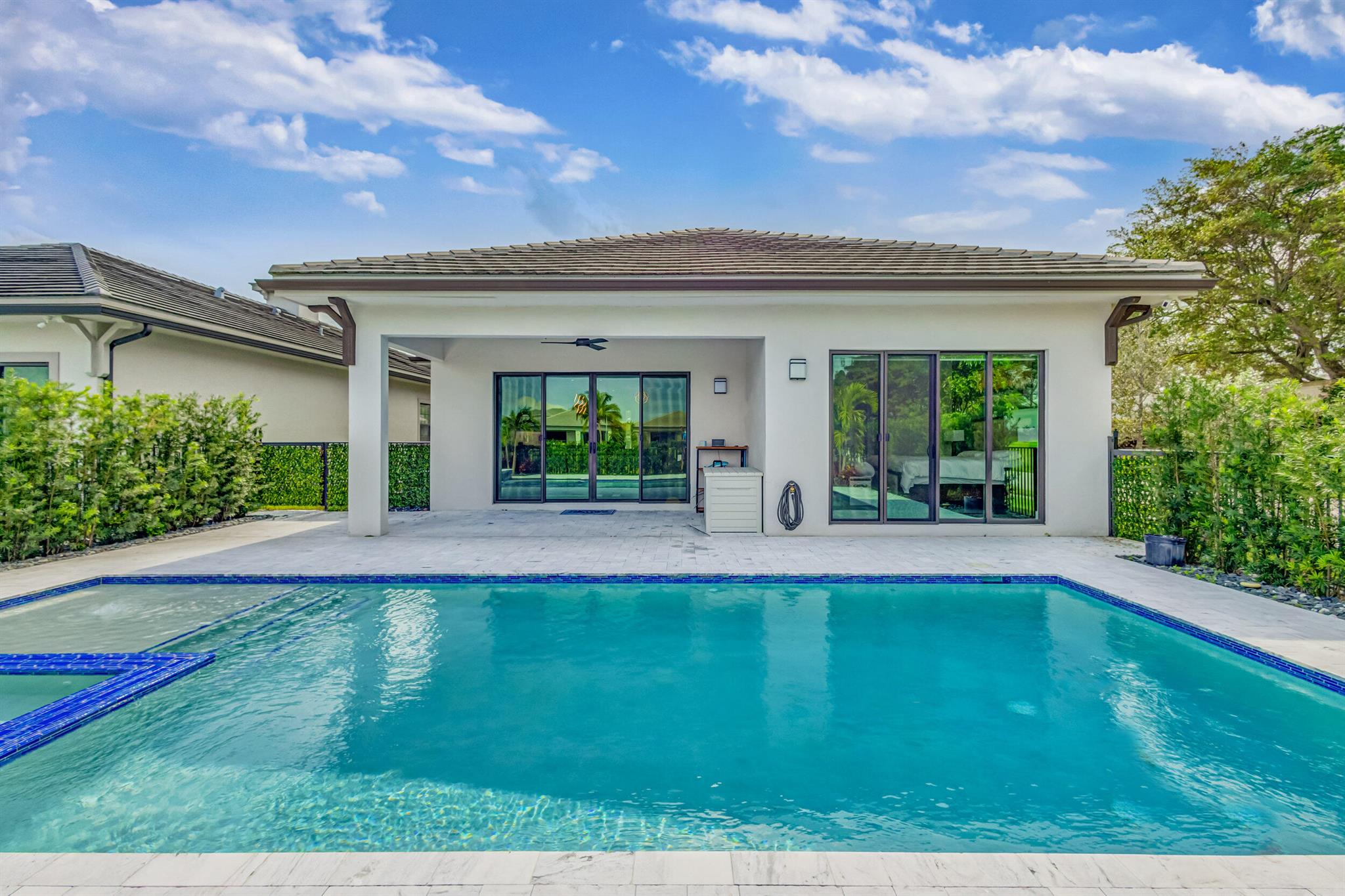 Luxury living in this stunning 3 bedroom, 3 bath, 2-car garage home in Banyan Cay, a prestigious gated community in West Palm Beach, East of I-95. Built in 2021, corner lot. Features many high-end upgrades, such as chef's kitchen, waterfall island, spa-like master suite, custom wallpaper, shiplap walls, custom closet, and a spacious open-concept family room. 10-foot ceilings, 8-foot doors. The backyard is an entertainer's dream, with an automated heated saltwater pool/spa, marble deck, and spacious lanai. The home is located next to Banyan Cay Country Club, that will offer a golf course, hotel, fitness, and tennis center. Conveniently located near Palm Beach Outlets, Kravis Center, Clematis Street, Worth Avenue, Beaches, and Airport. Don't miss the opportunity to own a piece of paradise!