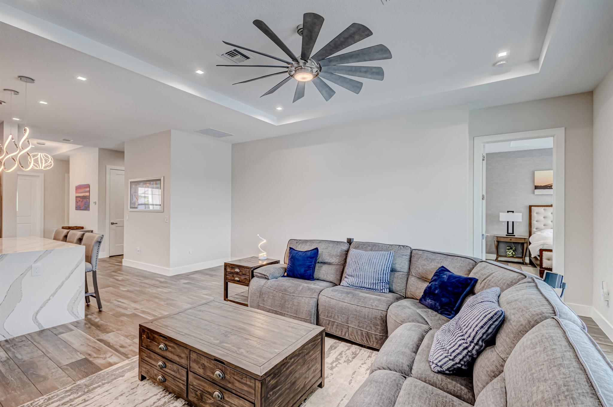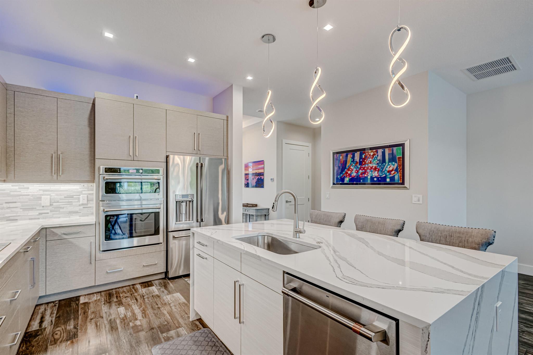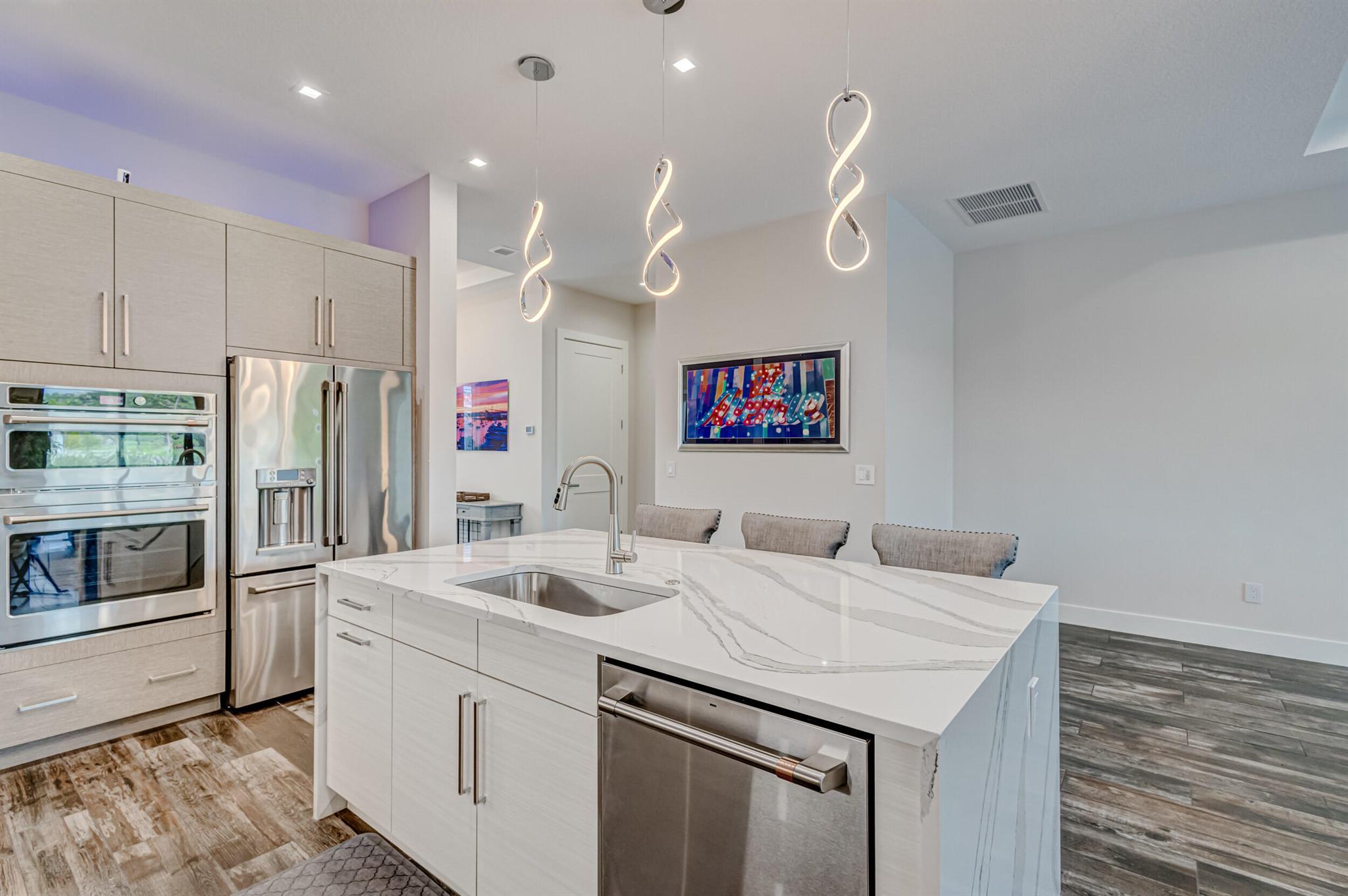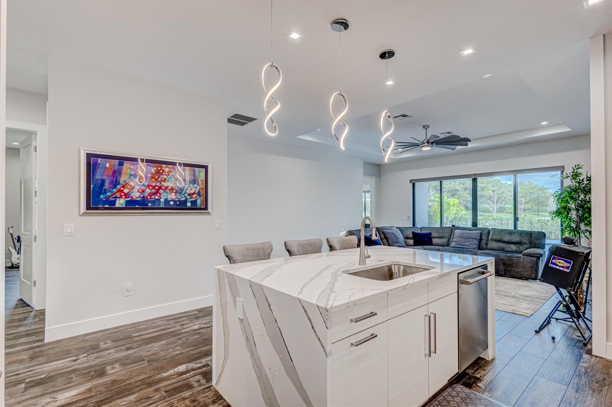 Luxury living in this stunning 3 bedroom, 3 bath, 2-car garage home in Banyan Cay, a prestigious gated community in West Palm Beach, East of I-95. Built in 2021, corner lot. Features many high-end upgrades, such as chef's kitchen, waterfall island, spa-like master suite, custom wallpaper, shiplap walls, custom closet, and a spacious open-concept family room. 10-foot ceilings, 8-foot doors. The backyard is an entertainer's dream, with an automated heated saltwater pool/spa, marble deck, and spacious lanai. The home is located next to Banyan Cay Country Club, that will offer a golf course, hotel, fitness, and tennis center. Conveniently located near Palm Beach Outlets, Kravis Center, Clematis Street, Worth Avenue, Beaches, and Airport. Don't miss the opportunity to own a piece of paradise!