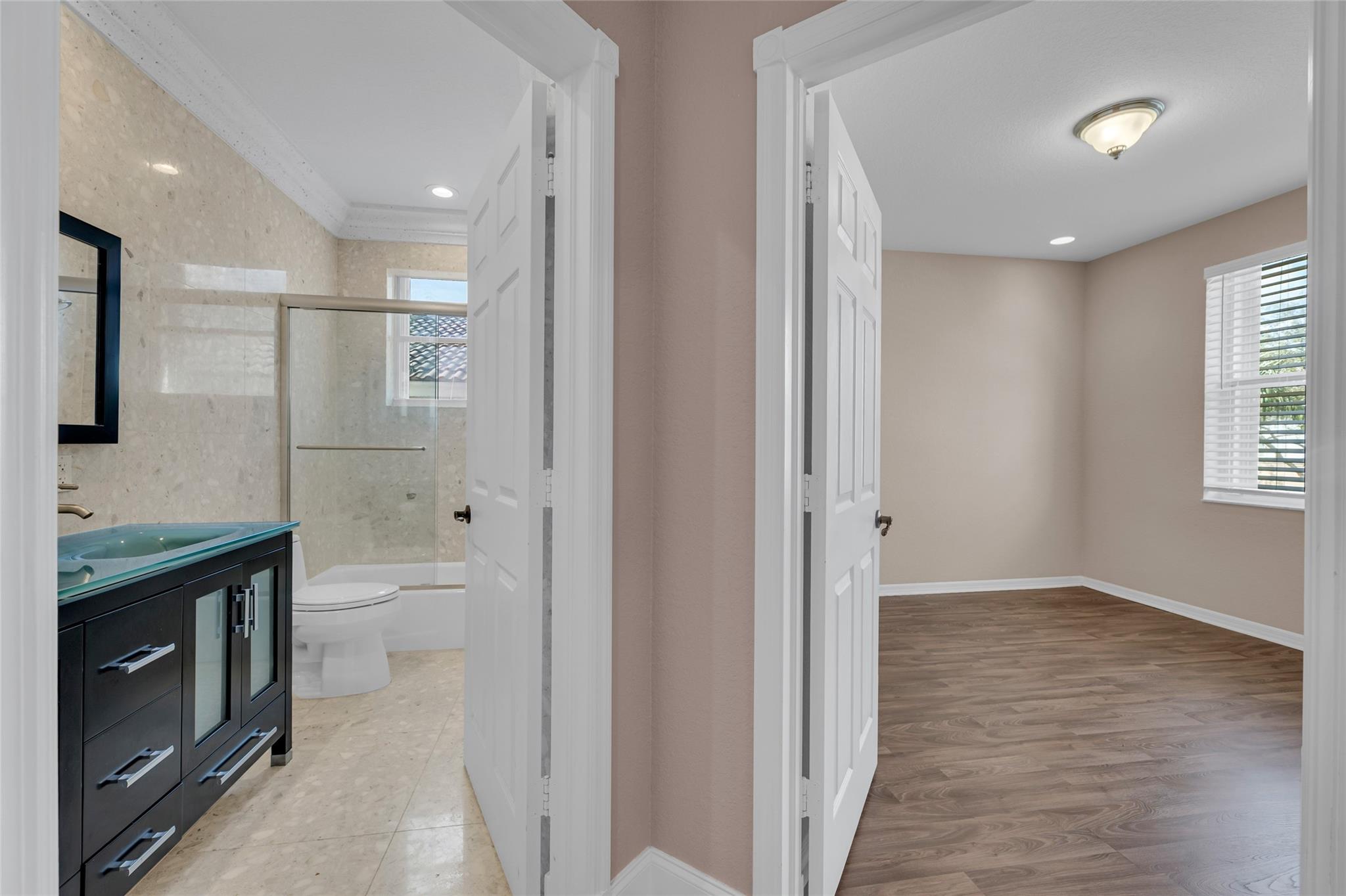 Enjoy sophisticated living in 4 Bedroom-2.5 Bath Boticelli Estate waterfront home in the beautiful community of West Lake Village. Largest pool home in West Lake with 3000 sq. feet of living area. Open concept with beautiful water views from the kitchen, family room, living area & the gym/office. Spacious room connected to the master suite can be enjoyed as a meditation room, office, reading room etc. Master Bath with oversized shower along with a relaxing soaking tub. Bonus room upstairs offers additional living space for a gym, play room, family room etc.. Intercom system throughout. Exterior cameras with DVR included. 24 manned gate Offering tennis, pickleball, play area & gym. Conveniently located within walking distance to Hollywood Beach. Minutes to Hollywood/Ft. Laud. Airport.