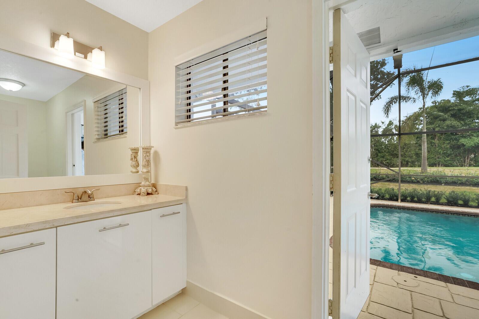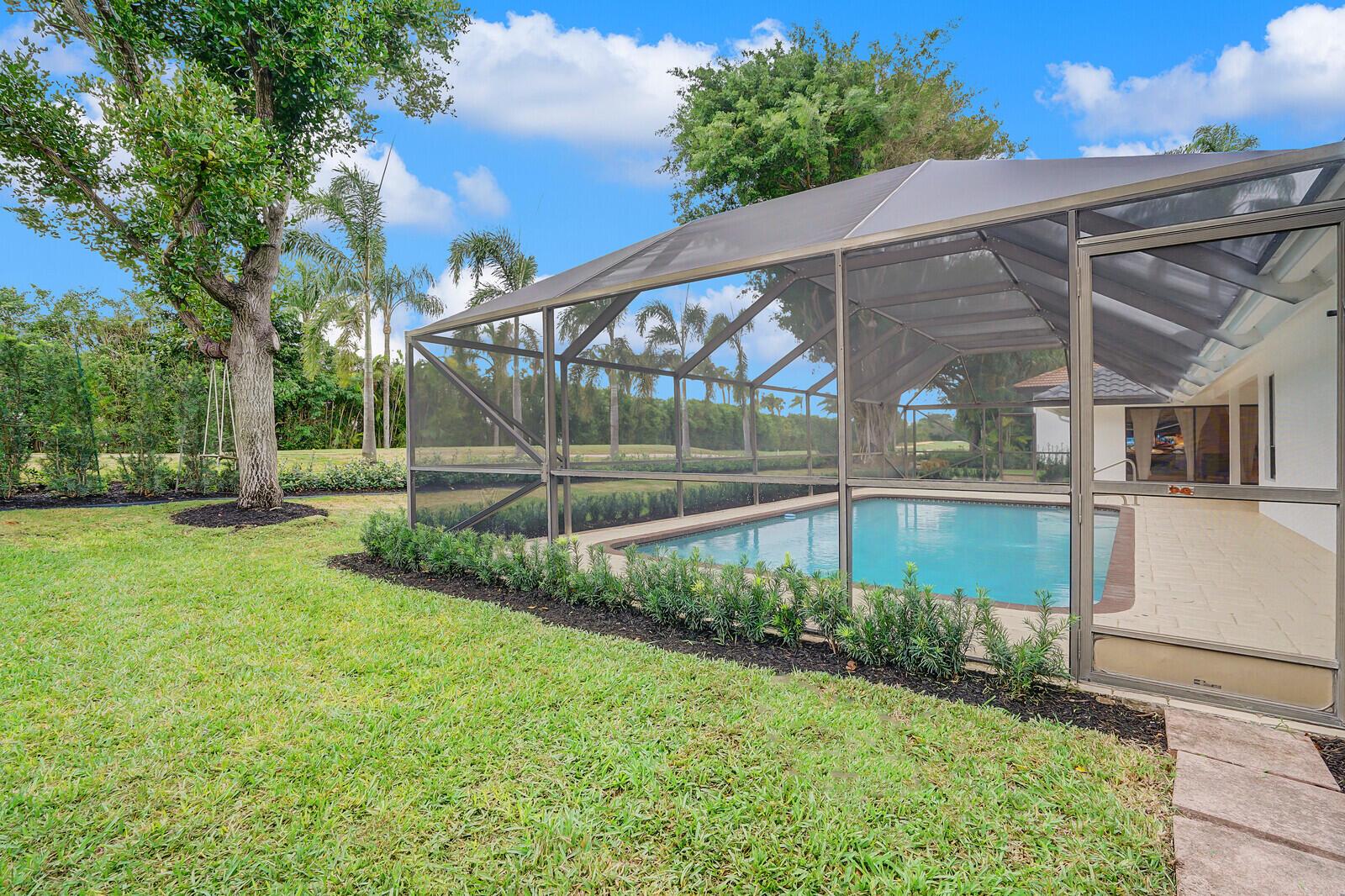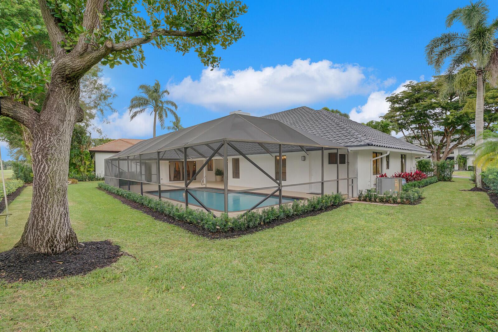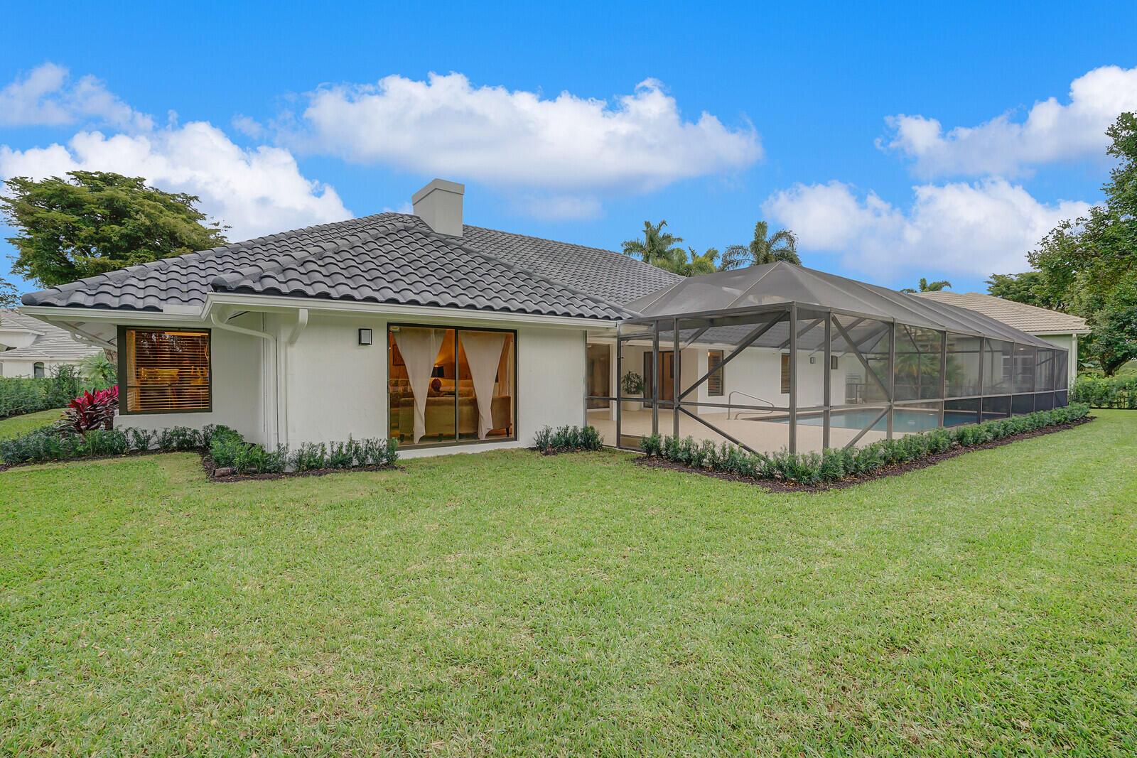 Beautiful pool home in Boca Raton's centrally located golf community, Boca Grove. Enter through the elegant double doors and be greeted by the expansive living room, complete with custom stone wood burning fireplace. Lovely granite and stainless kitchen. Four bedrooms and four full bathrooms with one half cabana bath round out this comfortable floor plan. Tile and hardwood floors throughout. Large patio with screened in pool offers plenty of room for relaxing or entertaining, with a great view of the 7th hole! Boca Grove offers a championship golf course, multiple tennis and pickleball courts, state of the art fitness center, resort-style pool and both casual and fine-dining venues. Come see how the best in country club living can be yours today!