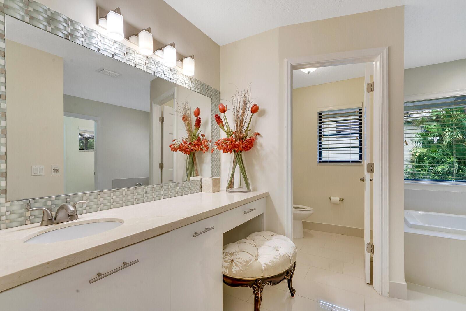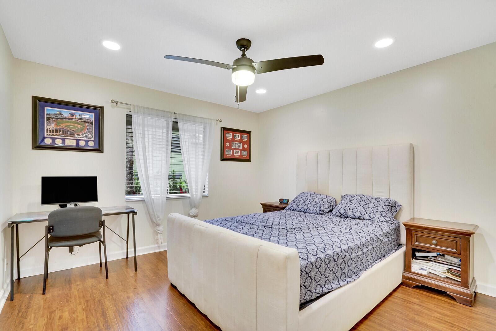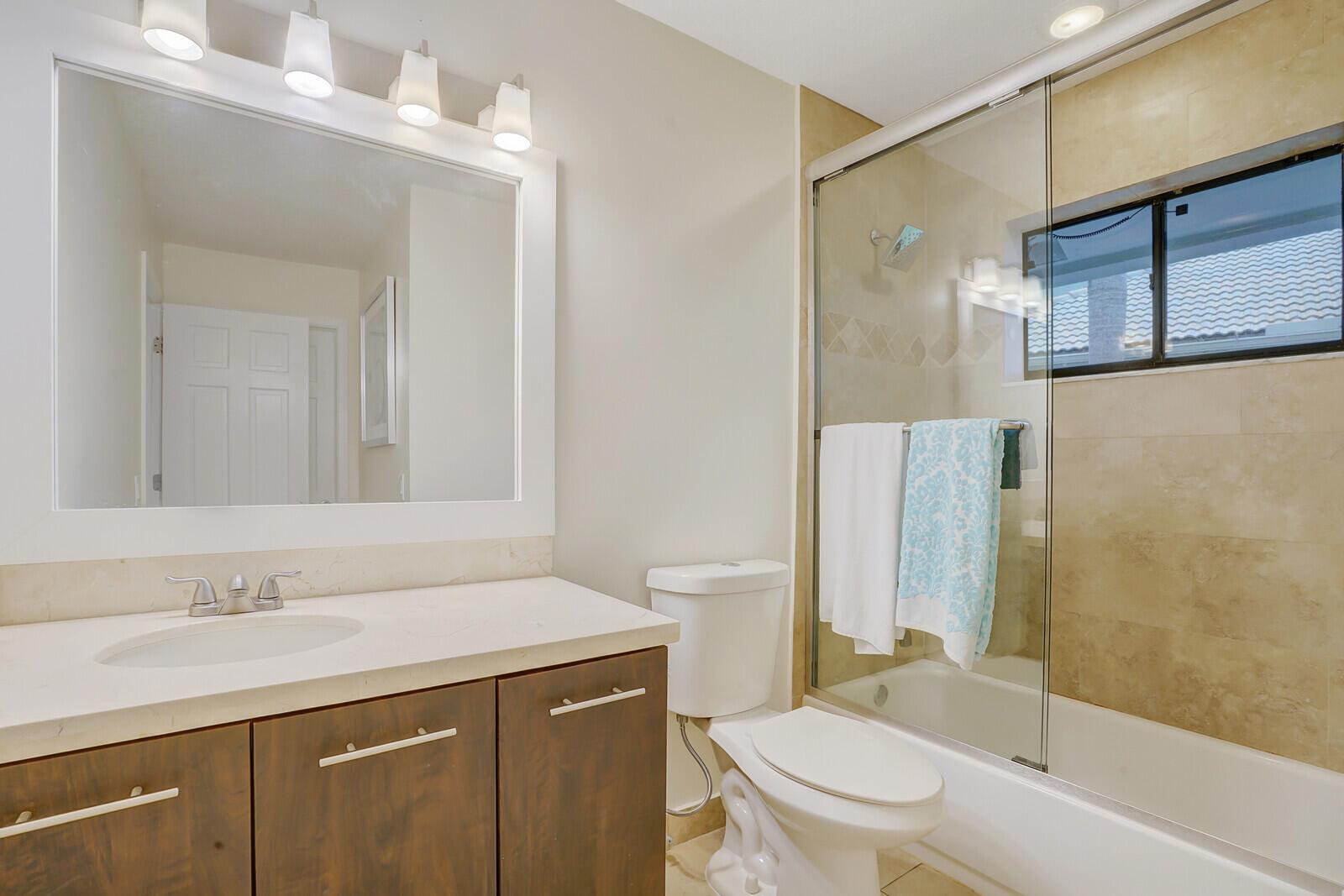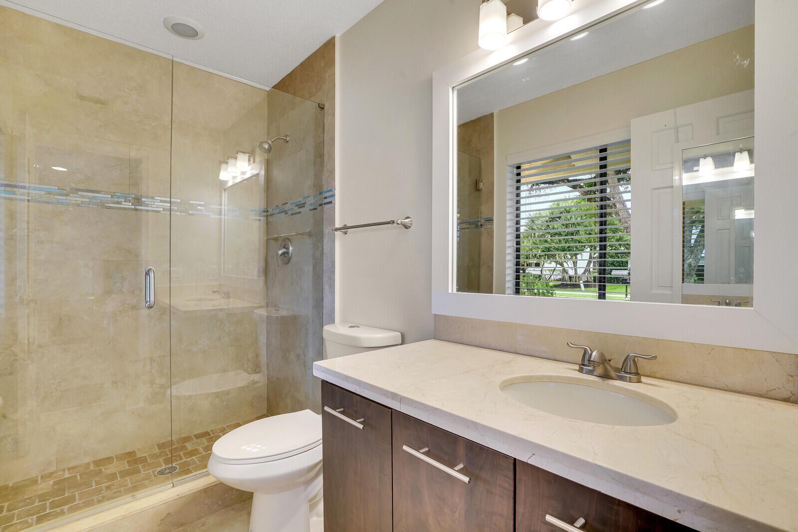 Beautiful pool home in Boca Raton's centrally located golf community, Boca Grove. Enter through the elegant double doors and be greeted by the expansive living room, complete with custom stone wood burning fireplace. Lovely granite and stainless kitchen. Four bedrooms and four full bathrooms with one half cabana bath round out this comfortable floor plan. Tile and hardwood floors throughout. Large patio with screened in pool offers plenty of room for relaxing or entertaining, with a great view of the 7th hole! Boca Grove offers a championship golf course, multiple tennis and pickleball courts, state of the art fitness center, resort-style pool and both casual and fine-dining venues. Come see how the best in country club living can be yours today!