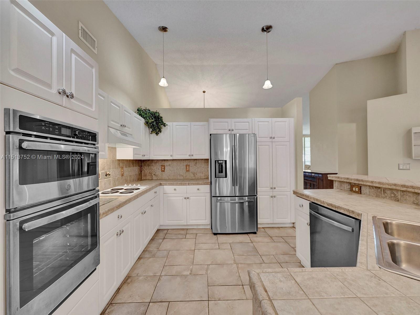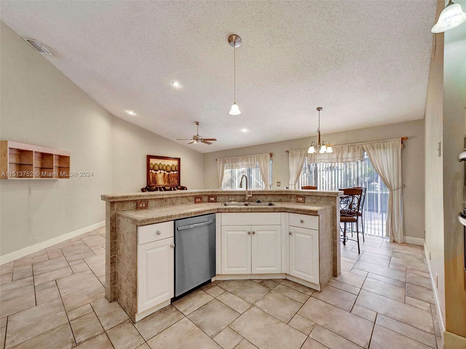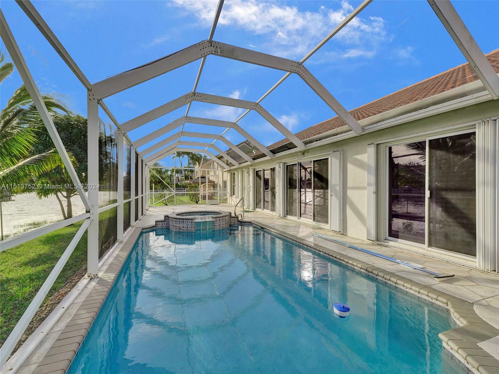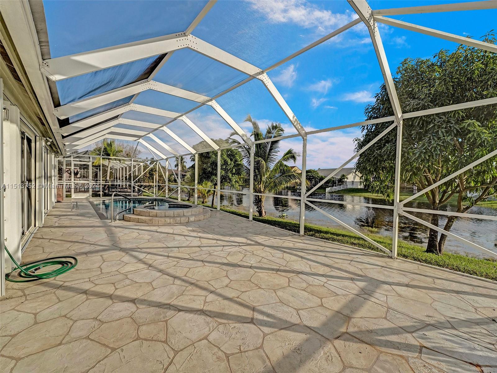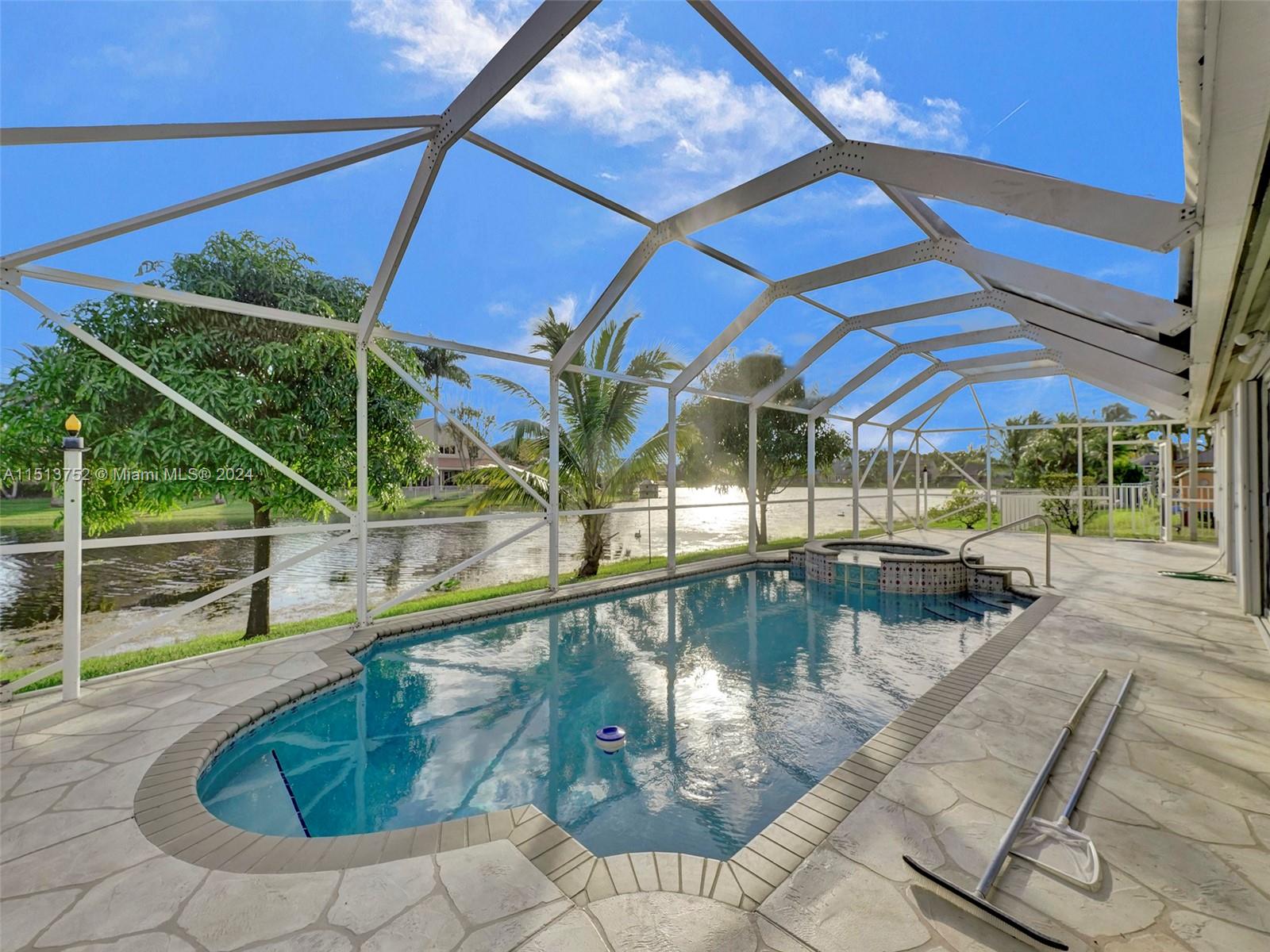 Wonderful Home in Chapel Trail Estates in Pembroke Pines. 4 Bedrooms and 2-1/2 Bathrooms. Enjoy your large Master bedroom in this split bedroom floor plan. Kitchen and Family Room are open for entertaining opening to the pool area. Screened Patio over pool and hot tub. From your patio enjoy gorgeous, calming sunsets over the lake. Plantation Shutters in most rooms. Vaulted ceilings in Living Room, Dining Room, Family Room, Kitchen, and Master Bedroom. New Roof 2022, New A/C 2014 with UV lights, New Water Heater 2020. Gated Community, HOA includes Cable. Washer, Dryer, and Furniture stay with house.