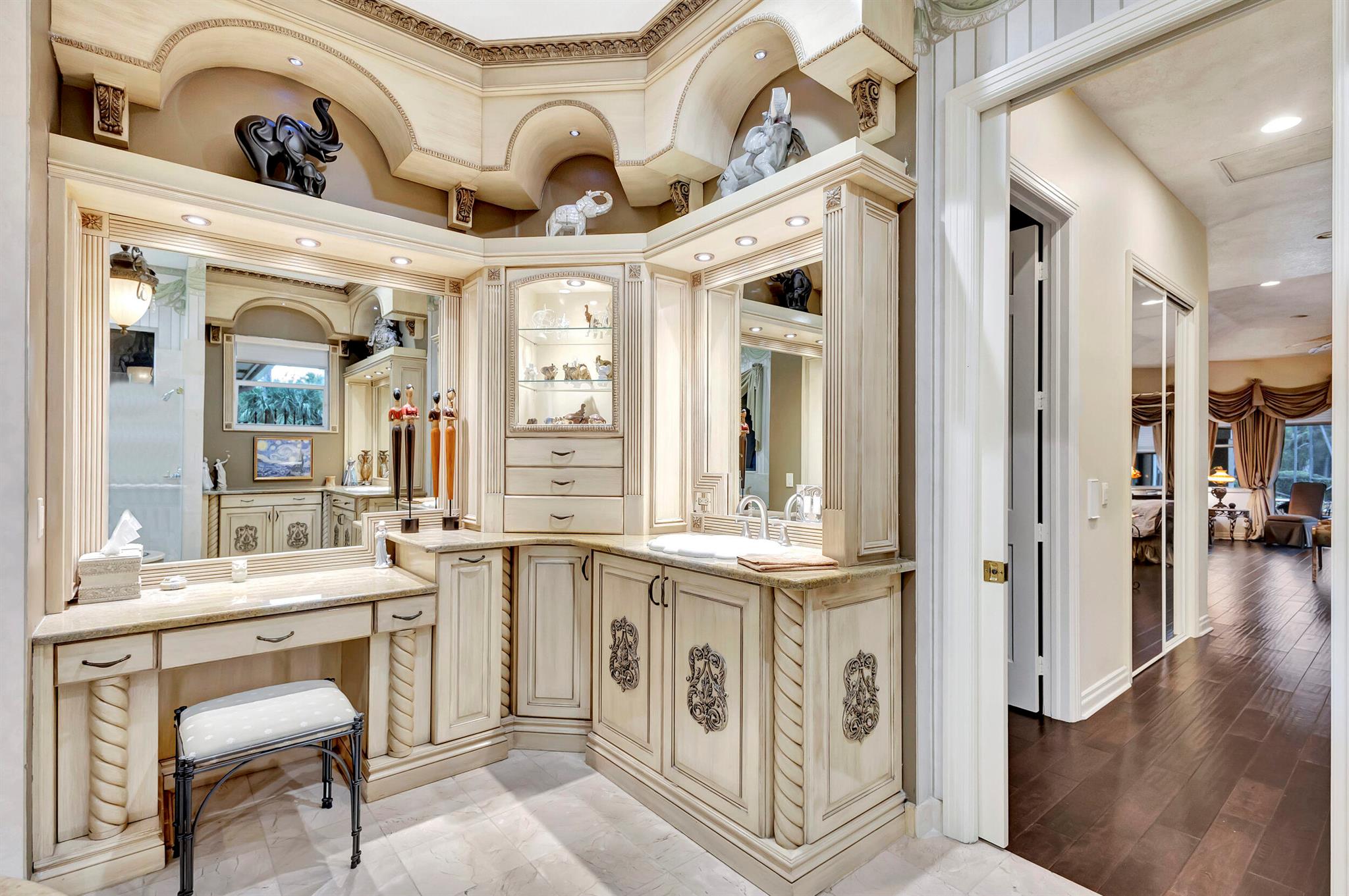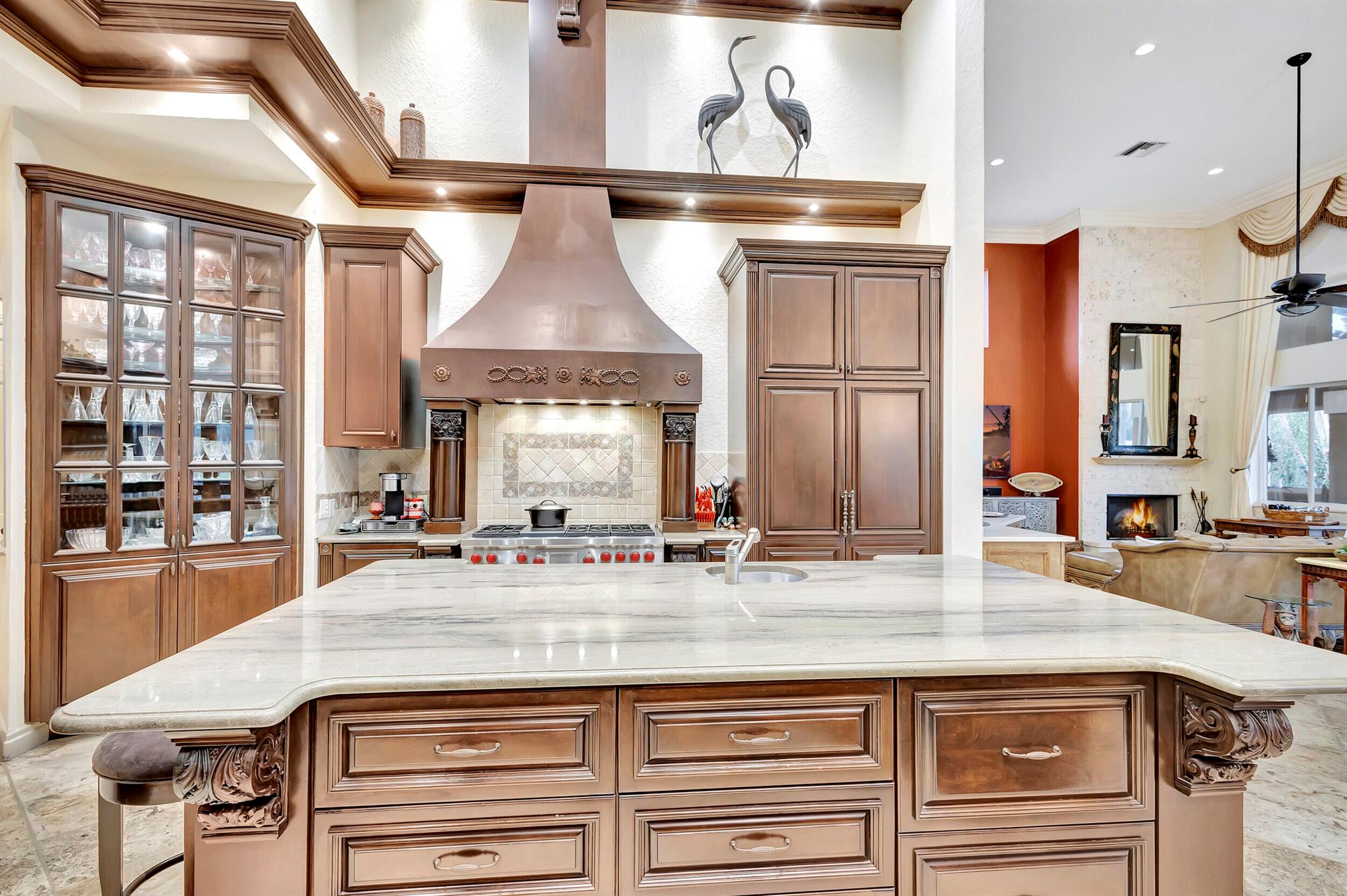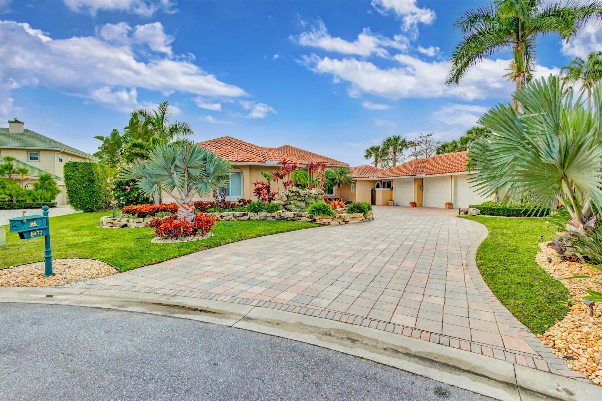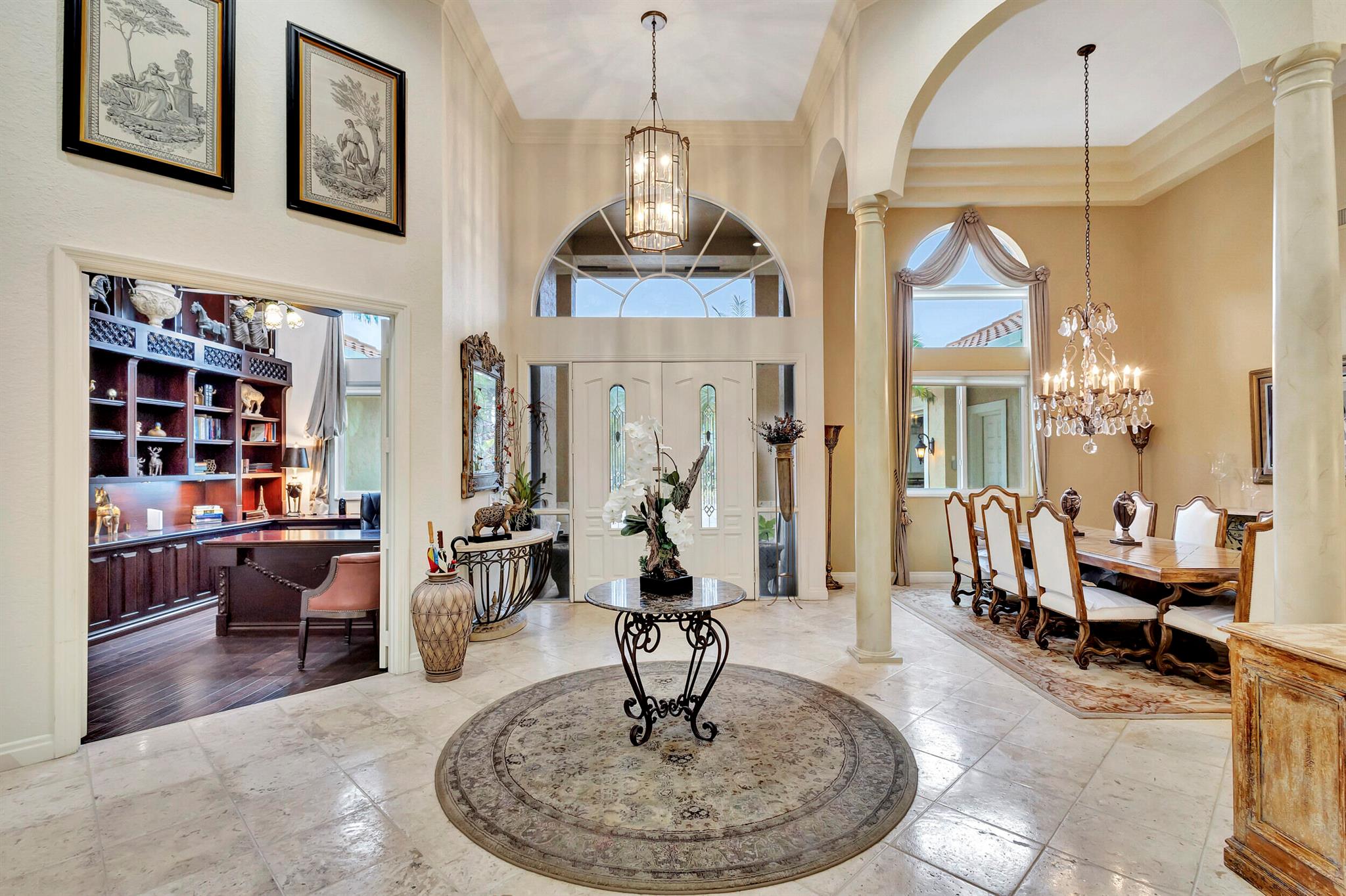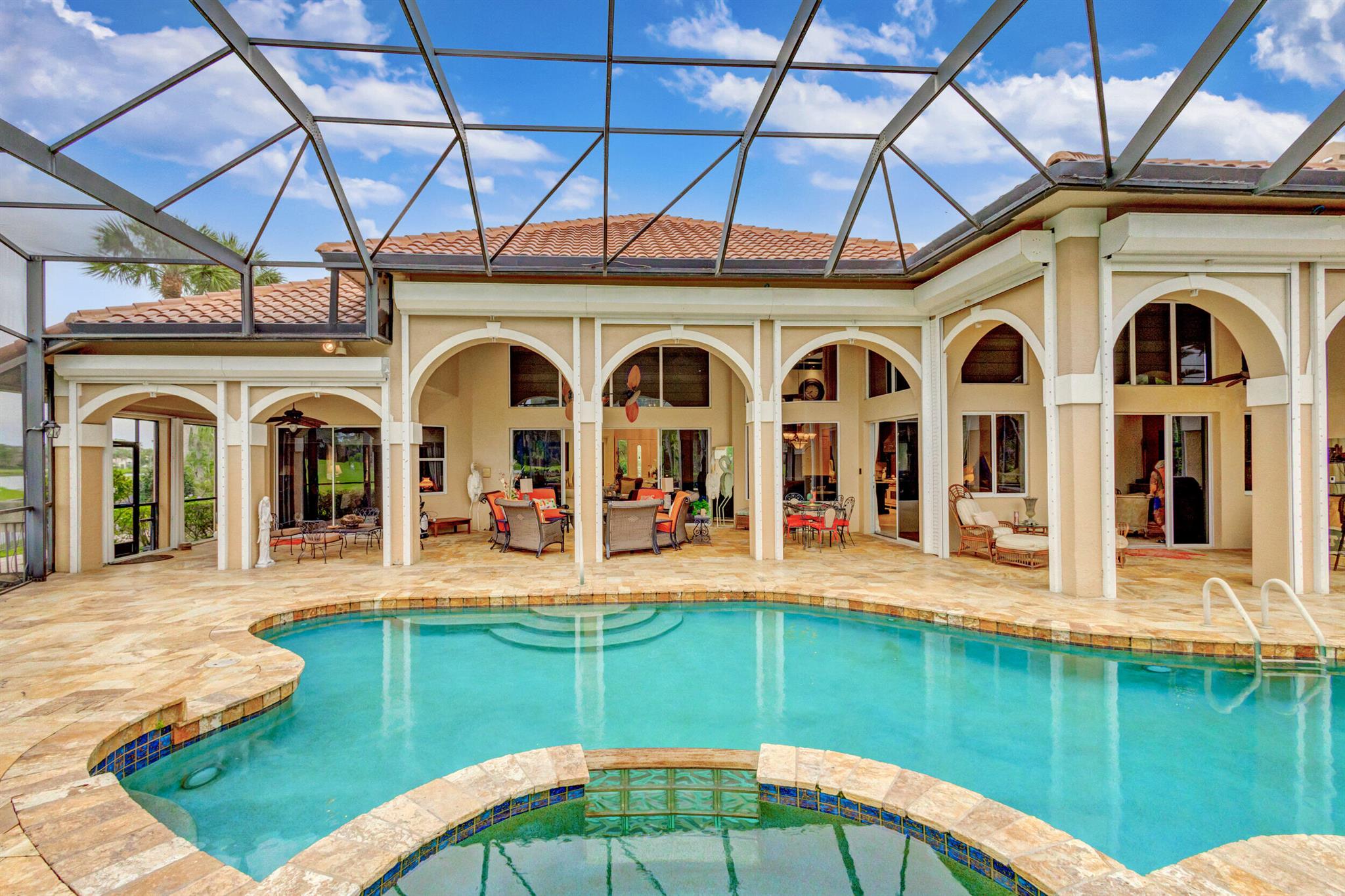 Welcome to 8472 Ironhorse Court situated on the 4th hole of The Preserve, a non-mandatory Club with three levels of membership available to prospective new homeowners. Originally built in 1995 by Alps Custom Homes, this home has been renovated and updated over the years. Sitting on .54 acres and adjacent to the 32,000 acre Grassy Waters Preserve, this home has the best of both worlds with golf course views and the privacy offered by the wetlands. You enter the lushly landscaped estate size property passing a waterfall feature into the brick paver courtyard where there are 4 garages. The main house is 4 bedrooms/4.5 baths and 4,342 SF of living space and a separate/detached guest quarters of 945 SF. Entering the front door, you notice the grand foyer with soaring 16' ceilings flanked on