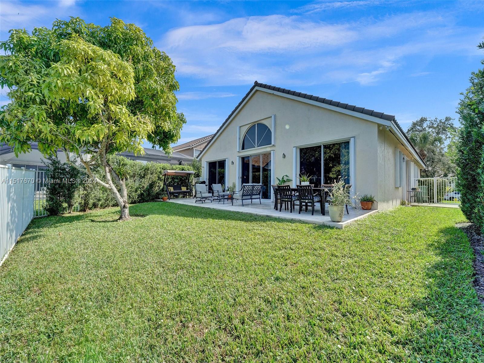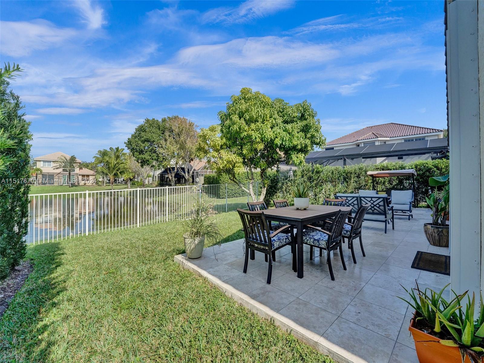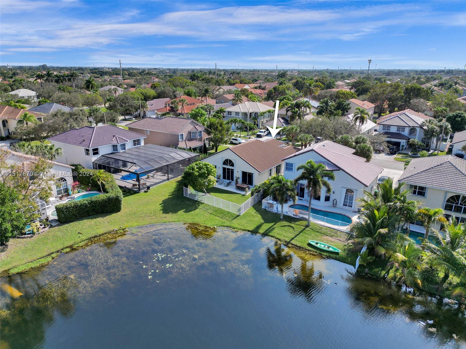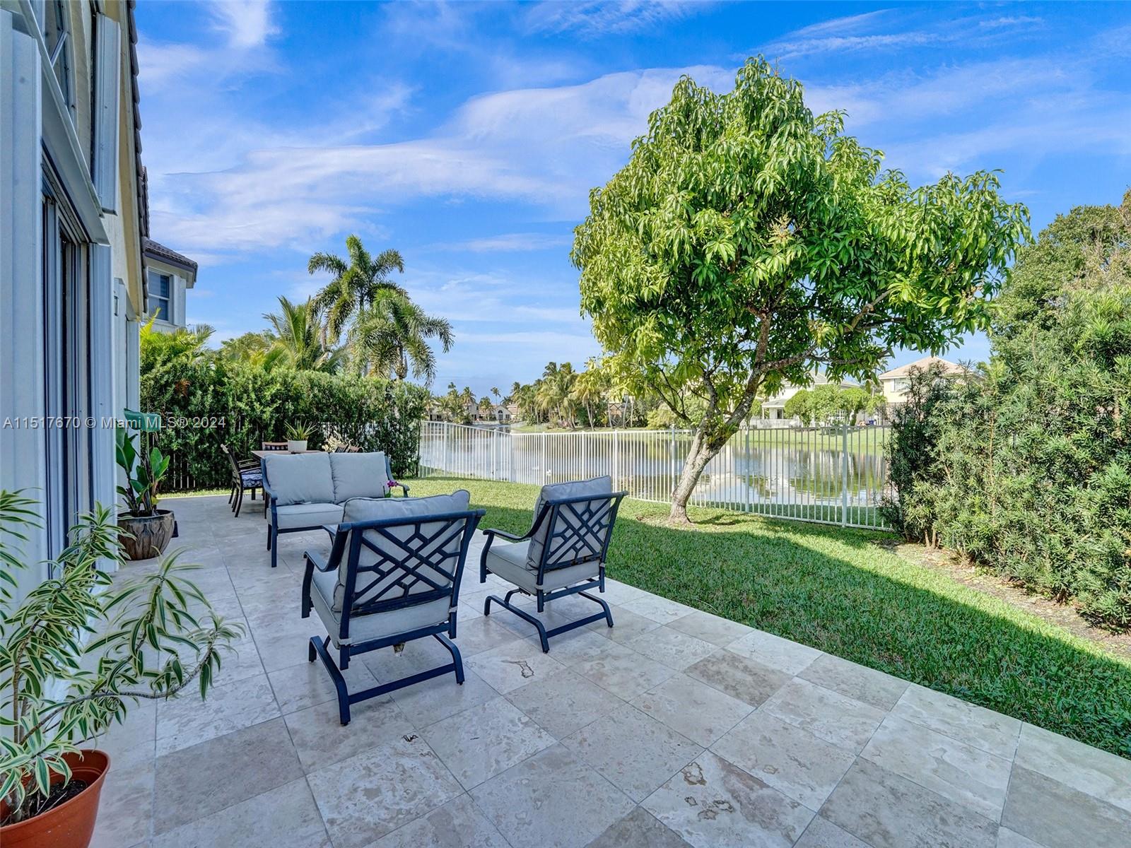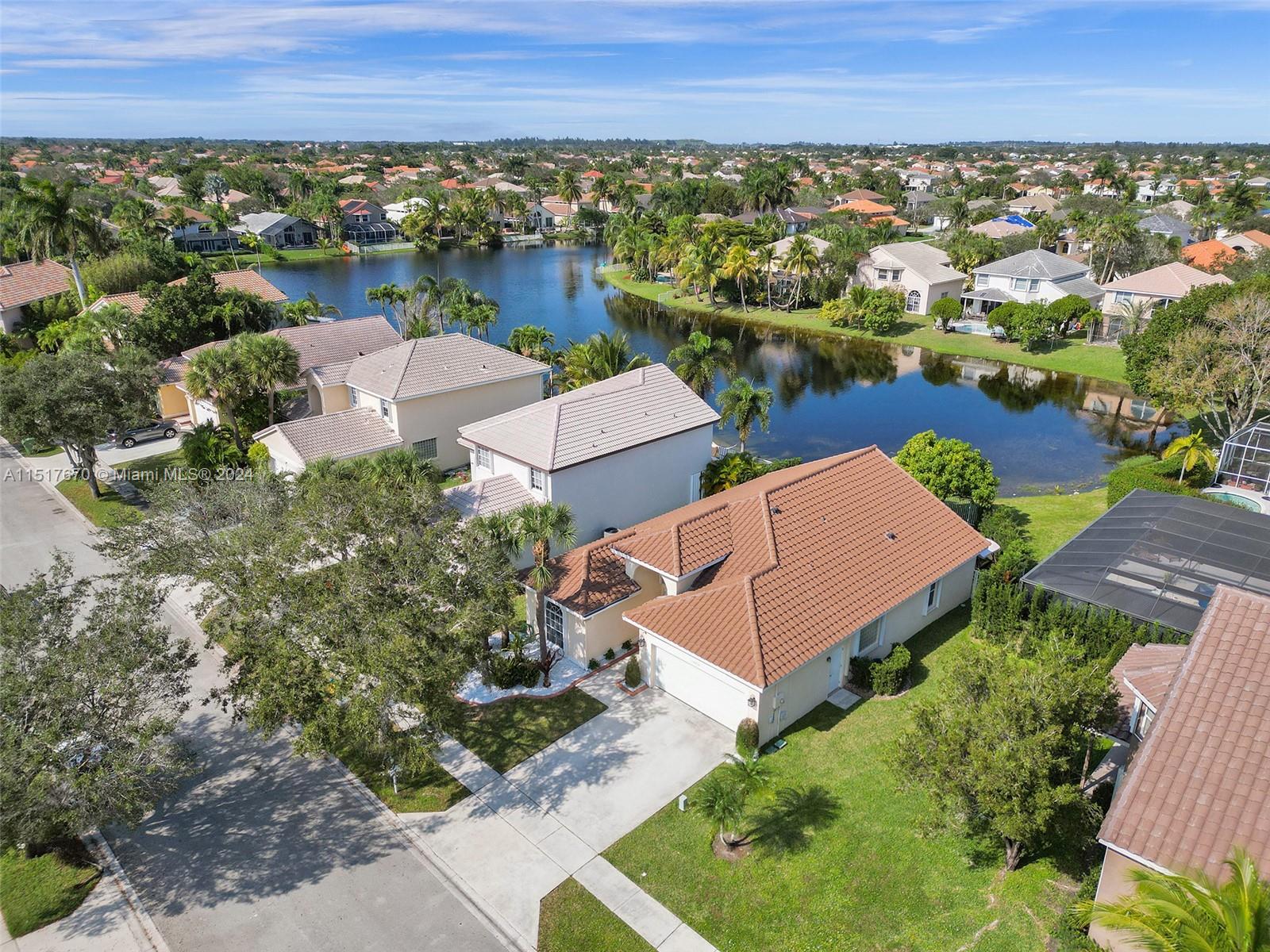 As you step inside, you'll be greeted by an inviting open concept layout with vaulted ceilings and high ceiling windows creating a brightly, airy, and spacious atmosphere. This spectacular one-story home boasts 3 Bedrooms, 2 Bathrooms with a bonus room equipped with AC. New porcelain floors and popcorn ceiling removed throughout the main areas. This home comes with a brand-new roof installed in 2021 and a recently upgraded AC Condenser from 2023. Additionally, the home is storm ready with hurricane-rated accordion shutters and doors. Enjoy stunning views of the lake and sunsets from the comfort of your fenced backyard. Low HOA fees include cable, internet, and access to a range of amenities. Conveniently located near top-rated schools, parks, hospitals, and shopping centers.