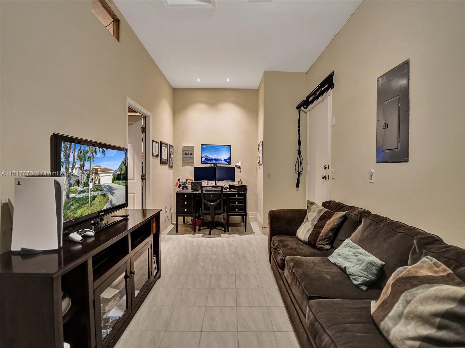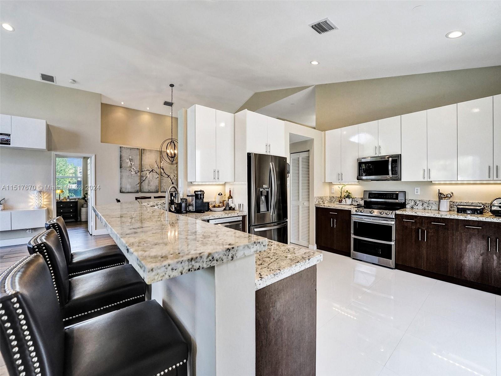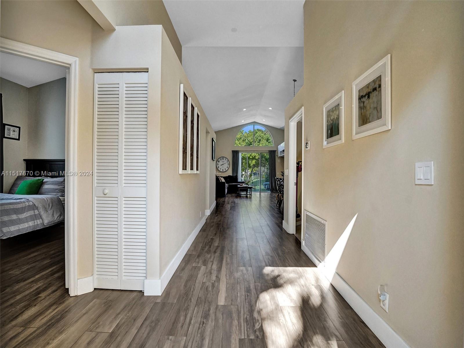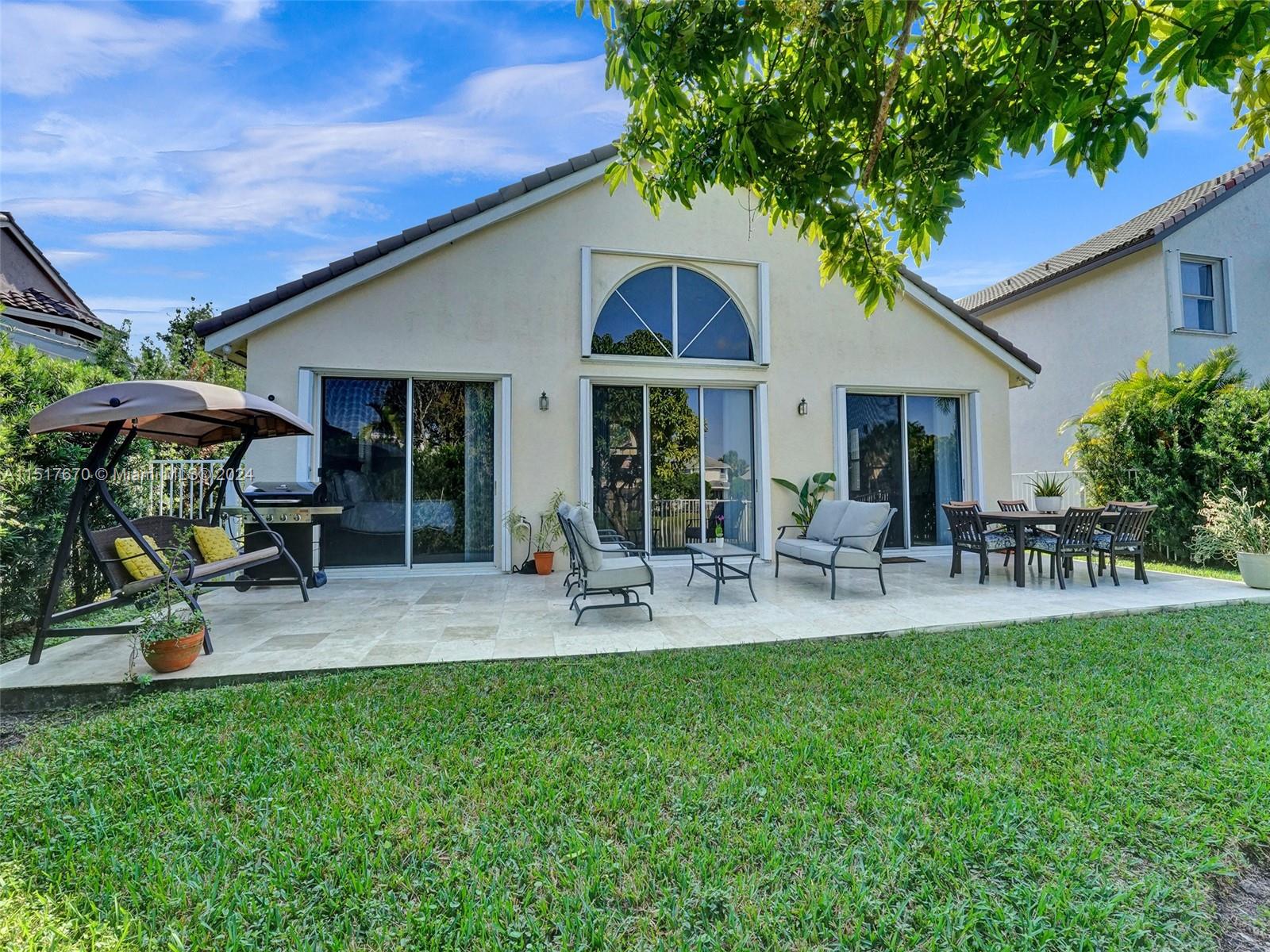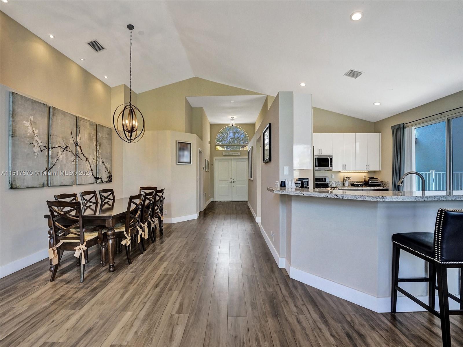 As you step inside, you'll be greeted by an inviting open concept layout with vaulted ceilings and high ceiling windows creating a brightly, airy, and spacious atmosphere. This spectacular one-story home boasts 3 Bedrooms, 2 Bathrooms with a bonus room equipped with AC. New porcelain floors and popcorn ceiling removed throughout the main areas. This home comes with a brand-new roof installed in 2021 and a recently upgraded AC Condenser from 2023. Additionally, the home is storm ready with hurricane-rated accordion shutters and doors. Enjoy stunning views of the lake and sunsets from the comfort of your fenced backyard. Low HOA fees include cable, internet, and access to a range of amenities. Conveniently located near top-rated schools, parks, hospitals, and shopping centers.