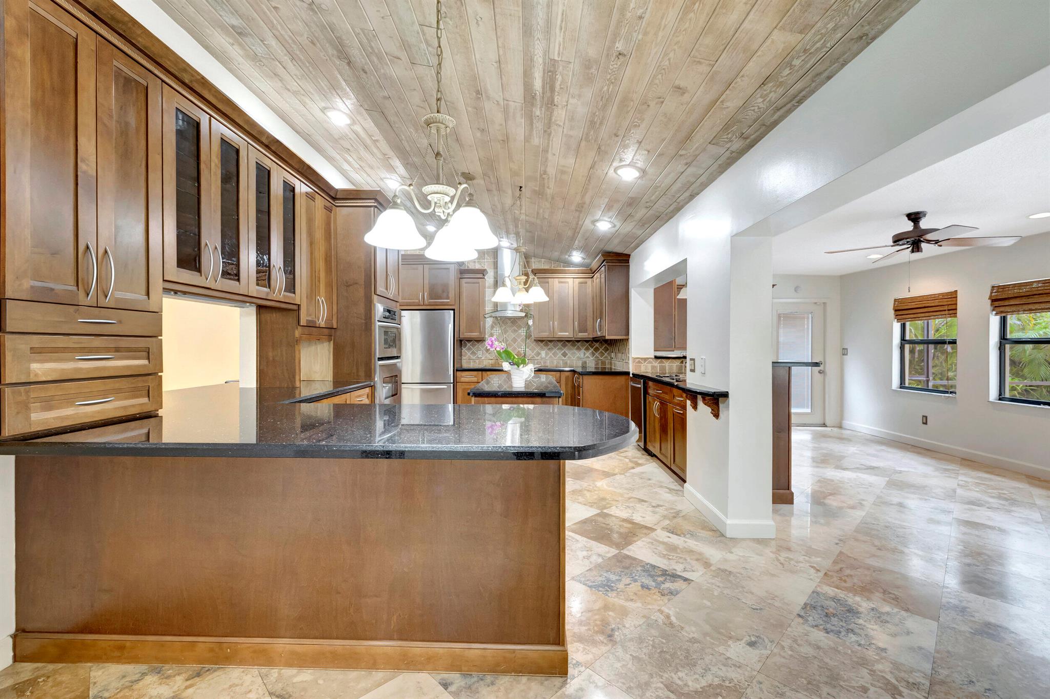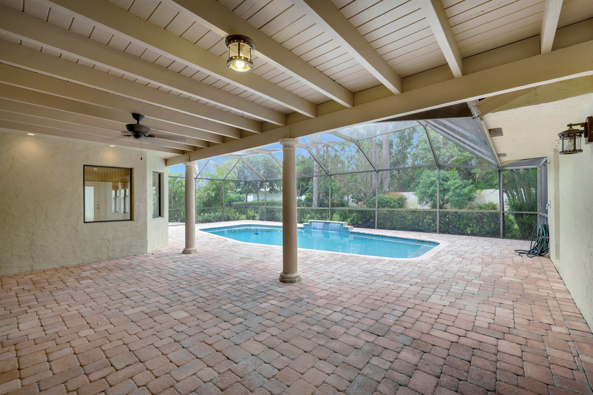 Discover this rare find nestled on a half-acre lot in the heart of Boca. A hidden gem, this absolutely beautiful home is discreetly tucked away in the back of the community, ensuring tranquility and privacy. The property boasts a sprawling fenced 1/2 acre lot, providing a sense of exclusivity and space. Security is paramount with a 24-hour manned security gate, offering peace of mind for residents. The large screened patio & pool area create a perfect retreat for relaxation and entertainment, surrounded by lush greenery for added serenity. Inside, the home showcases vaulted pickled cedar ceilings, adding a touch of sophistication and warmth. The expansive layout includes a large family room, a formal dining room, ideal for hosting gatherings and creating lasting memories. *CLICK MORE*