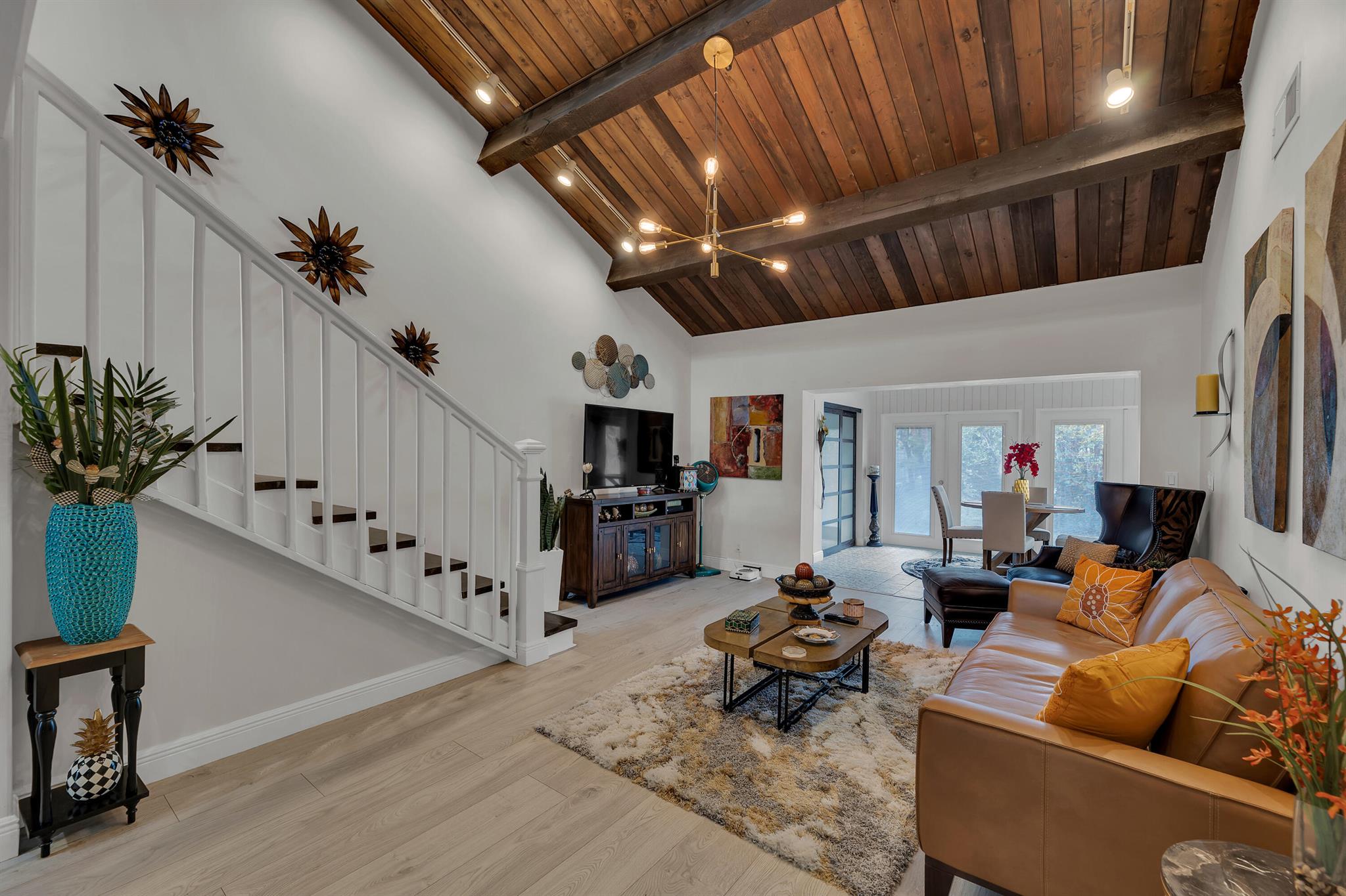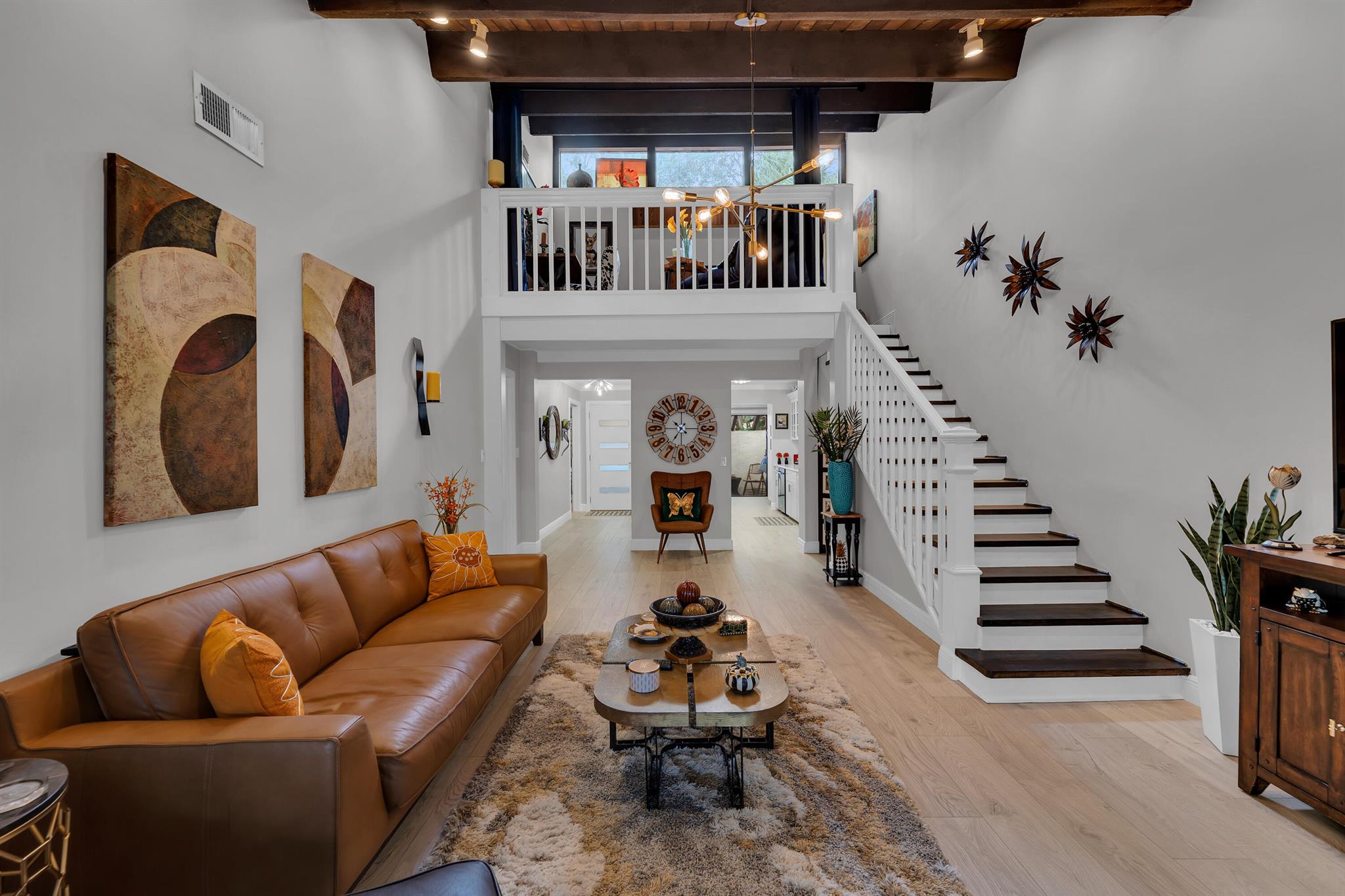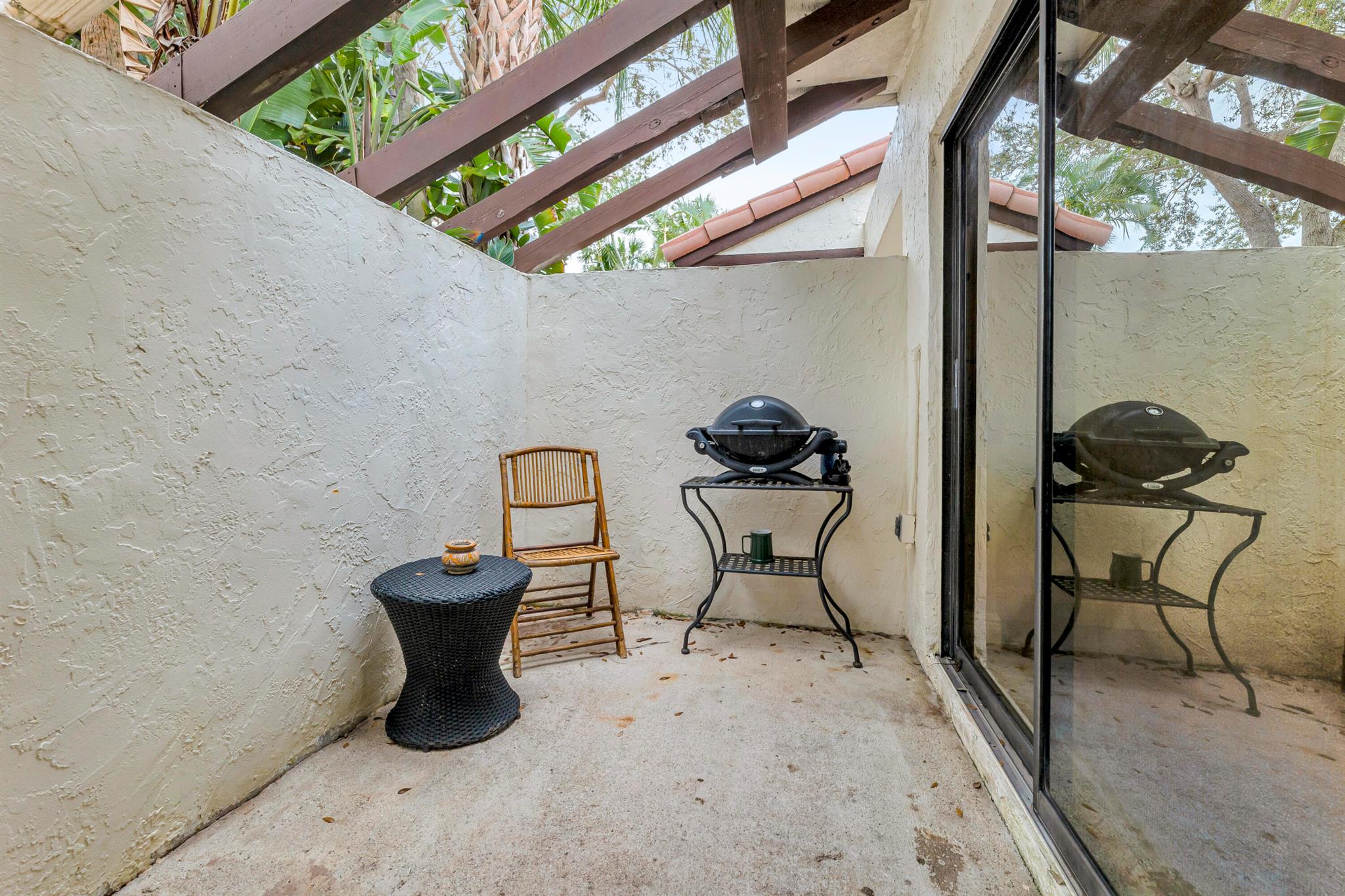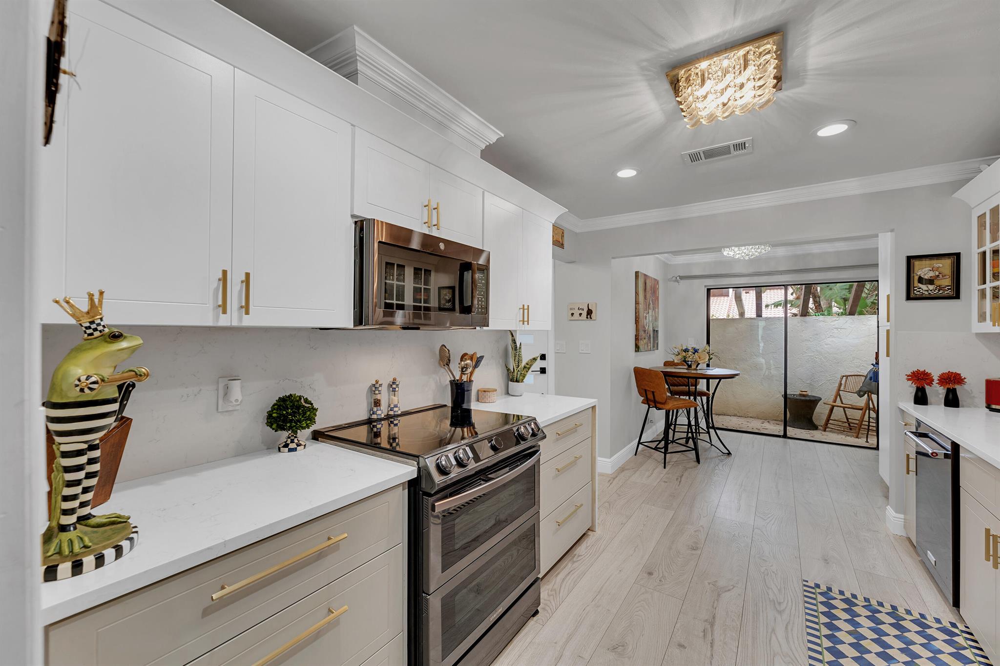 Remodeled 2 Bed/ 2 Bath with an upstairs loft that can be enclosed for a 3rd bed rm. Updated contemporary kitchen with new appliances, white granite quartz counter tops, wood cabinets. A/C replaced 2020. Water heater 2 years old. Crown molding and waterproof laminate floors thru out the whole TH. A/C Porch completely enclosed with French doors. Opened extended patio with pavers. Vaulted wood ceilings and beams. Large master bedroom. Large walk in closet. Updated master bath with 2 dual sinks. Very close to the community pool. Low HOA fee. Very private back yard