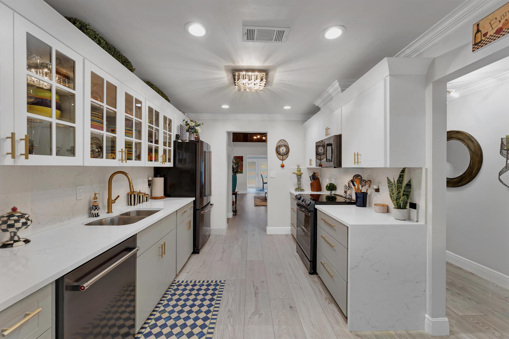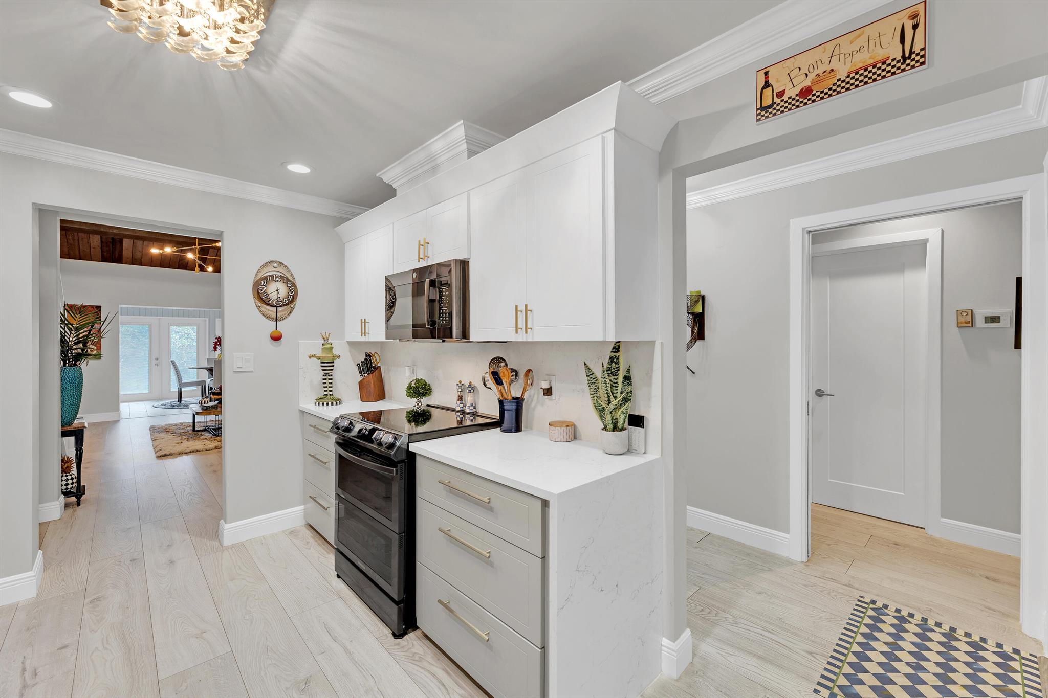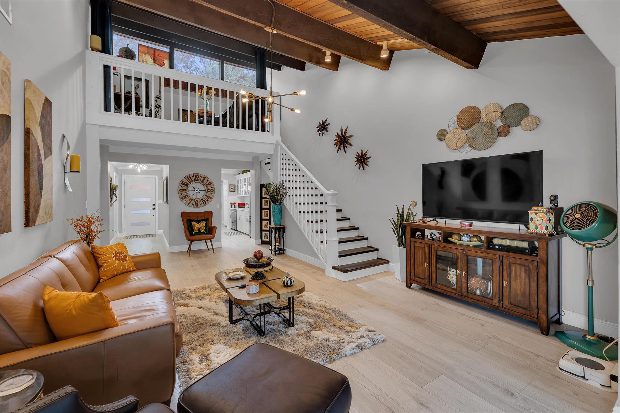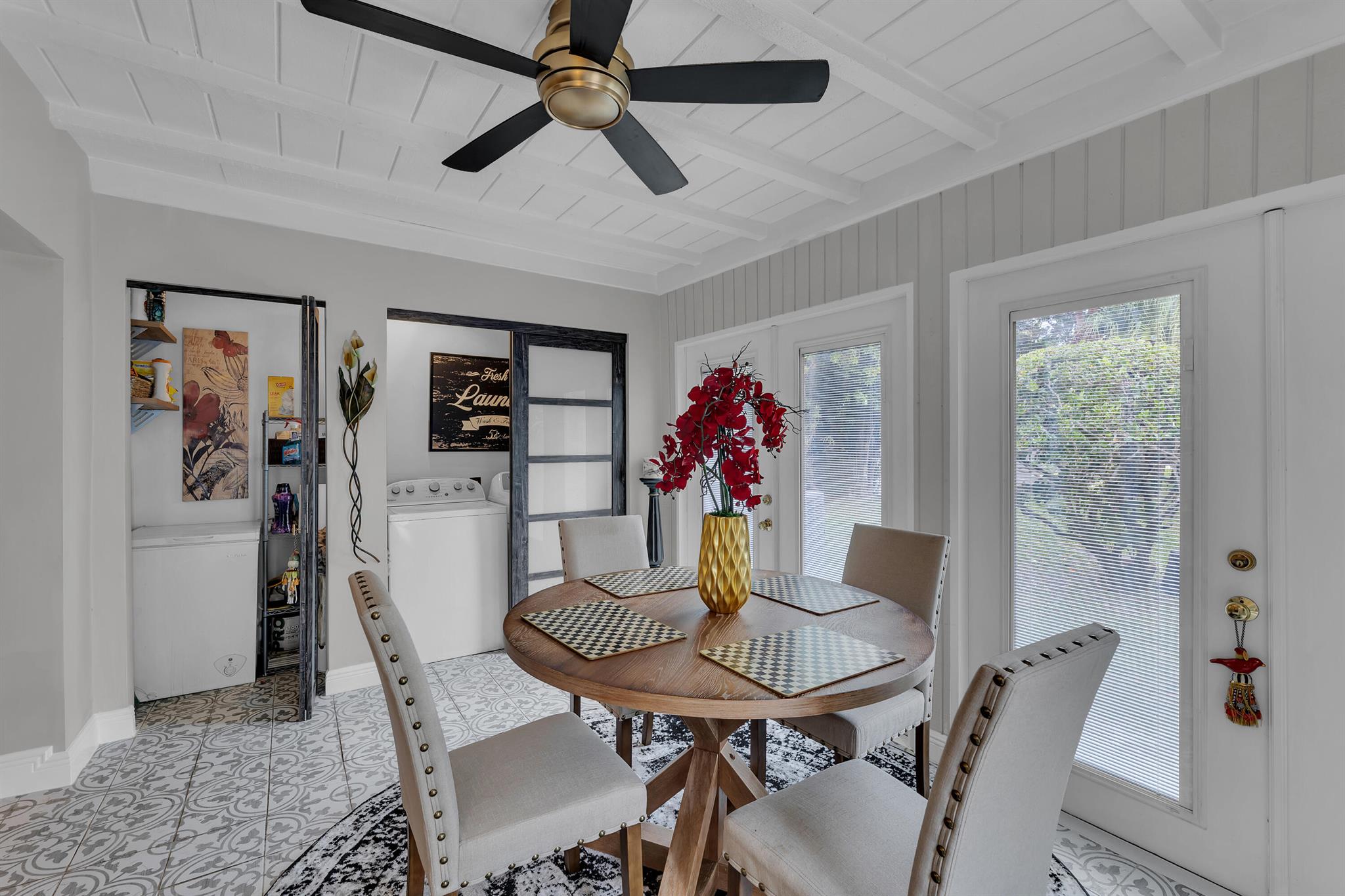 Remodeled 2 Bed/ 2 Bath with an upstairs loft that can be enclosed for a 3rd bed rm. Updated contemporary kitchen with new appliances, white granite quartz counter tops, wood cabinets. A/C replaced 2020. Water heater 2 years old. Crown molding and waterproof laminate floors thru out the whole TH. A/C Porch completely enclosed with French doors. Opened extended patio with pavers. Vaulted wood ceilings and beams. Large master bedroom. Large walk in closet. Updated master bath with 2 dual sinks. Very close to the community pool. Low HOA fee. Very private back yard