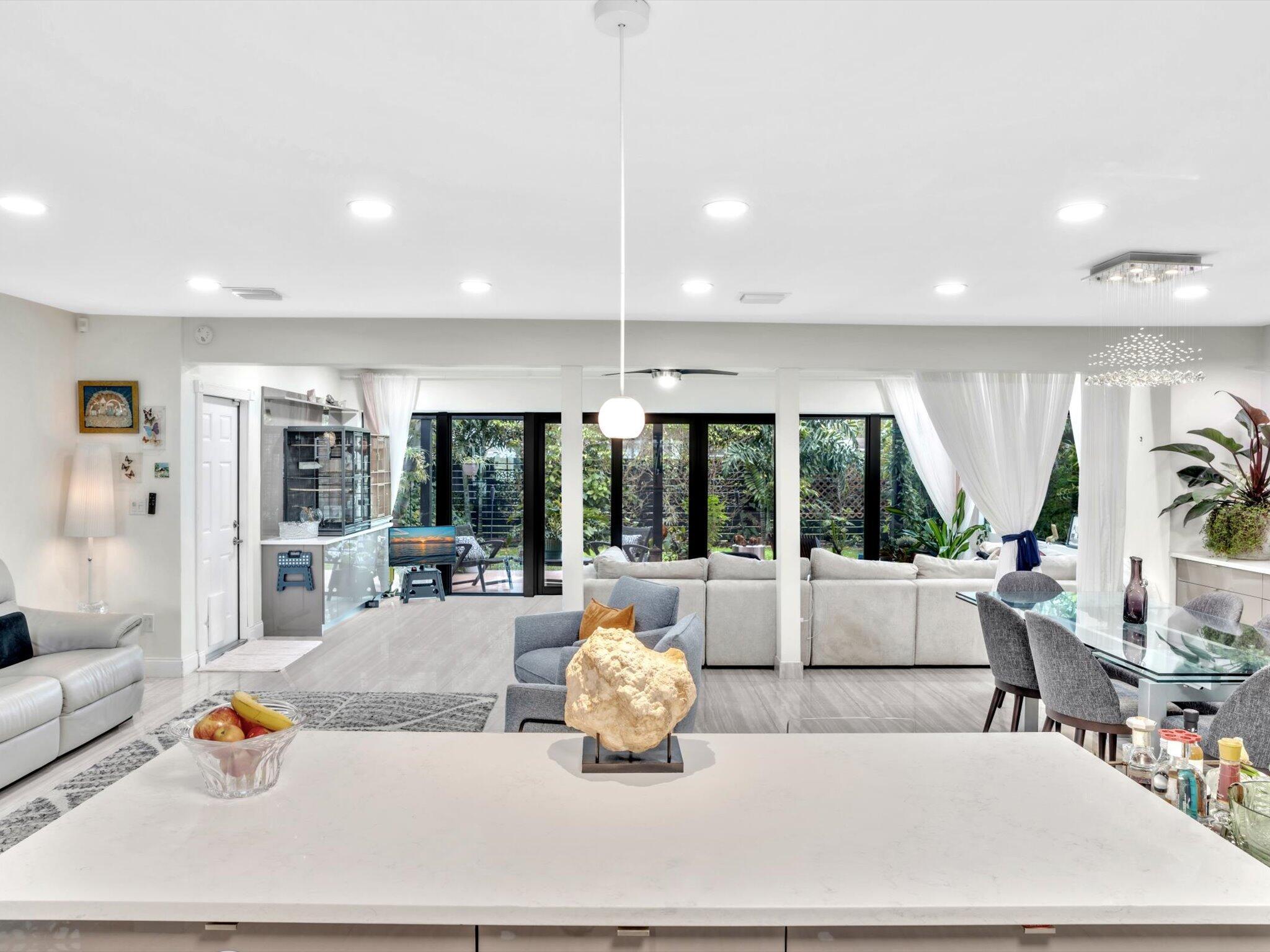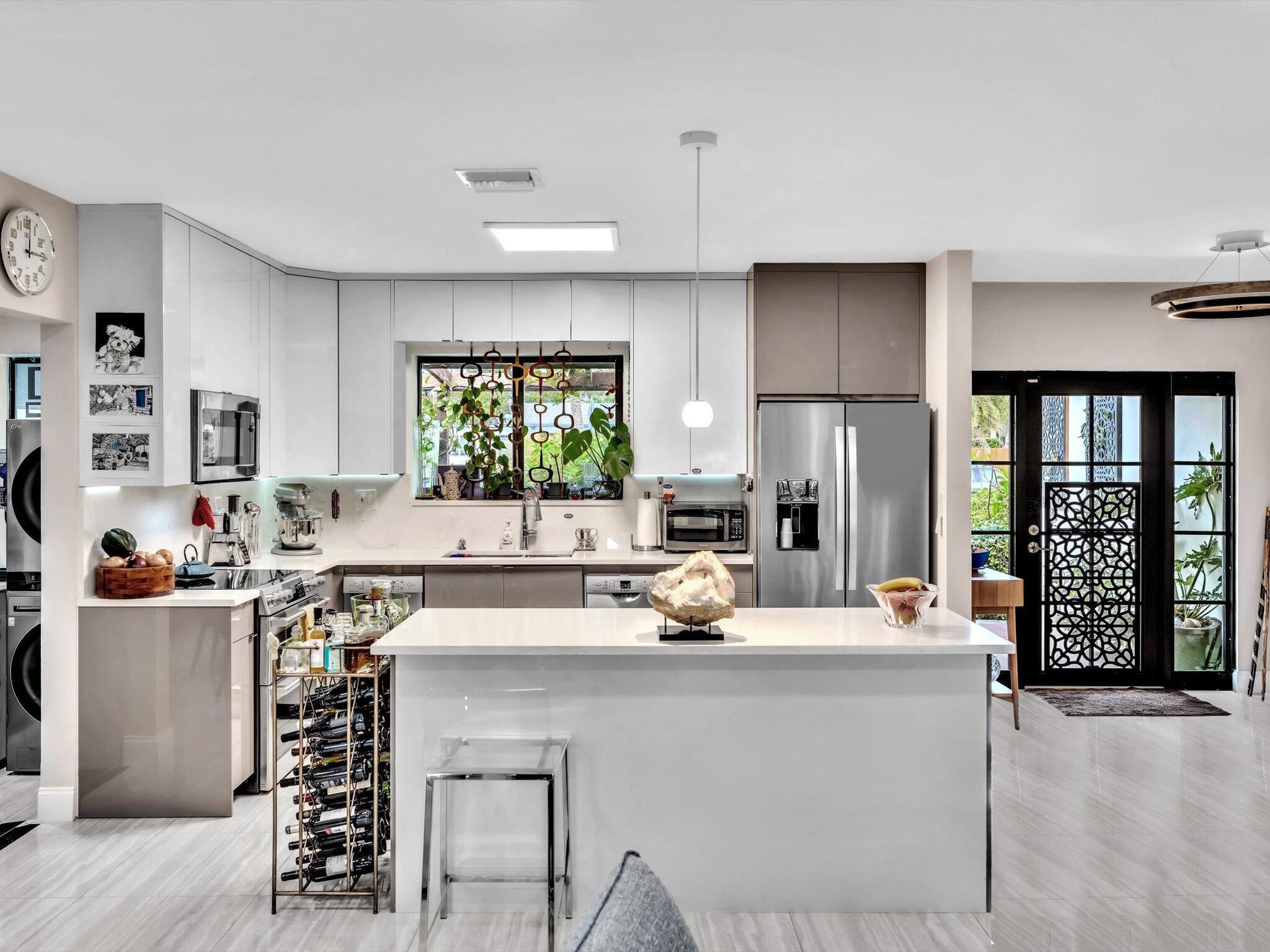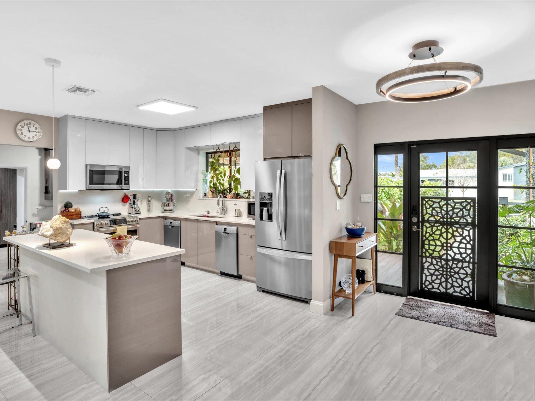 Come in to this one-of-a kind totally redone 3/2 home. There is a beautiful garden leading to the front door that takes you inside to a calming and at the same time exhilarating interior, where you will find all these new items: Hurricane windows & doors, Electrical panel with generator hook-up, Lux high end kitchen cabinets, Appliances, Bathrooms, AC unit and duct work, Plumbing & tankless HW, Roof, Security system and cameras. Walk to the backyard to see your own fruit trees, flowering bushes amid a private and relaxing oasis. Easily can fit a 4th bedroom. Backyard has room for pool. Very close to several houses of worship. Come see it today!!